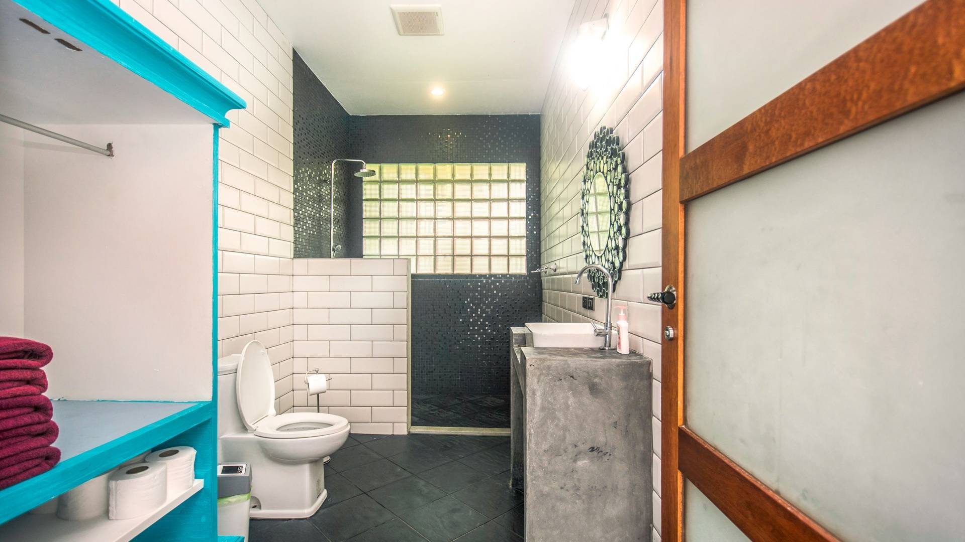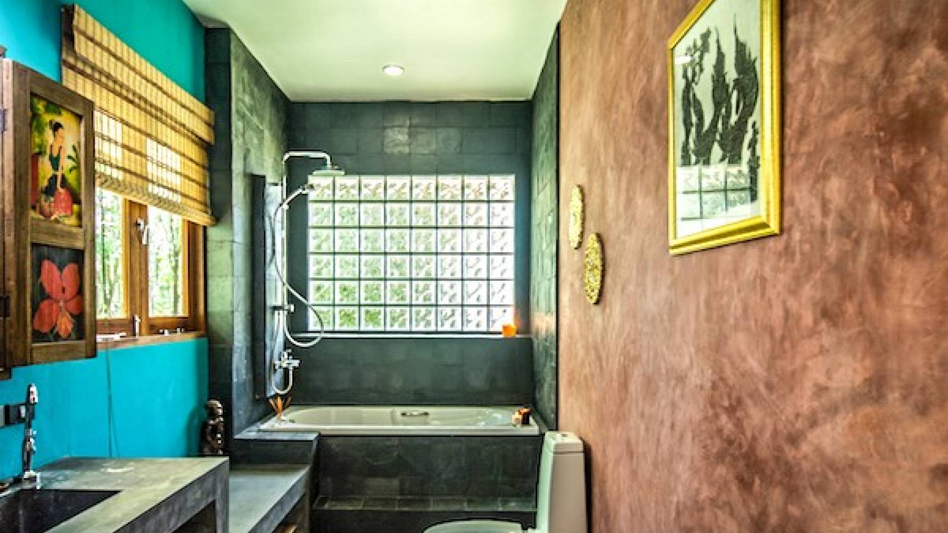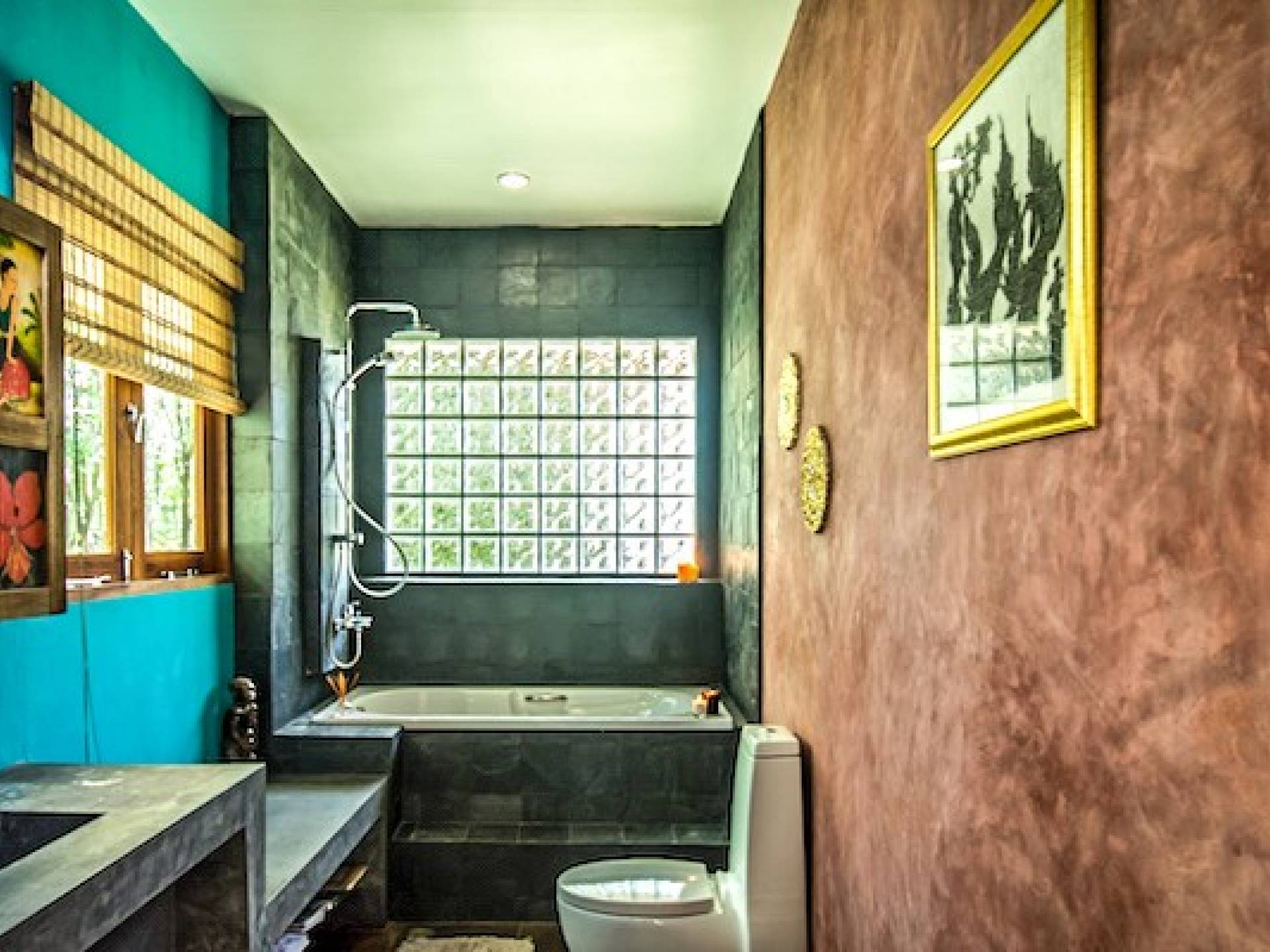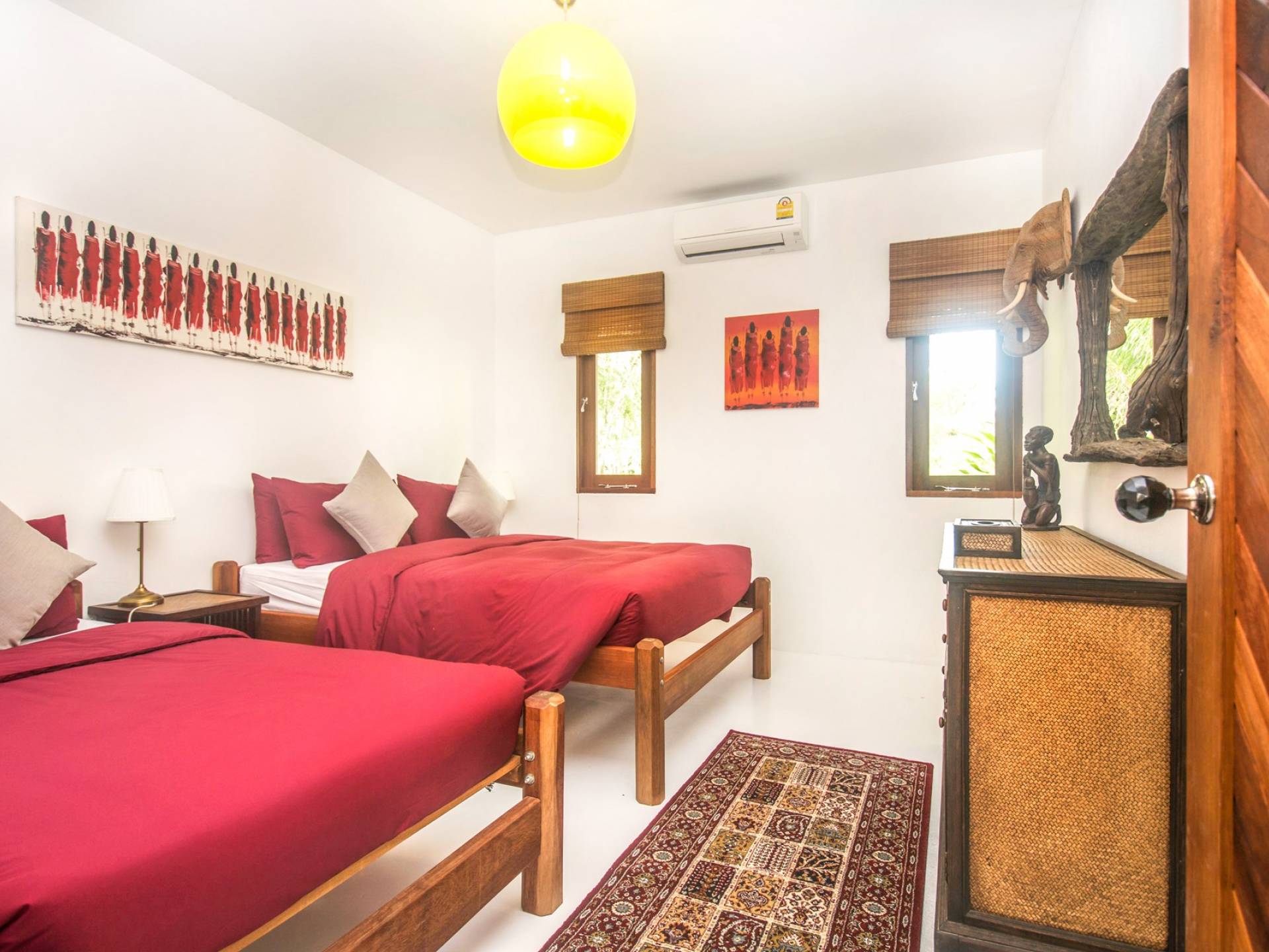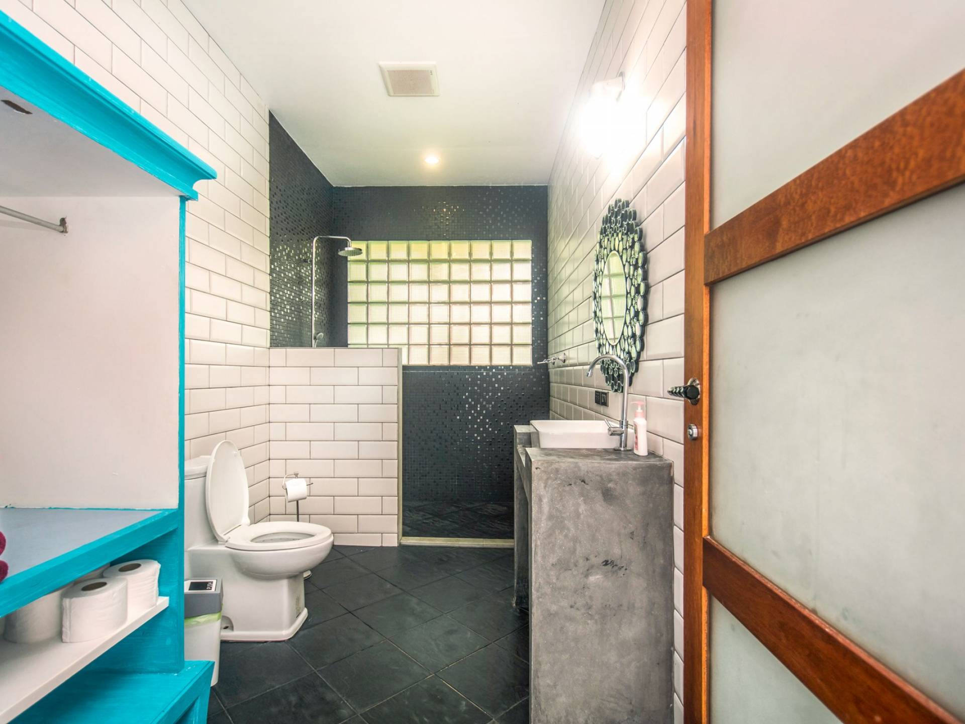 Une porte du salon mène au cinéma et à la salle de jeux. Choisissez votre musique, livre, film ou jeu préféré et évadez-vous dans votre maison de vacances, entièrement climatisée pour votre confort. La cuisine et le salon s'ouvrent sur une grande cour avec un espace couvert. Équipé d'un réfrigérateur, d'un évier, de tables et de sièges confortables pour se détendre, manger et boire. Pour se détendre tranquillement dans la nature, il y a la salle de yoga. Une sala artistique et rustique où vous pourrez passer du temps sous le toit de chaume traditionnel en profitant du climat tropical sous le chaud soleil ou sous une pluie rafraîchissante.
