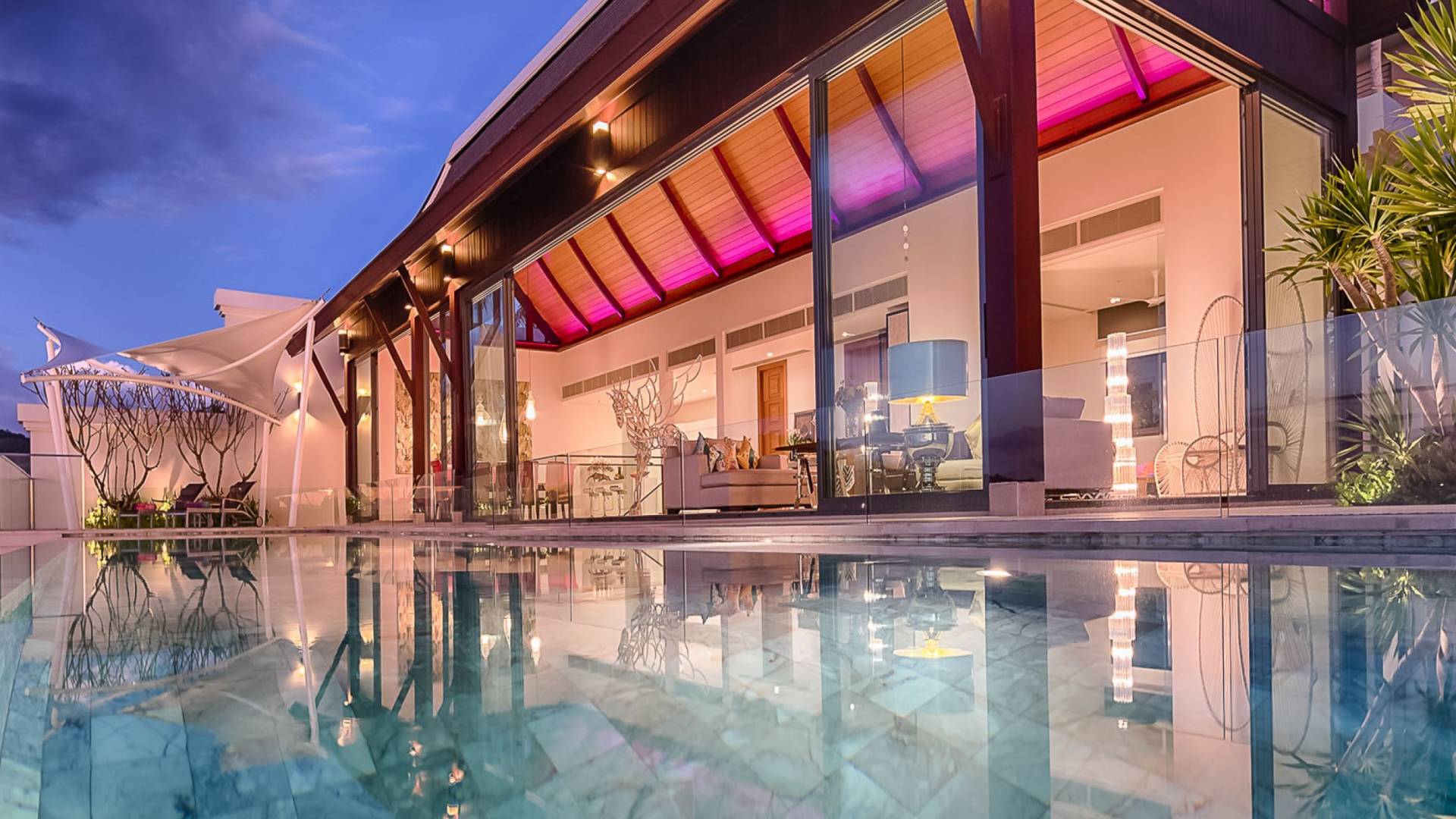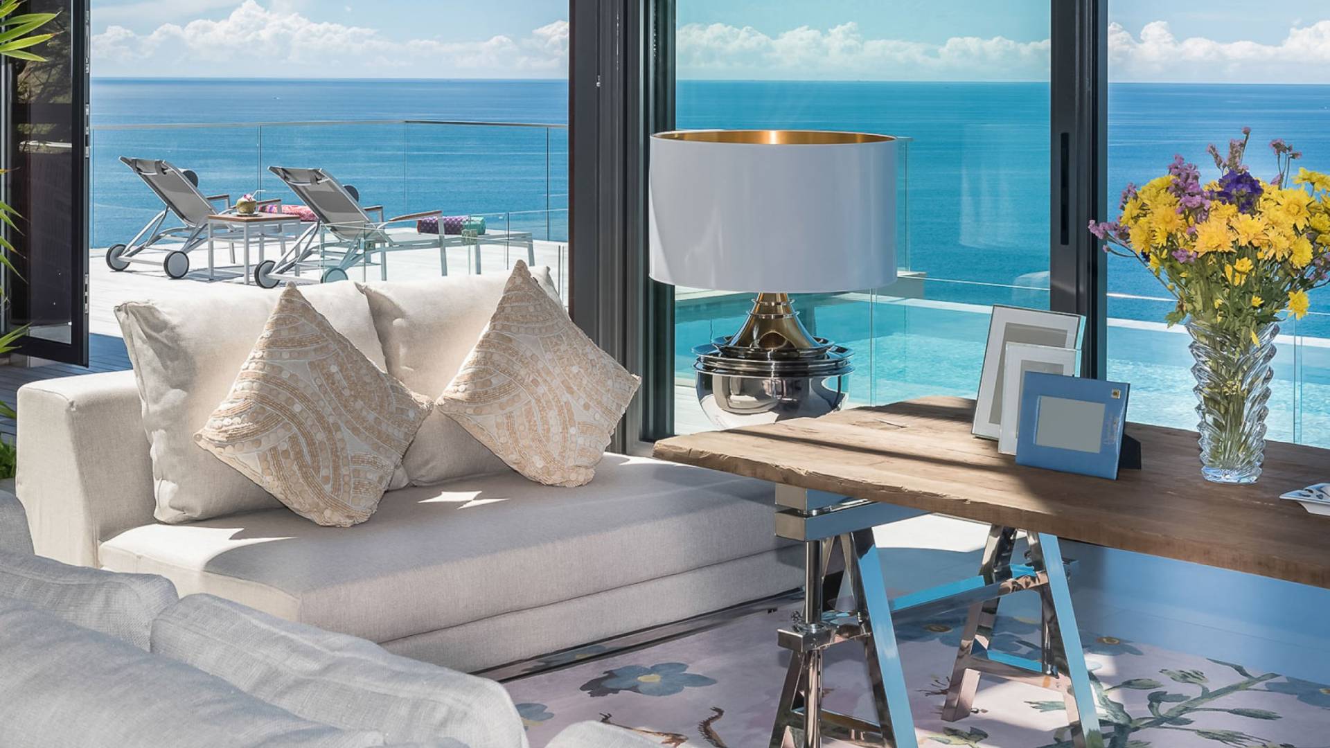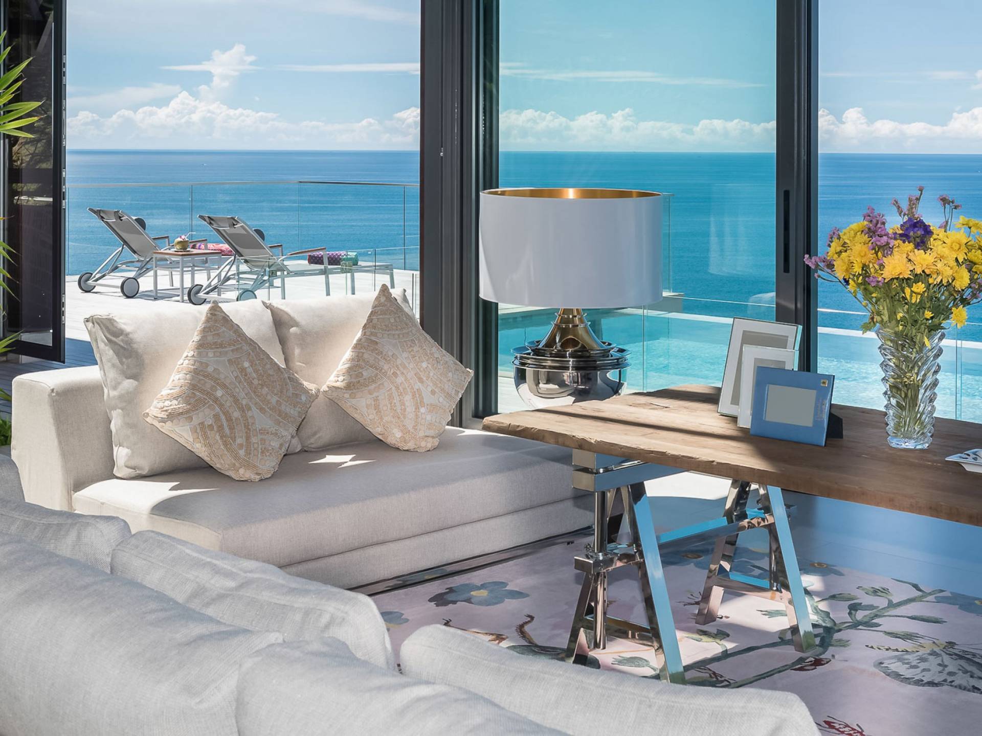 La Villa Rodnaya, lumineuse et spacieuse de quatre chambres, bénéficie d'un design intérieur spectaculaire aux couleurs vives. Des éléments décoratifs uniques et des œuvres d'art offrent une grande élégance aux espaces de vie de la villa. Les vues cinématographiques sur l'océan, grâce aux portes vitrées du sol au plafond, sont vraiment impressionnantes.