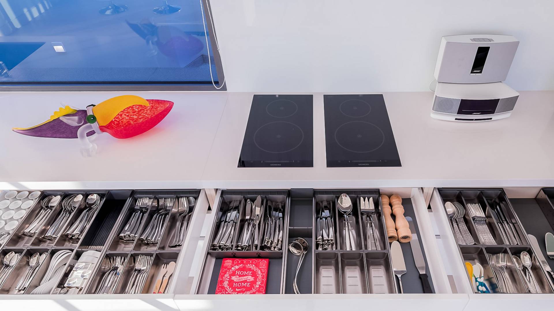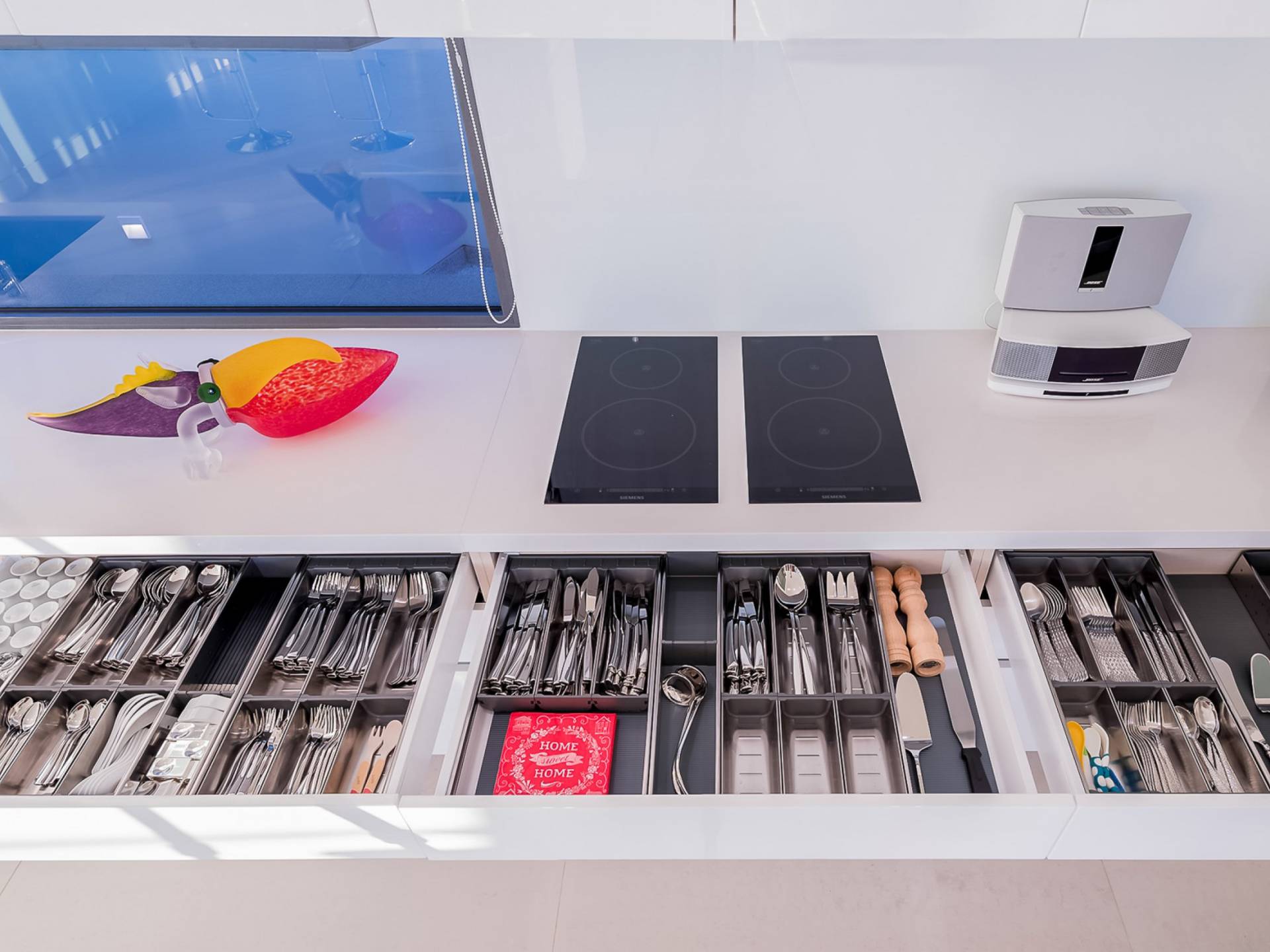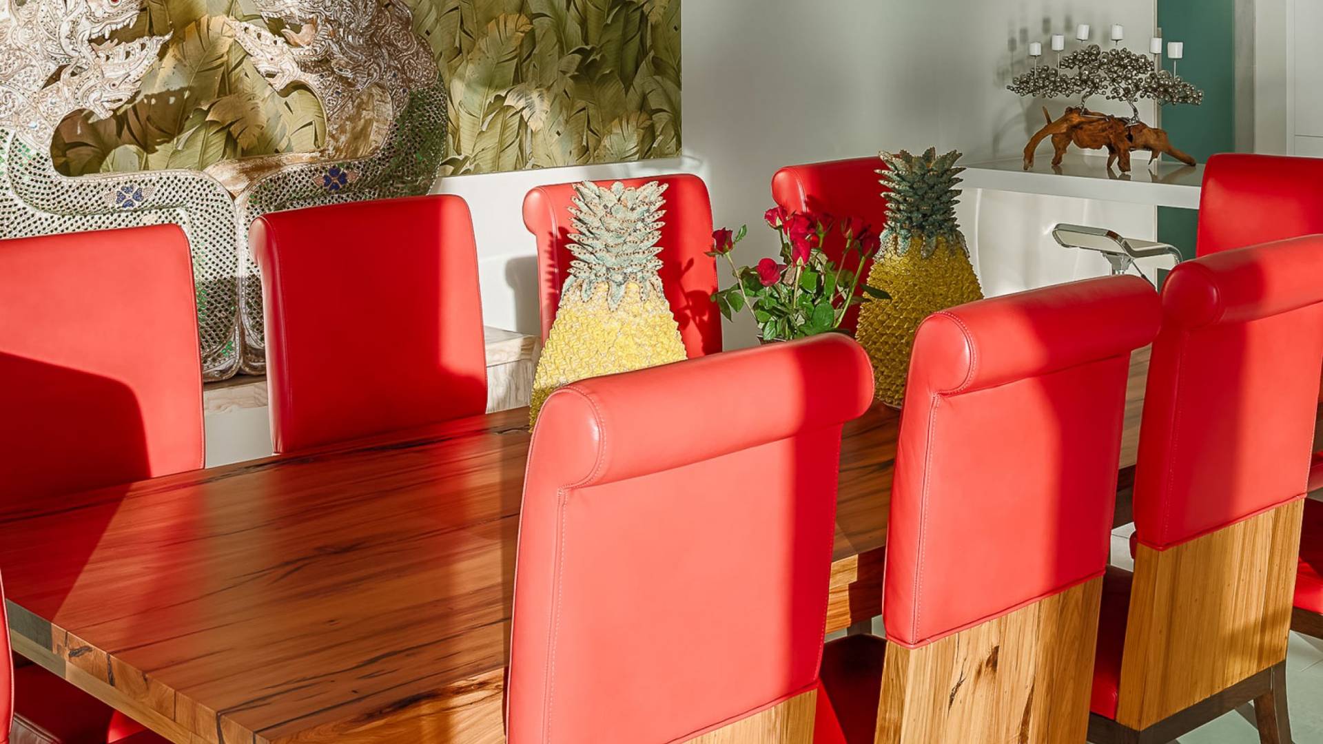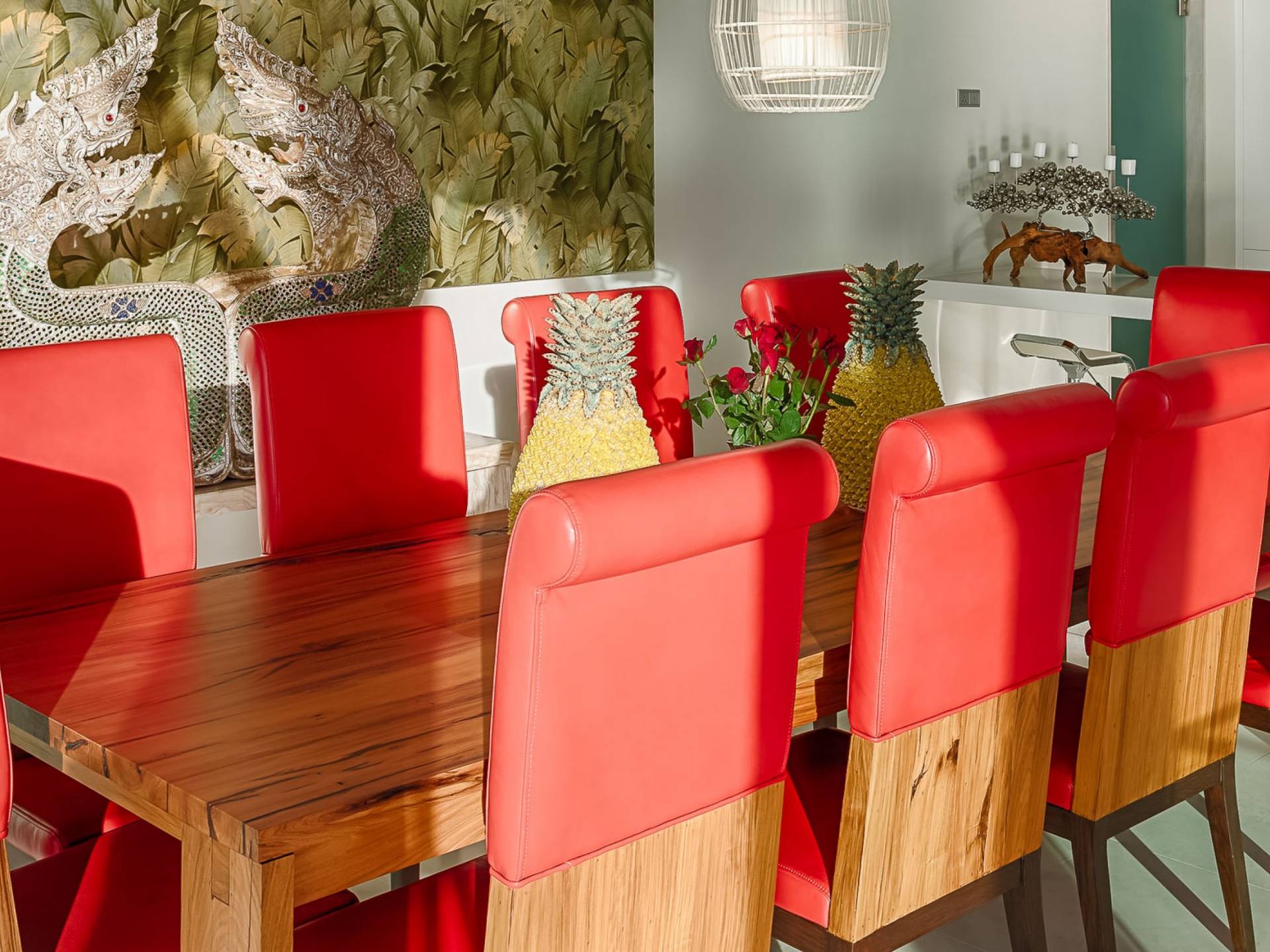 La Villa Rodnaya, lumineuse et spacieuse de quatre chambres, bénéficie d'un design intérieur spectaculaire aux couleurs vives. Des éléments décoratifs uniques et des œuvres d'art offrent une grande élégance aux espaces de vie de la villa. Les vues cinématographiques sur l'océan, grâce aux portes vitrées du sol au plafond, sont vraiment impressionnantes.