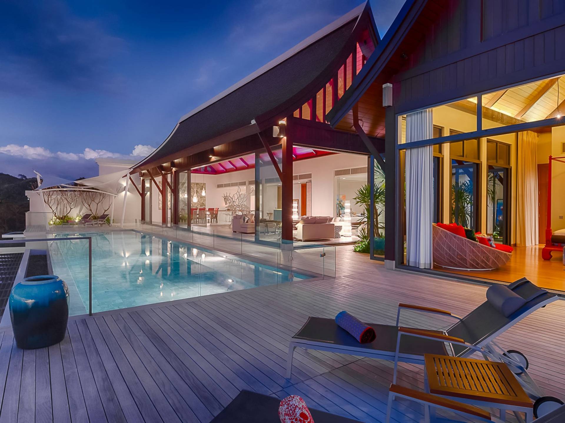 Villa Rodnaya à Malaiwana Villas à Phuket est une location de villa de luxe avec 4 chambres et une piscine privée. Située à flanc de colline dans le domaine exclusif de Malaiwana, la Villa Rodnaya est l'endroit idéal pour vous offrir un luxe absolu et profiter de la vie tropicale à son meilleur. Le design de la villa est moderne et élégant, se fondant parfaitement dans la nature environnante. Pouvant accueillir confortablement jusqu'à 10 personnes, cette villa est parfaite pour les familles et les amis de tous âges.