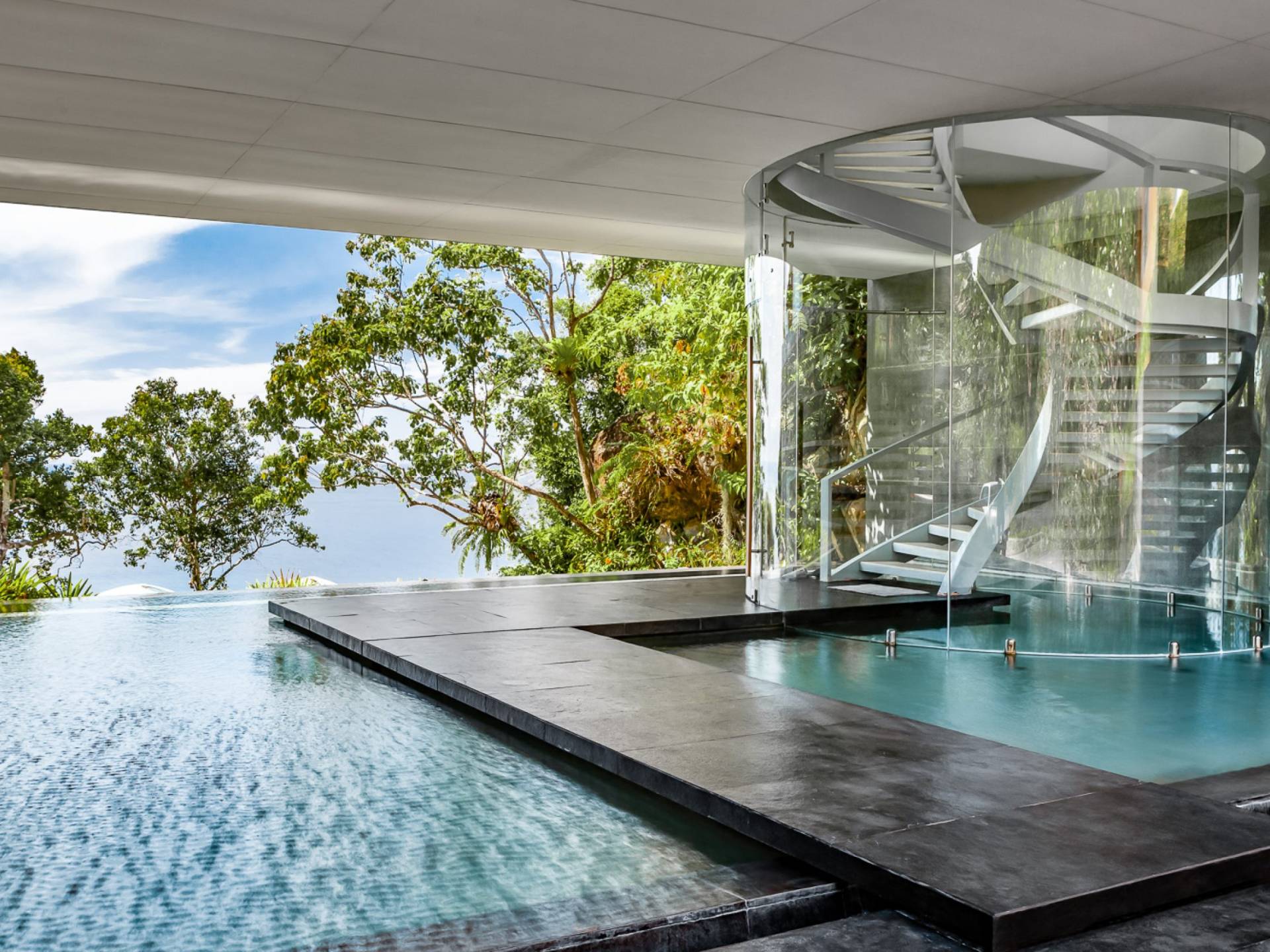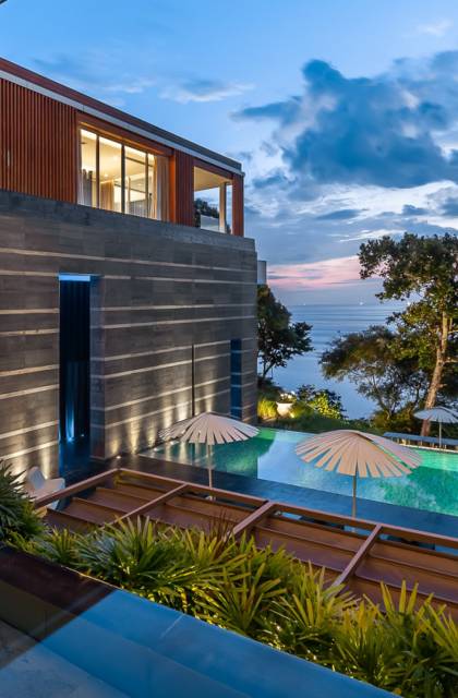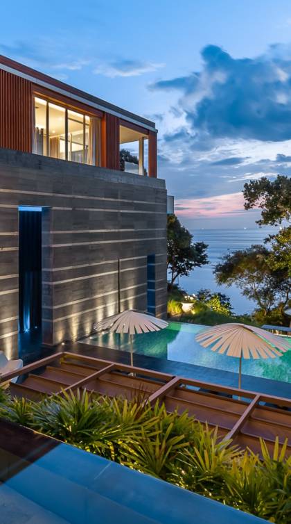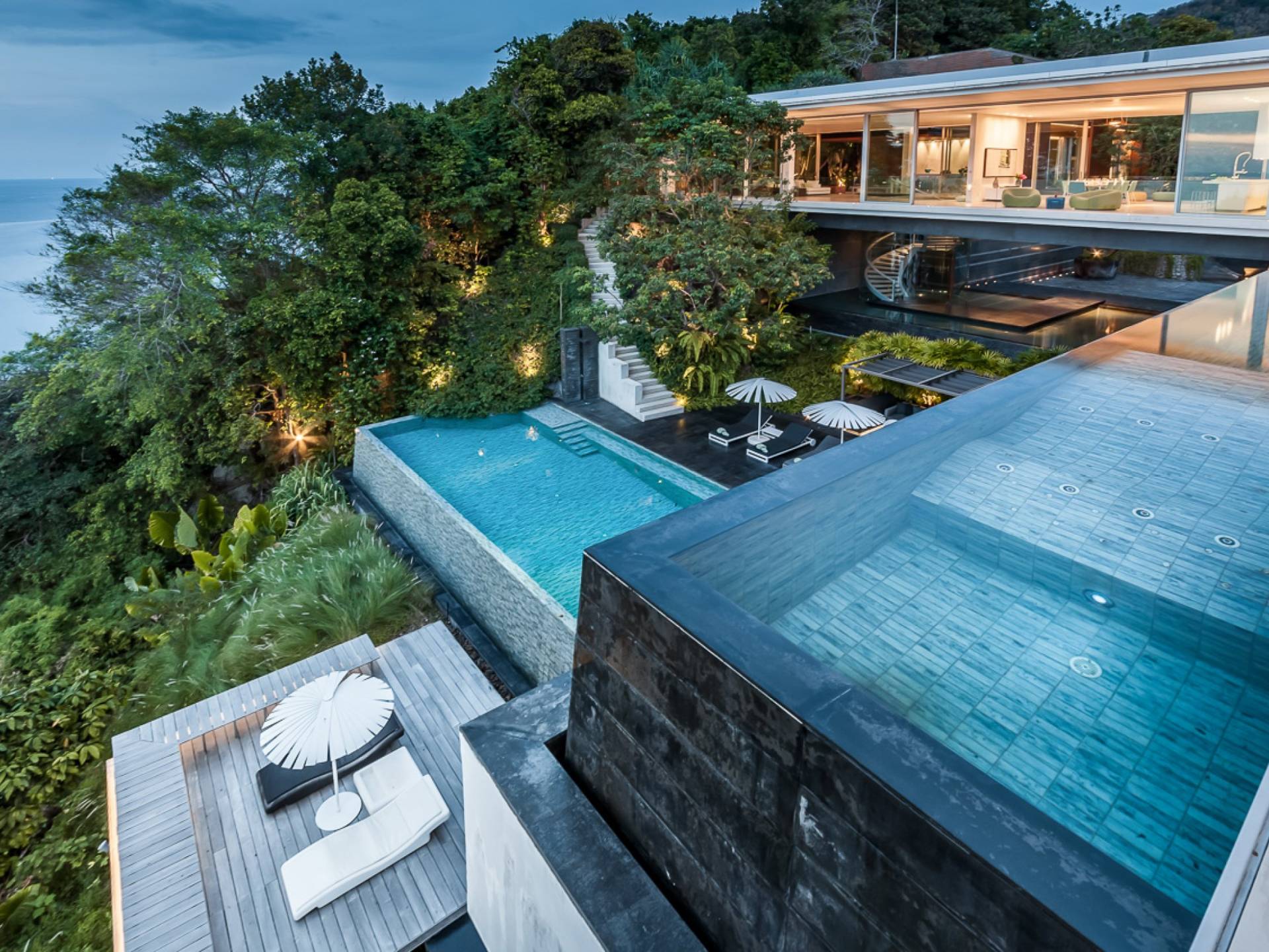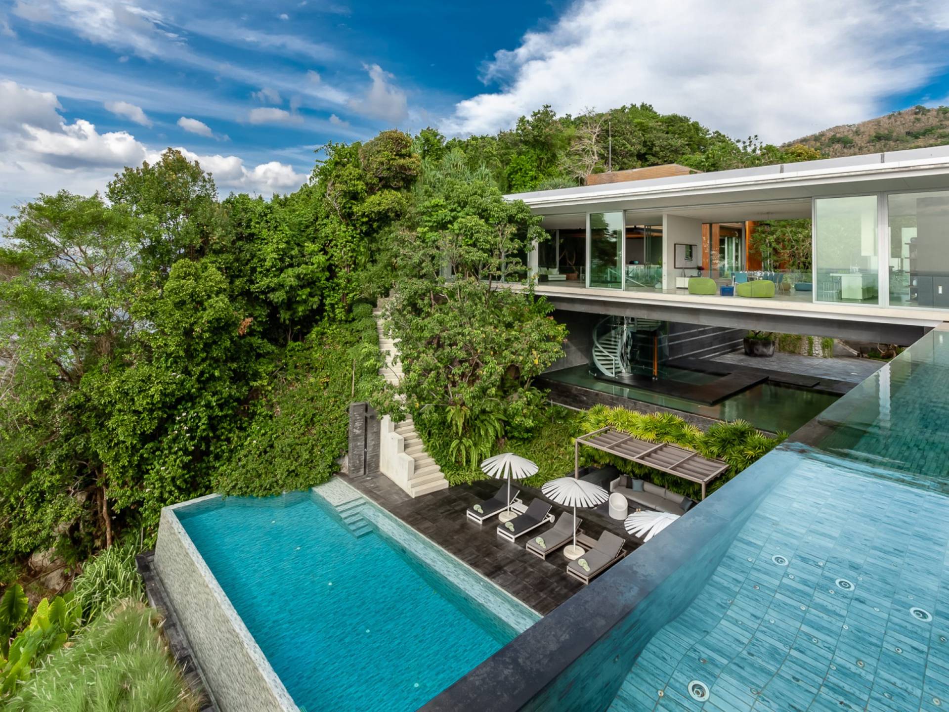 Villa Mayavee Phuket est une location de villa de luxe avec 5 chambres et une piscine privée. Véritable chef-d'œuvre architectural, la Villa Mayavee est une villa de luxe de 4 chambres située dans une péninsule isolée sur le célèbre Millionaire's Mile à Kamala, Phuket. La propriété est construite sur un terrain de 10 200 mètres carrés entouré d'une forêt tropicale luxuriante, face à la magnifique mer d'Andaman. Cette villa offre l'une des plus belles vues de l'île.