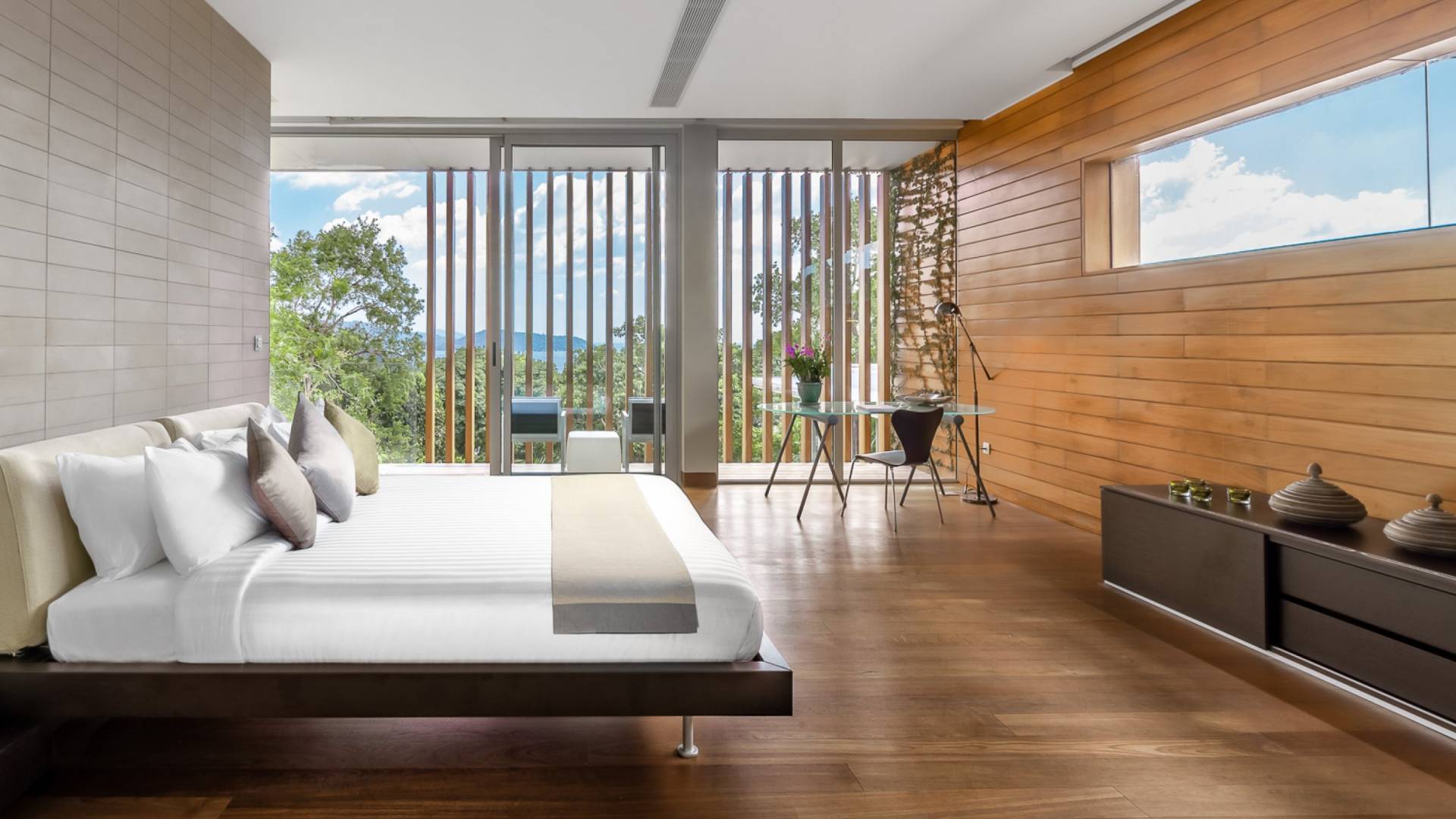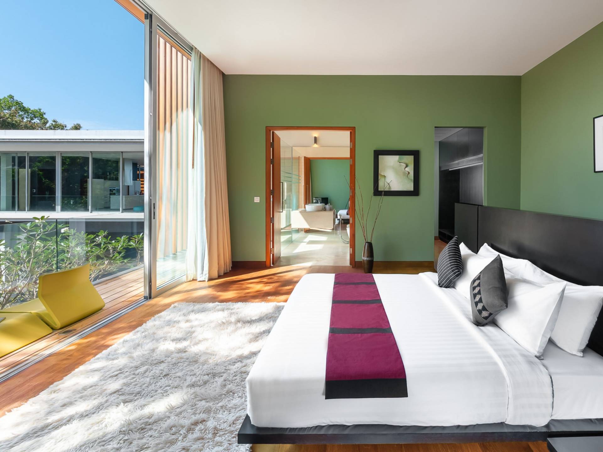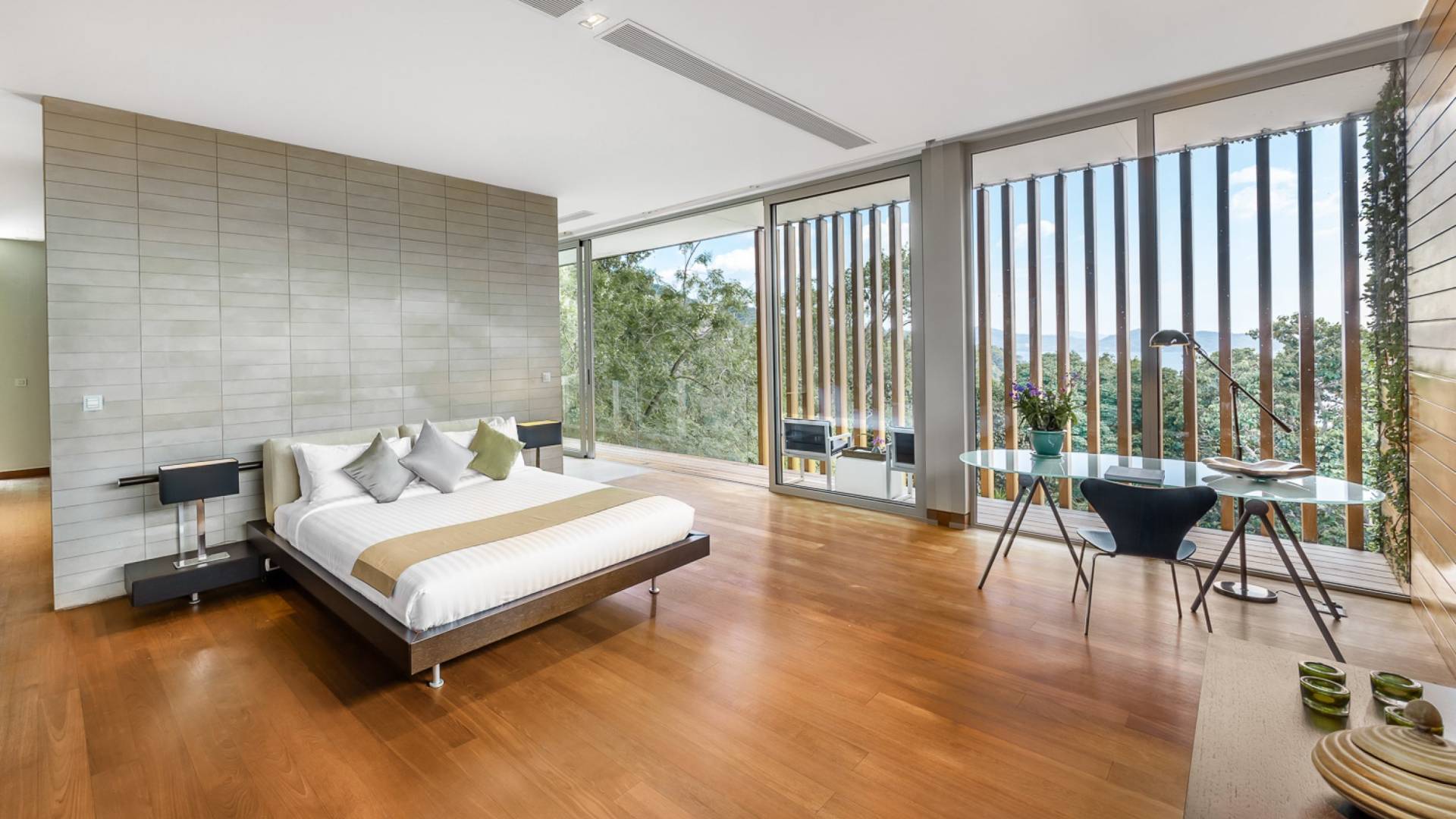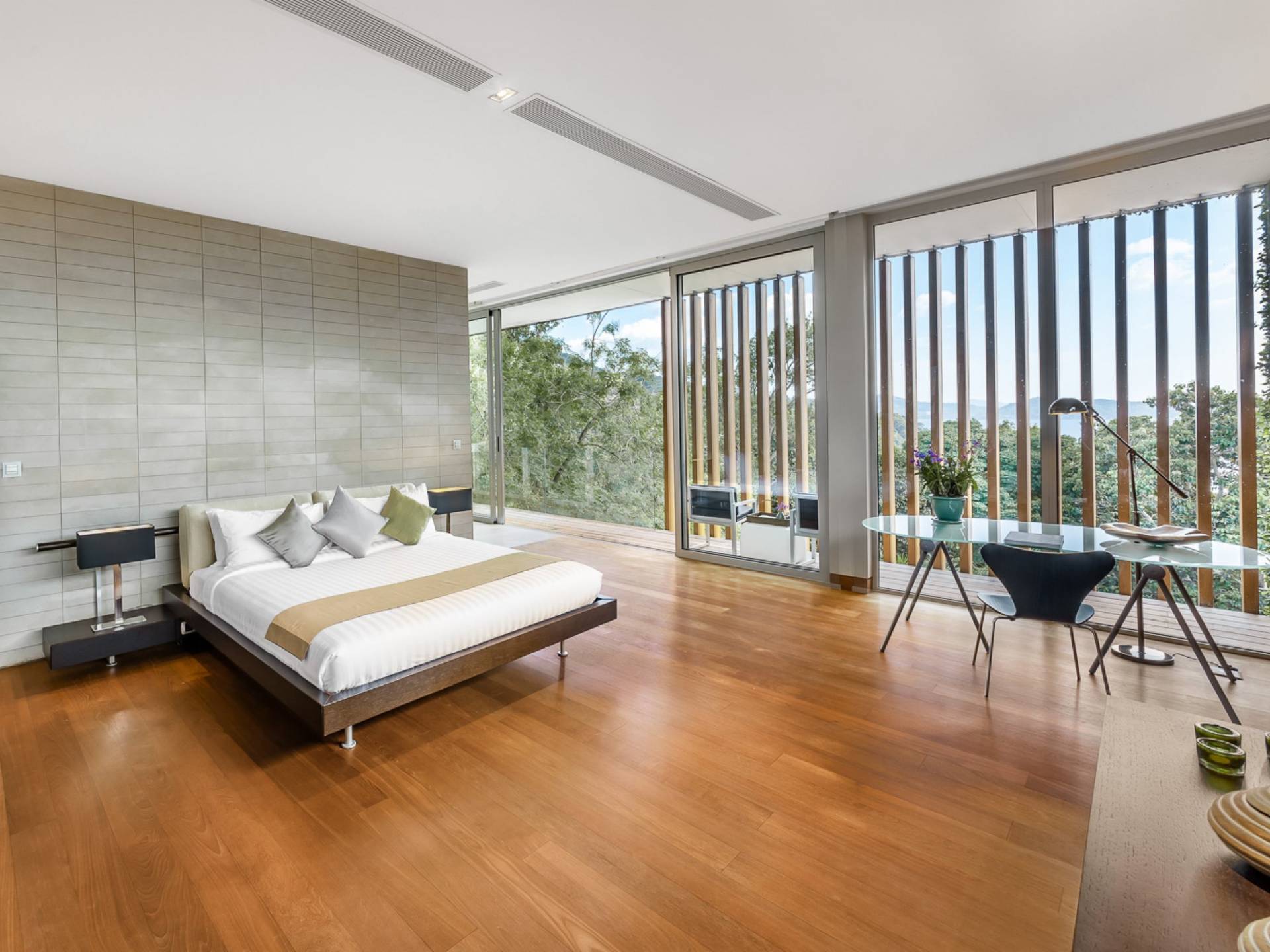 Master Wing regorge de luxe et de commodités. Ici, une vue imprenable sur la mer d'Andaman vous accueille chaque matin et la paix et la tranquillité sont vraiment inspirantes. Il est configuré pour l'intimité, séparé de l'aile des invités par la cuisine, la salle à manger, les divertissements et la réception. L'aile dispose de sa propre piscine privée, d'un somptueux dressing, d'une belle bibliothèque et d'un bureau. La salle de bain est un sanctuaire, moulé dans le marbre le plus fin et compensé par du chrome poli et du bois.