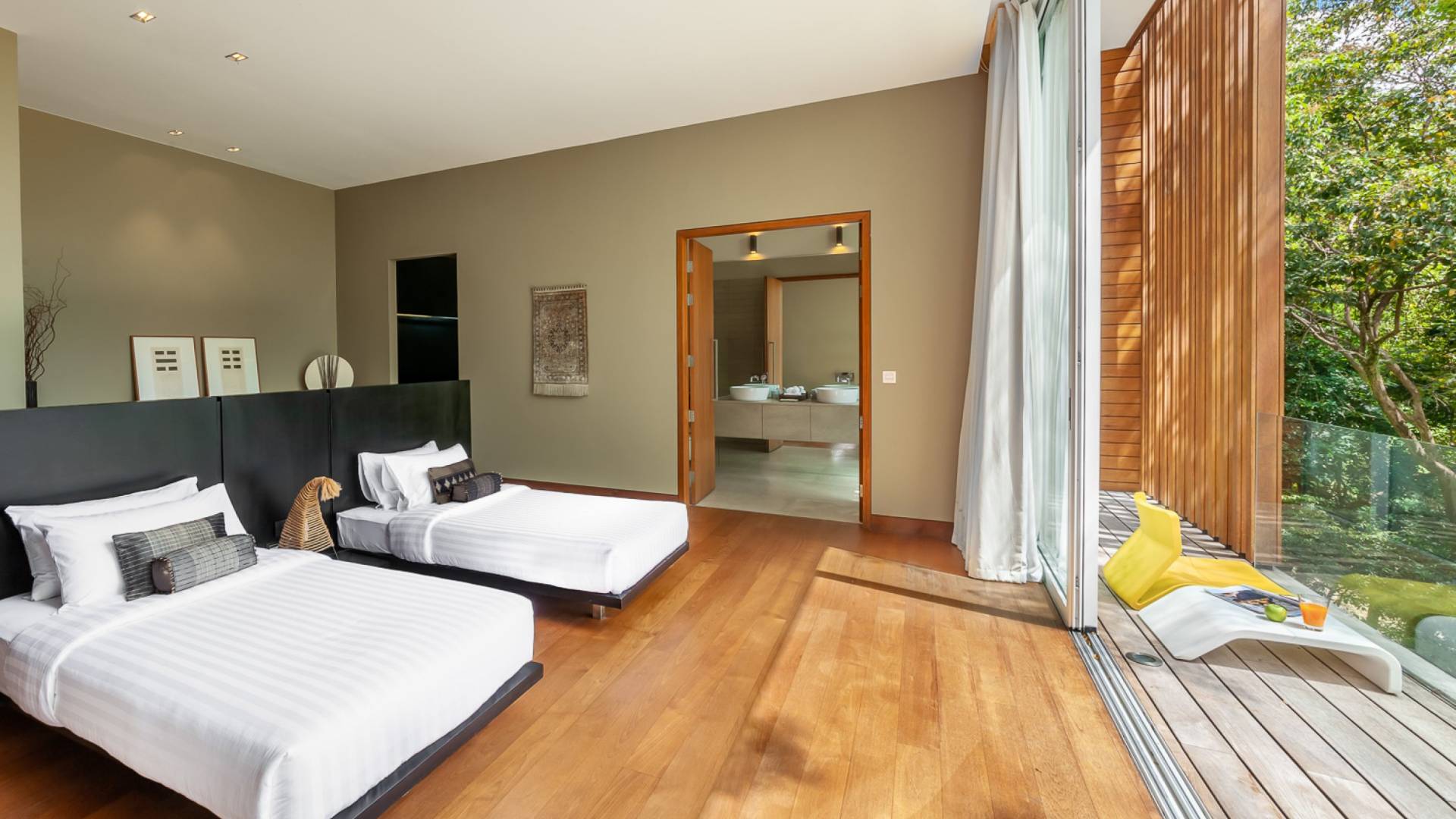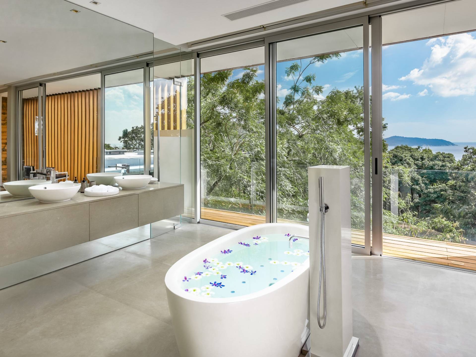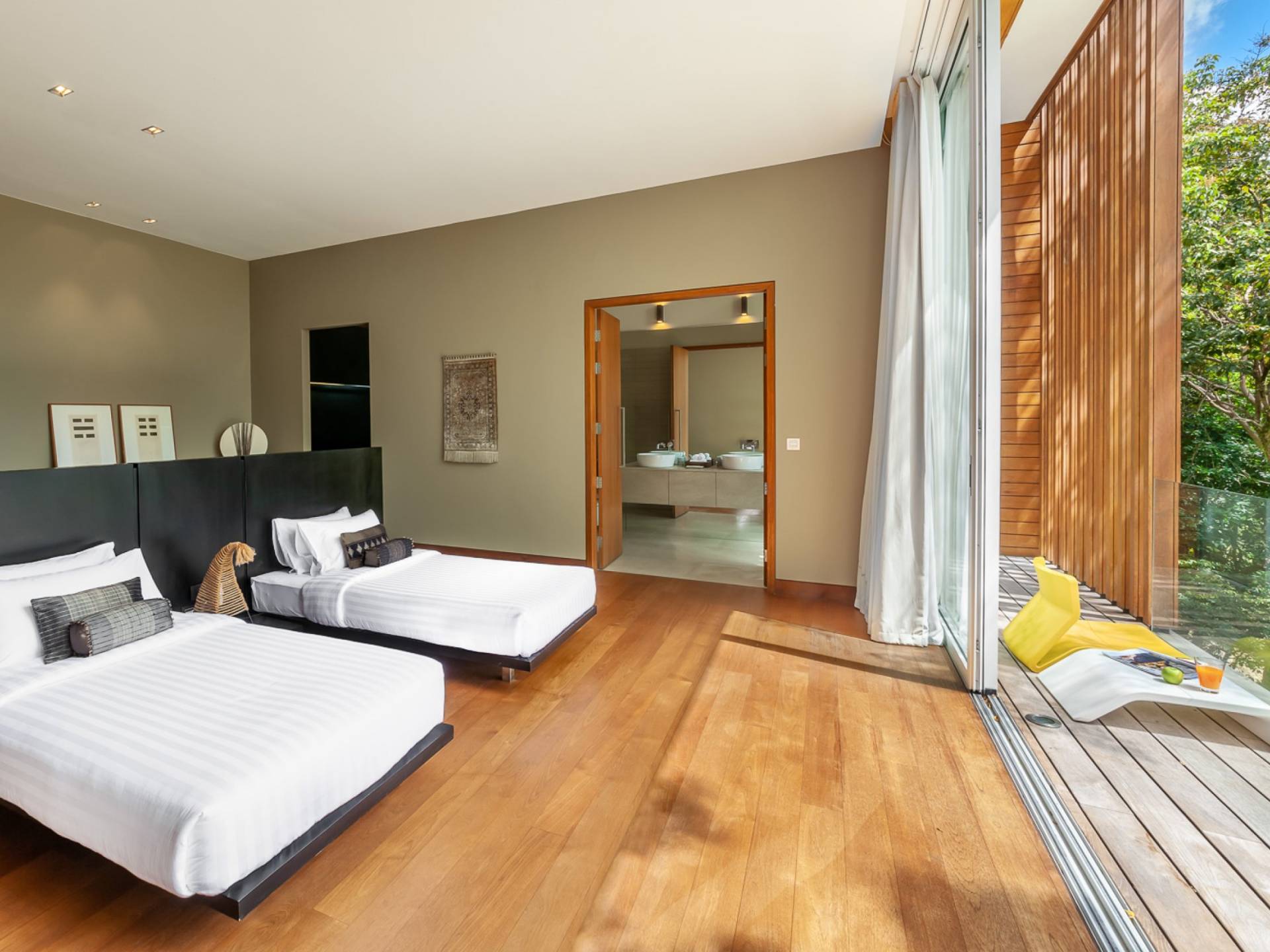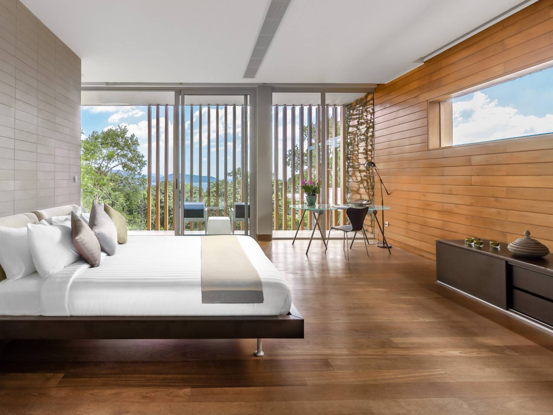 Master Wing regorge de luxe et de commodités. Ici, une vue imprenable sur la mer d'Andaman vous accueille chaque matin et la paix et la tranquillité sont vraiment inspirantes. Il est configuré pour l'intimité, séparé de l'aile des invités par la cuisine, la salle à manger, les divertissements et la réception. L'aile dispose de sa propre piscine privée, d'un somptueux dressing, d'une belle bibliothèque et d'un bureau. La salle de bain est un sanctuaire, moulé dans le marbre le plus fin et compensé par du chrome poli et du bois.