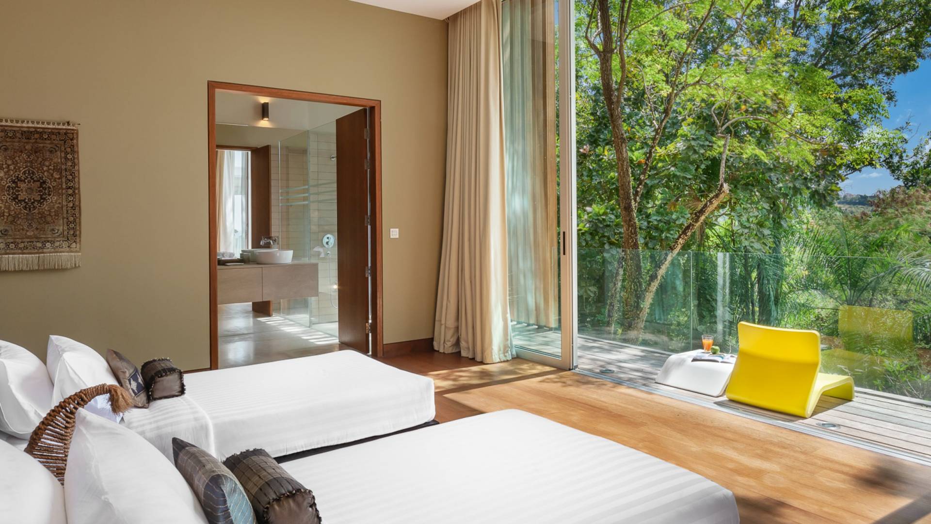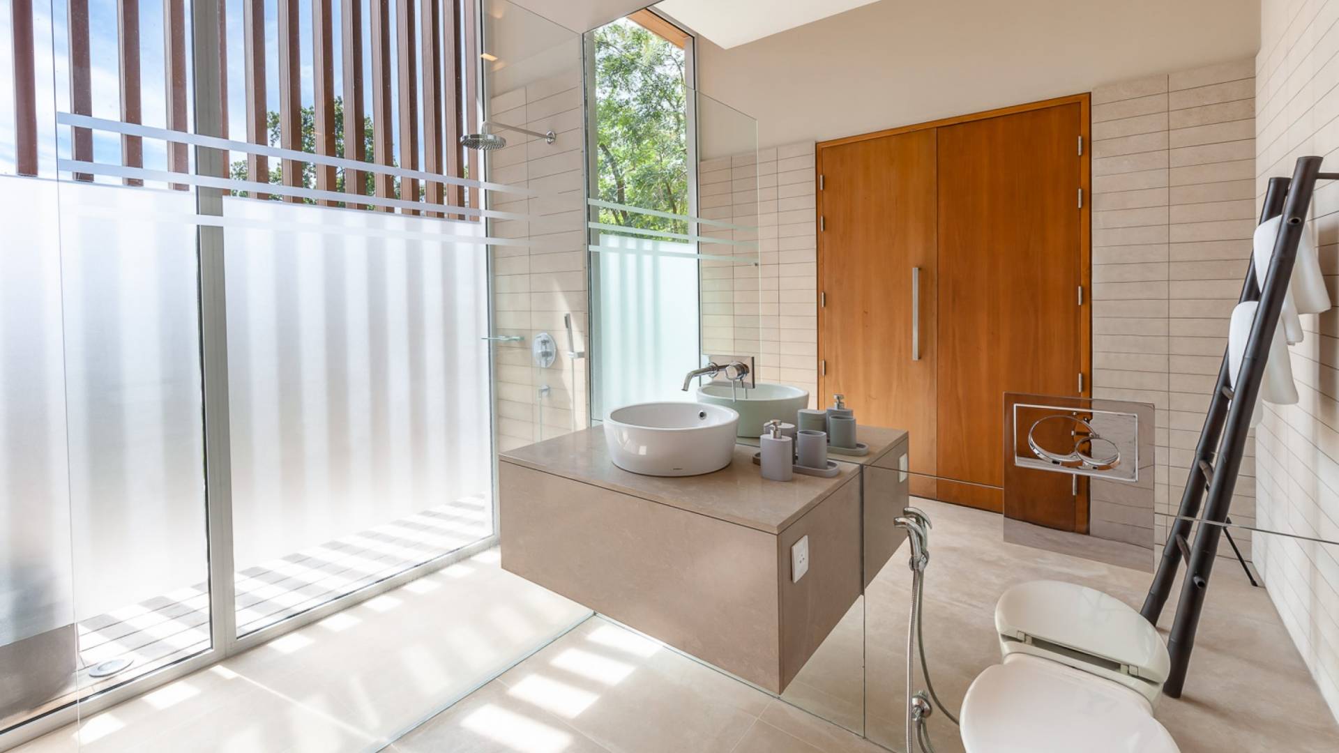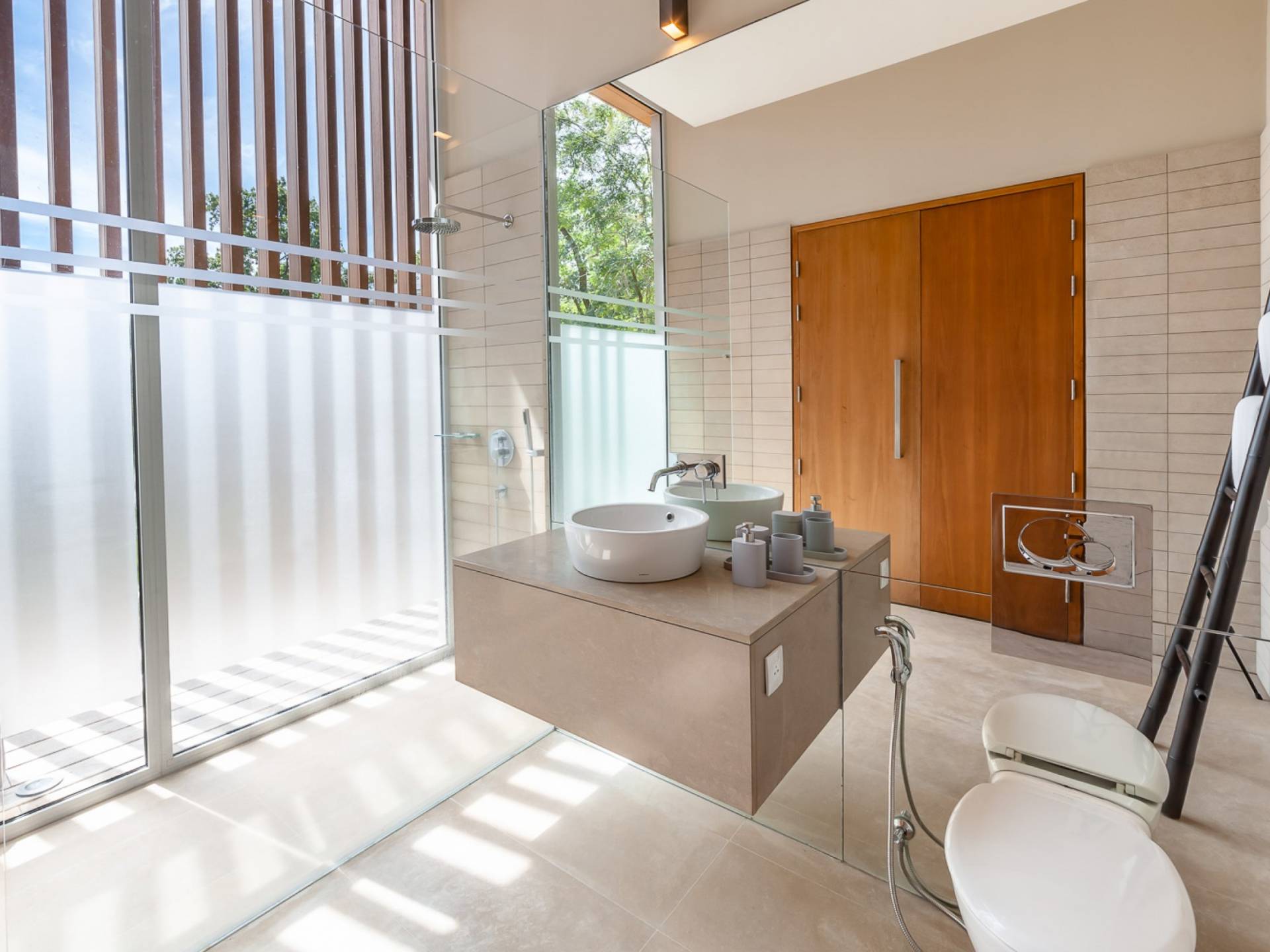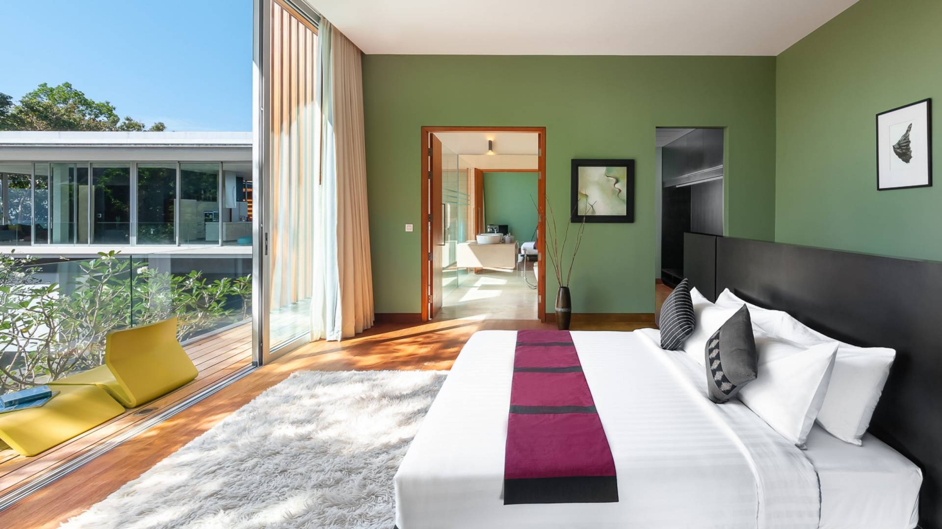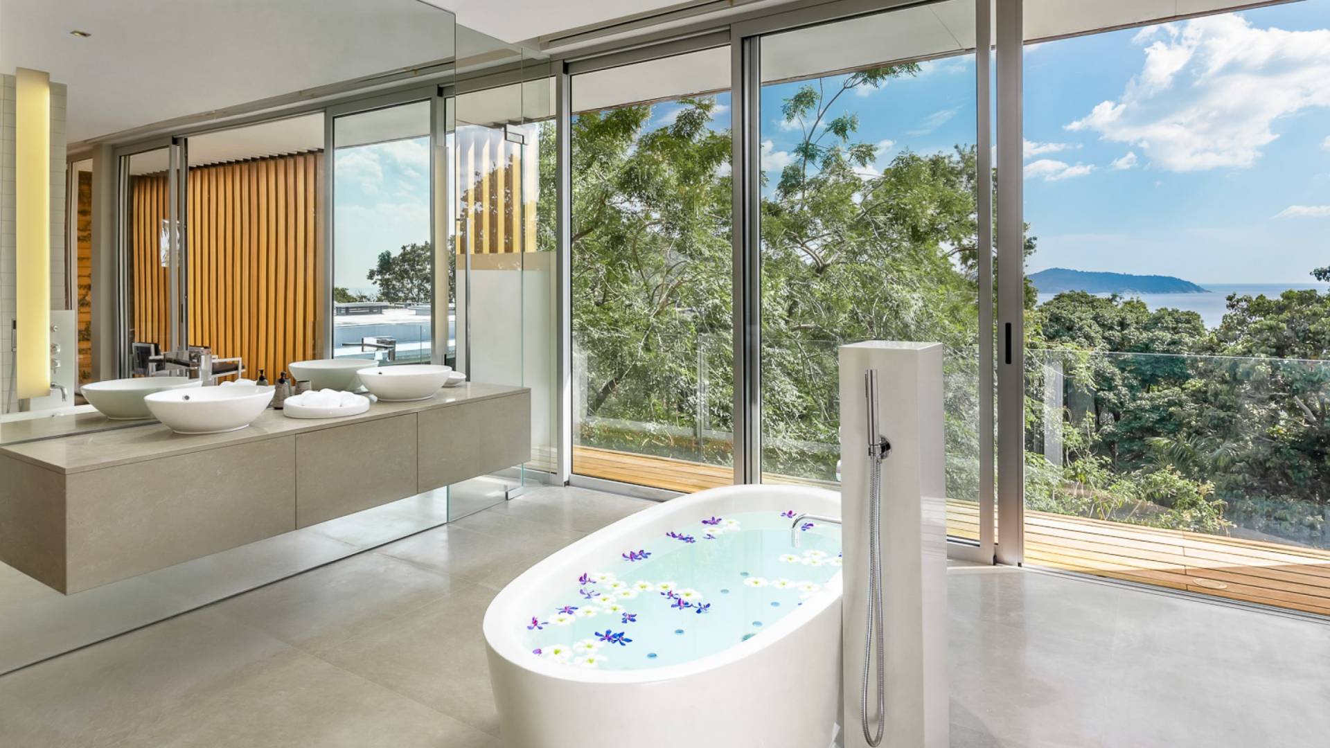 Master Wing regorge de luxe et de commodités. Ici, une vue imprenable sur la mer d'Andaman vous accueille chaque matin et la paix et la tranquillité sont vraiment inspirantes. Il est configuré pour l'intimité, séparé de l'aile des invités par la cuisine, la salle à manger, les divertissements et la réception. L'aile dispose de sa propre piscine privée, d'un somptueux dressing, d'une belle bibliothèque et d'un bureau. La salle de bain est un sanctuaire, moulé dans le marbre le plus fin et compensé par du chrome poli et du bois.