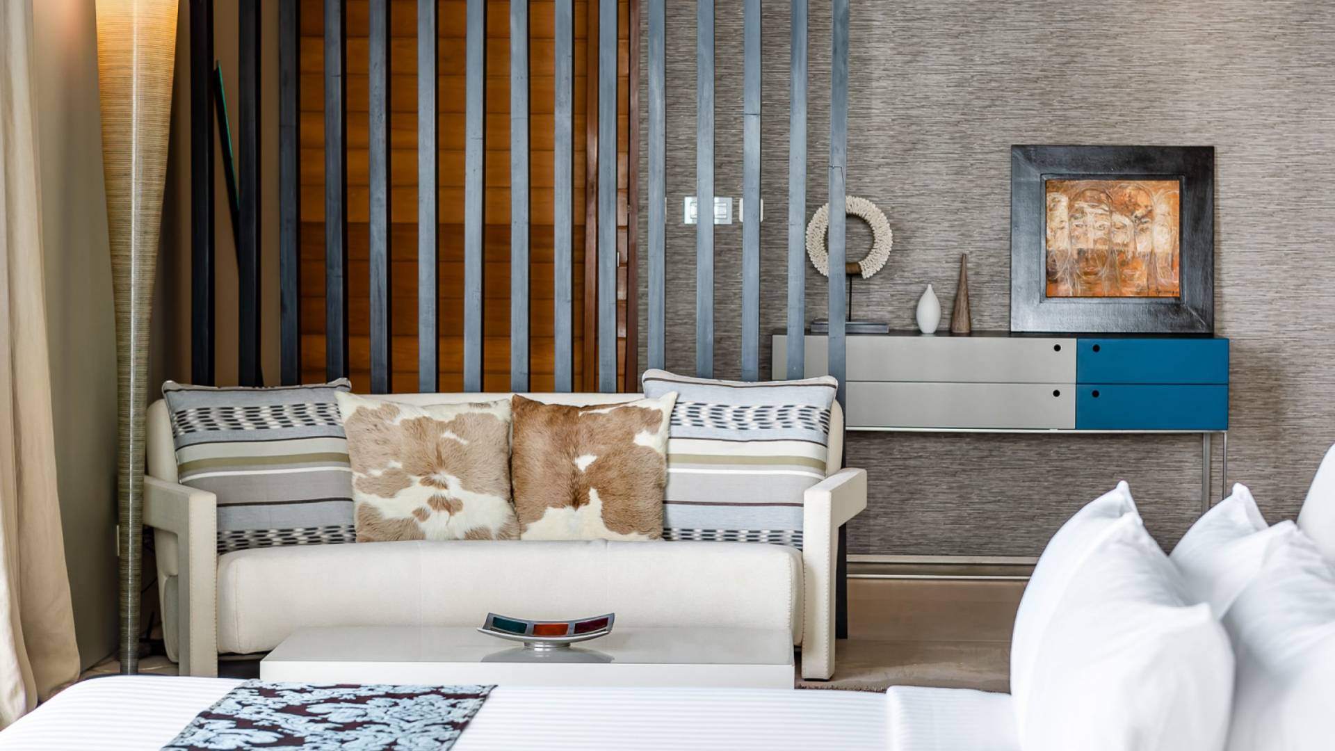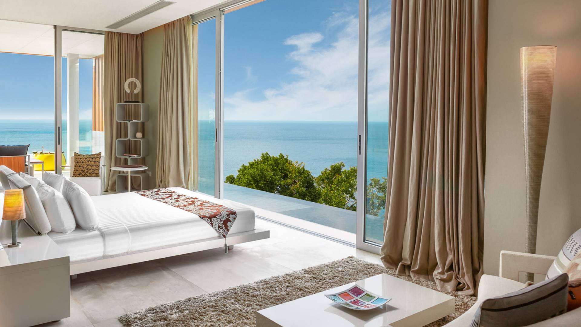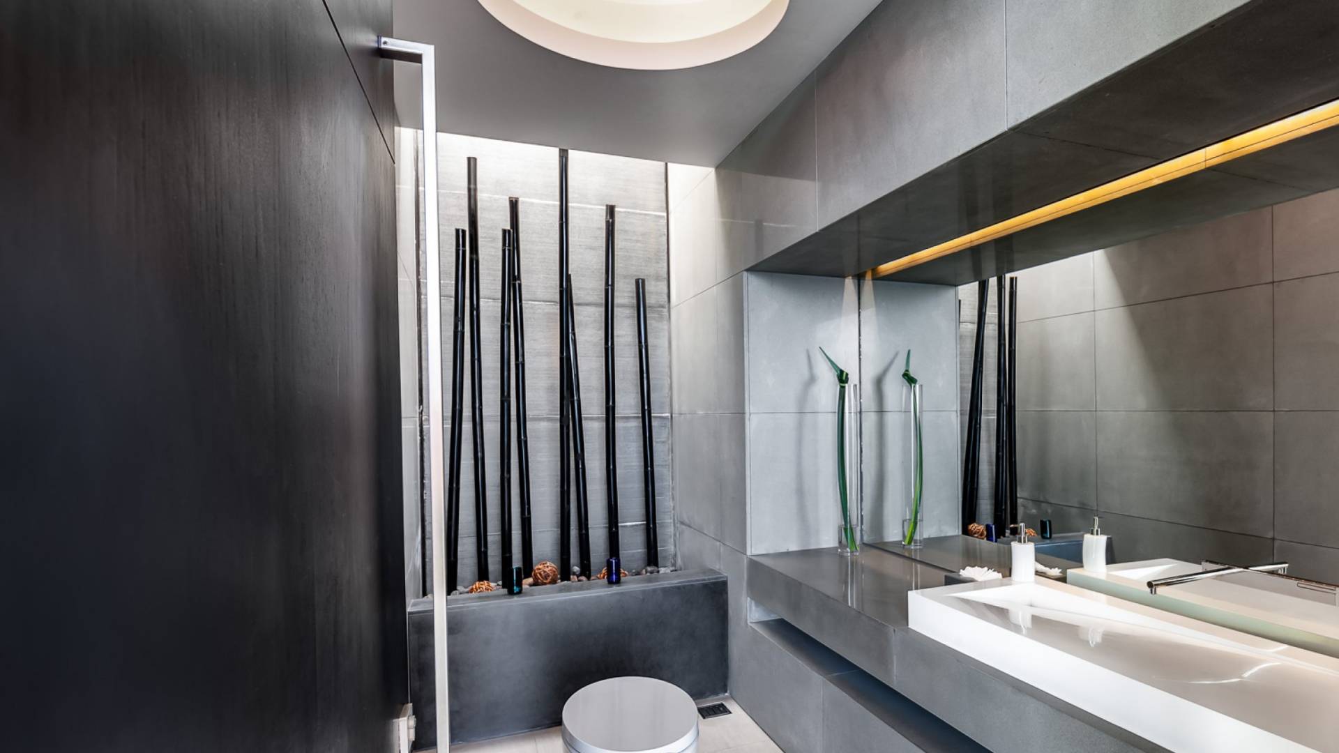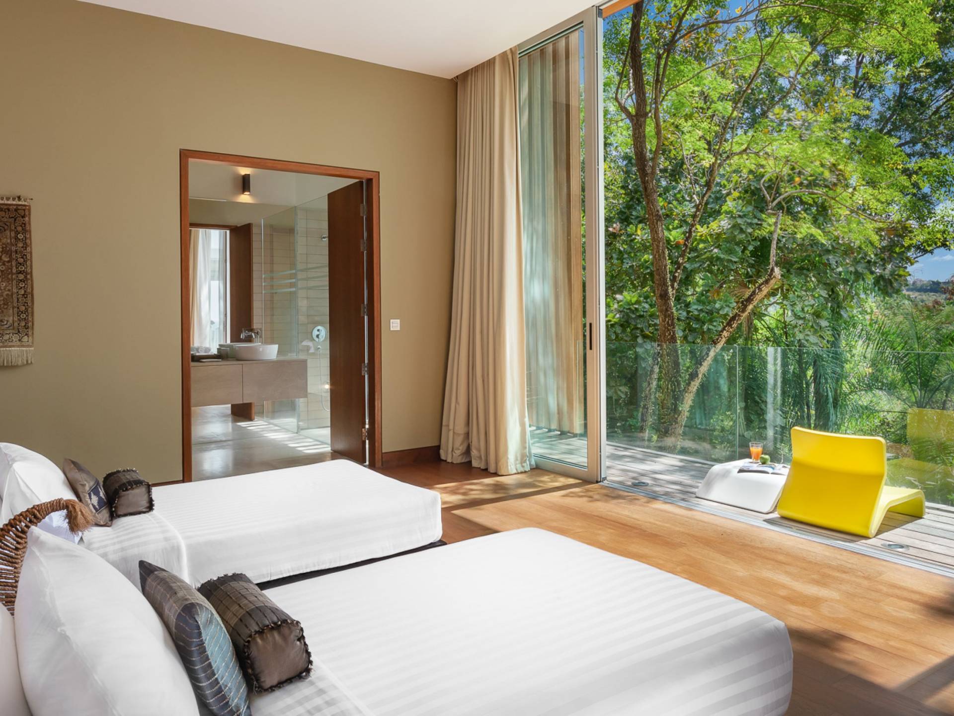 Master Wing regorge de luxe et de commodités. Ici, une vue imprenable sur la mer d'Andaman vous accueille chaque matin et la paix et la tranquillité sont vraiment inspirantes. Il est configuré pour l'intimité, séparé de l'aile des invités par la cuisine, la salle à manger, les divertissements et la réception. L'aile dispose de sa propre piscine privée, d'un somptueux dressing, d'une belle bibliothèque et d'un bureau. La salle de bain est un sanctuaire, moulé dans le marbre le plus fin et compensé par du chrome poli et du bois.