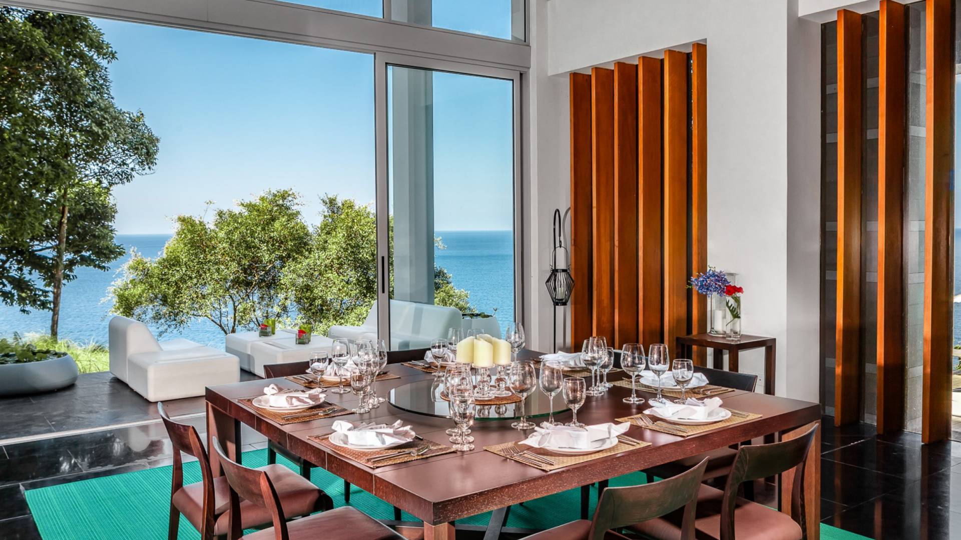 Villa Mayavee Phuket a réussi à combiner harmonieusement deux mondes différents : l'Orient et l'Occident ; tradition et modernité. Le charme du bois, aux touches asiatiques soignées, affirme l'esprit zen que l'on ressent en entrant dans la villa. Cet esprit se retrouve partout dans le lieu, mais surtout dans les principaux espaces de réception et de vie. Cette zone a un intérieur ouvert et spacieux. Le salon fusionne magnifiquement avec la salle à manger et la cuisine américaine. La cuisine est construite avec des équipements modernes et conçue avec des appareils cachés.