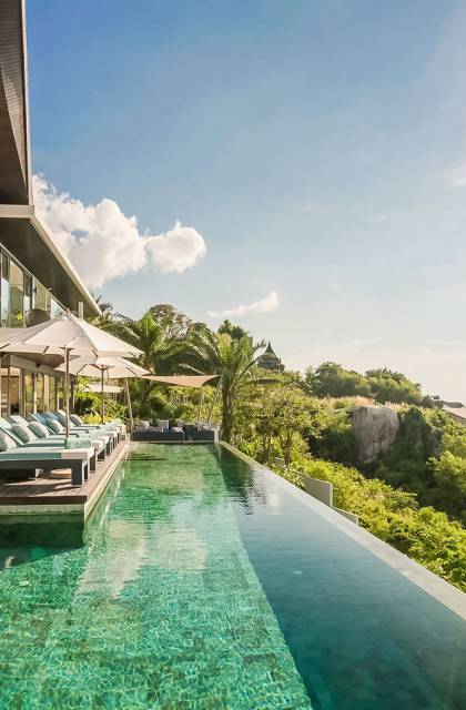 Villa Samira à Phuket est une location de villa de luxe avec 6 chambres et une piscine privée. Placée élégamment au sommet de collines tropicales verdoyantes, comme si elle s'élançait vers le ciel, la luxueuse Villa Samira est un paradis luxueux sur terre. Les vues panoramiques sur les champs divins et l'océan azur en dessous créent une ambiance tranquille remplie d'air frais et de sérénité qui vous aidera à satisfaire vos sens. Conçue pour accueillir jusqu'à 12 personnes, la villa de luxe est parfaite pour les familles nombreuses et les groupes d'amis.