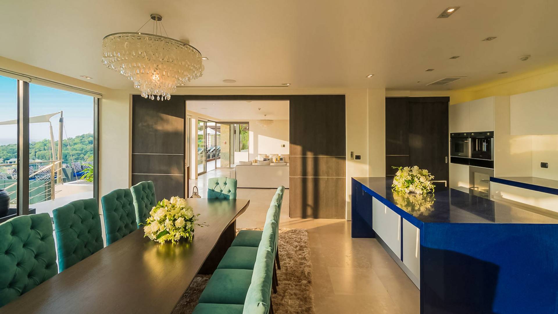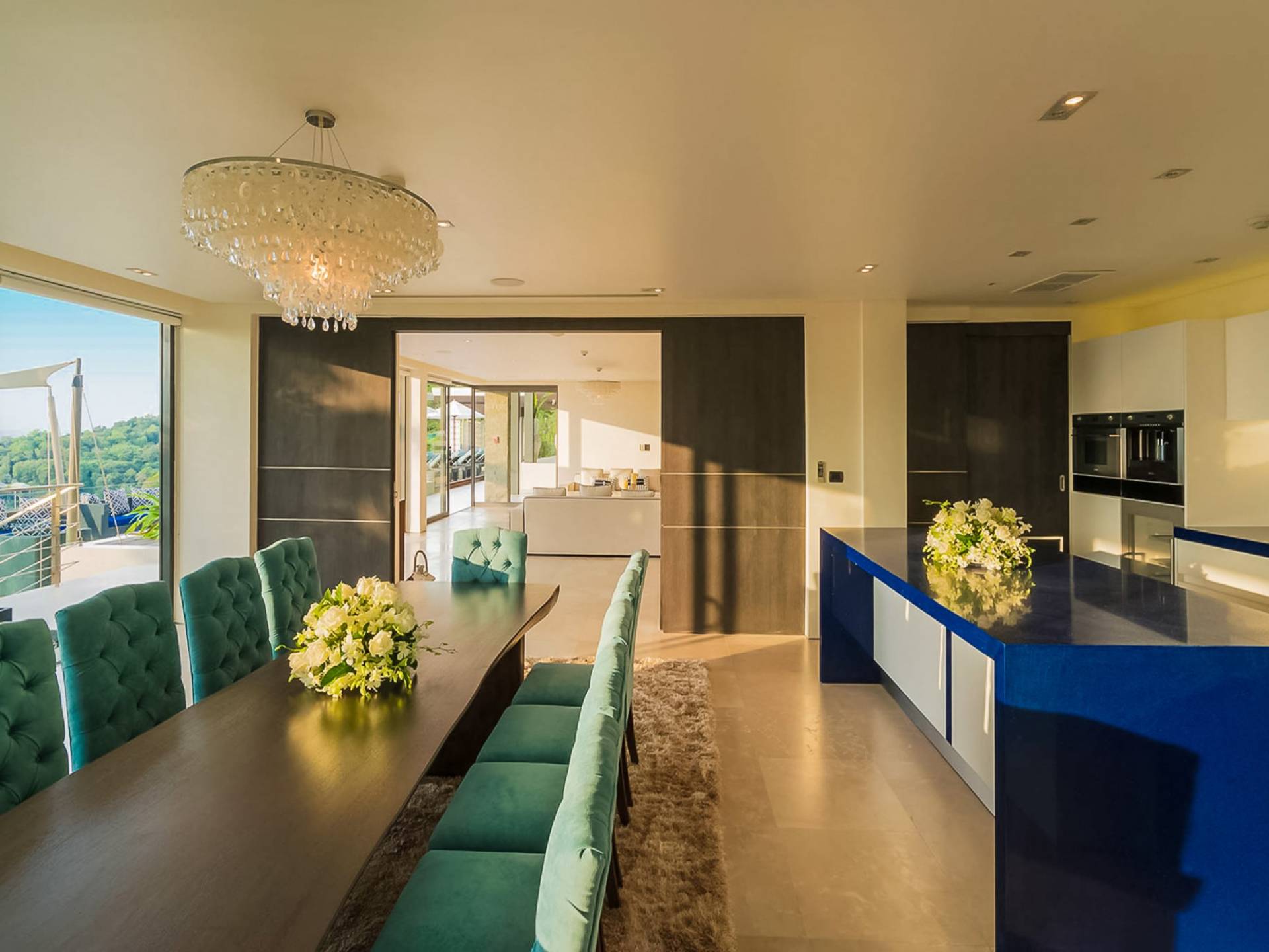 Des espaces de vie intérieurs et extérieurs impressionnants, une salle à manger, une salle multimédia avec un écran de projection, une salle de jeux avec une table de billard, une salle de spa et une cuisine moderne entièrement équipée se trouvent dans la majestueuse villa de luxe. Une équipe amicale de personnel professionnel, y compris un chef privé, fournit un service de qualité supérieure tous les jours.