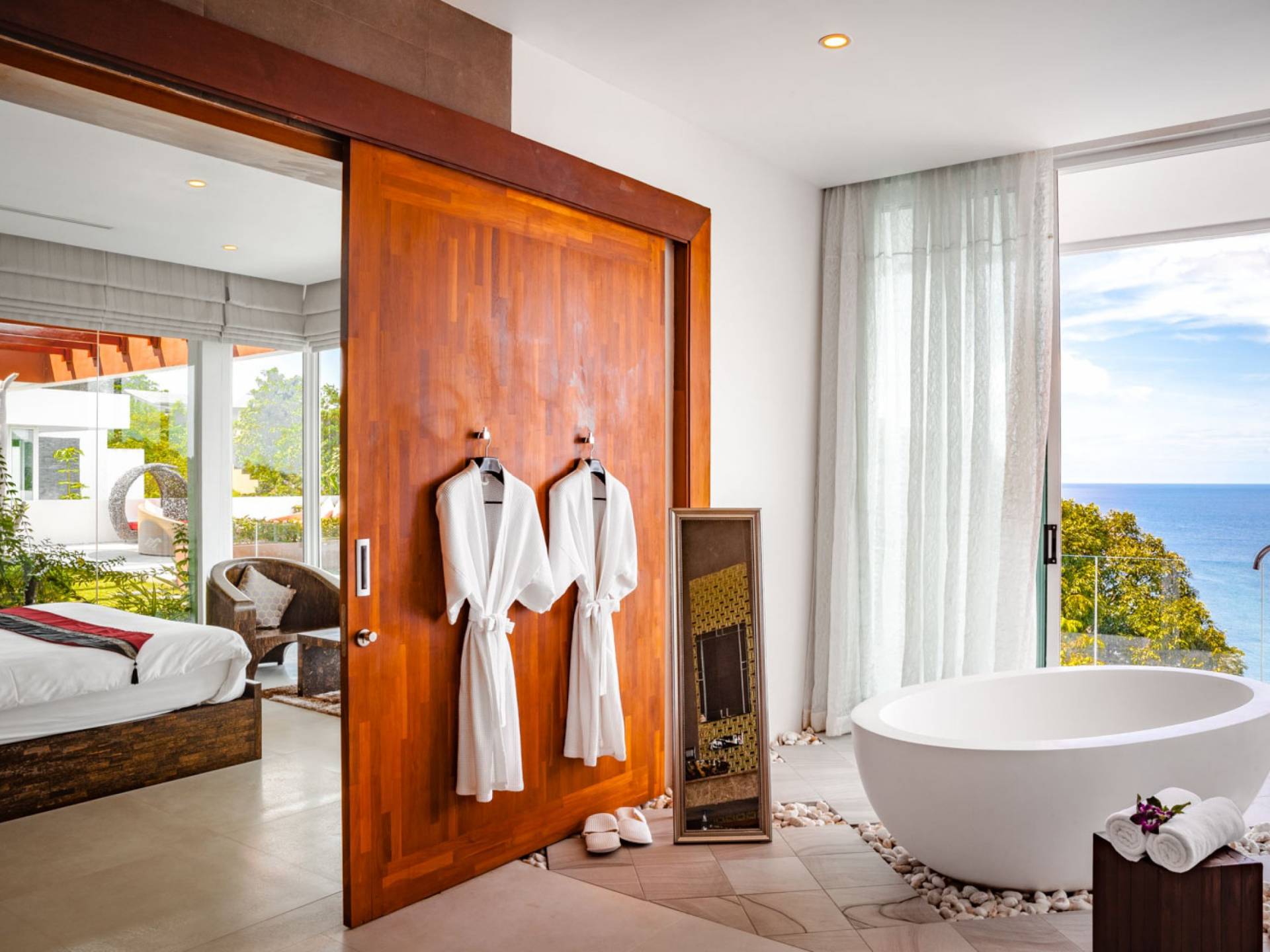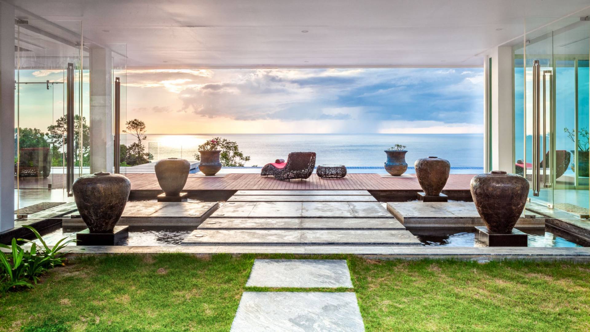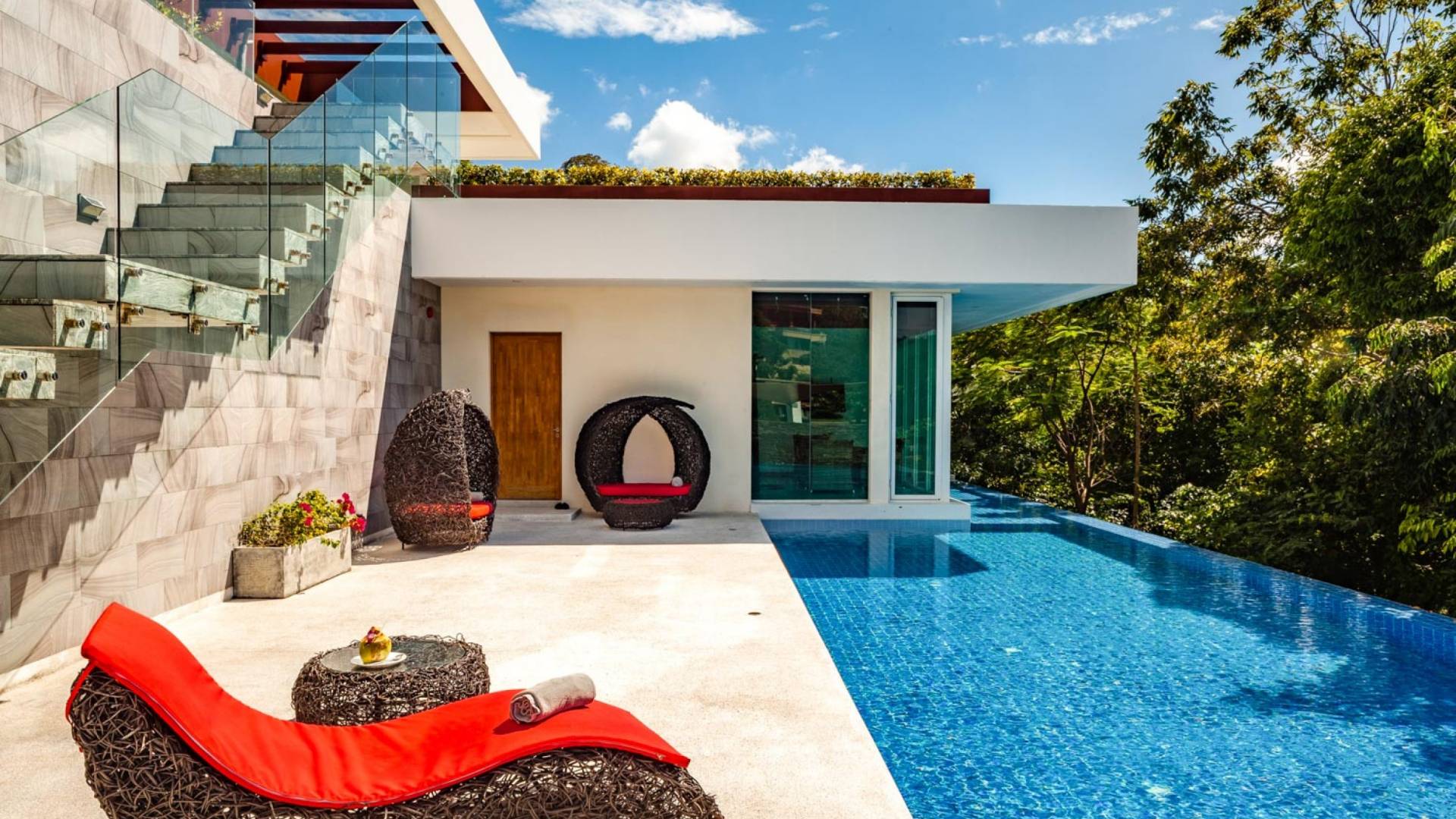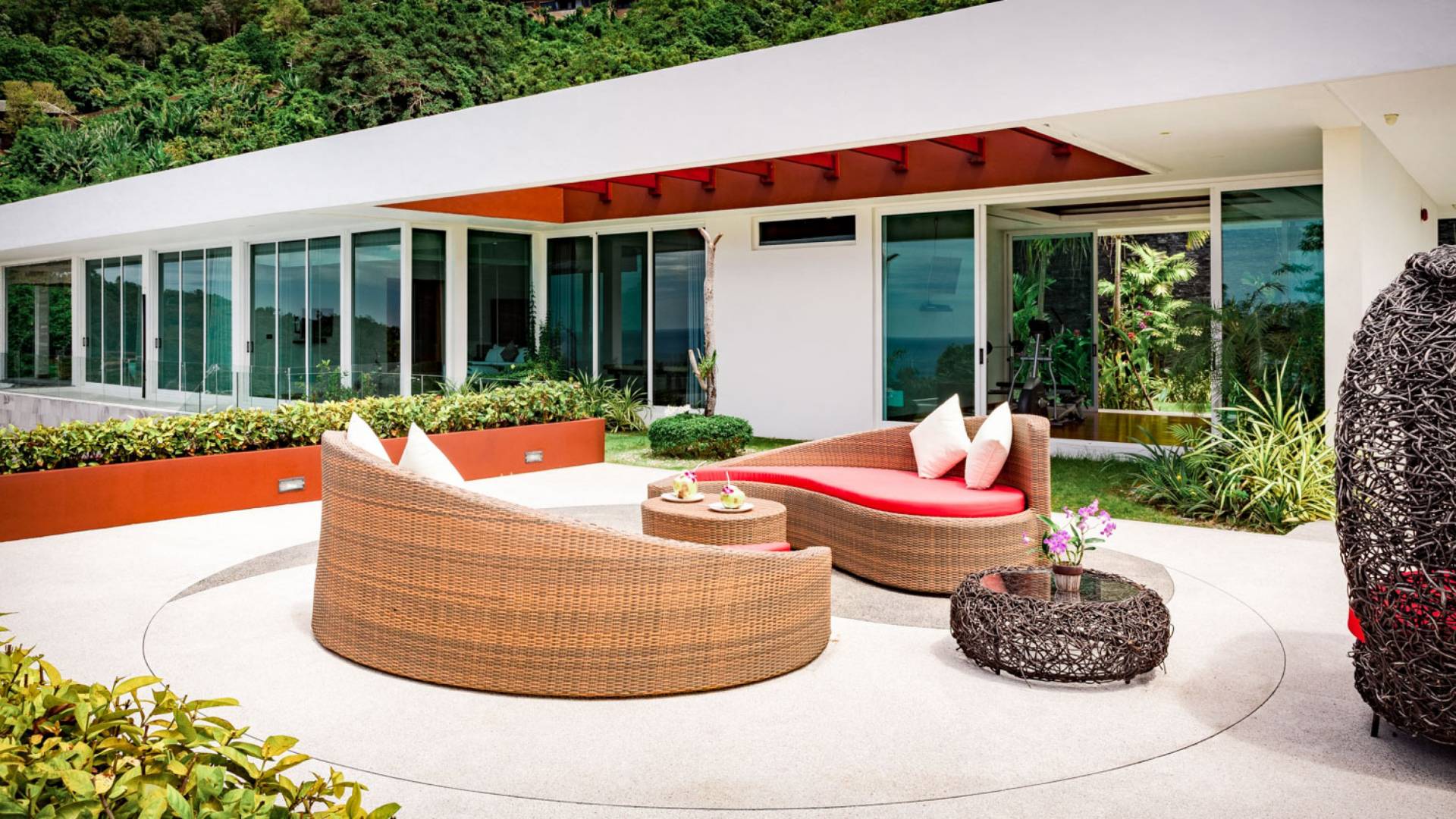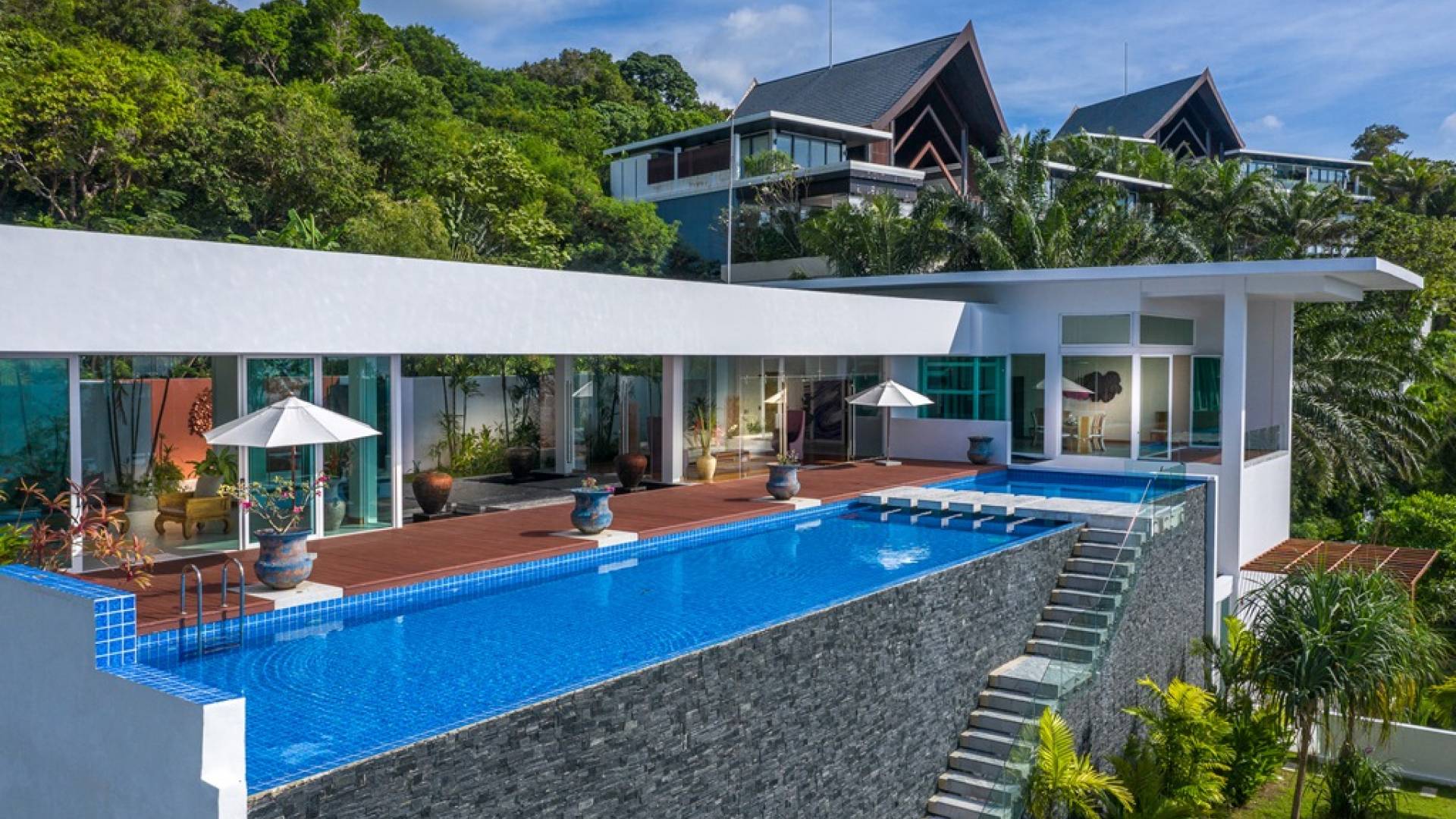 Le pavillon central contient une salle de sport privée, une salle de massage ainsi qu'une chambre offrant une vue spectaculaire à vol d'oiseau sur la mer en contrebas et les troisième et quatrième chambres. En dessous se trouve la deuxième chambre principale, avec la troisième piscine adjacente à un espace barbecue. Entre les trois pavillons principaux, le terrain de la villa est resplendissant de jardins tropicaux matures et de sentiers qui serpentent à travers la vaste propriété.