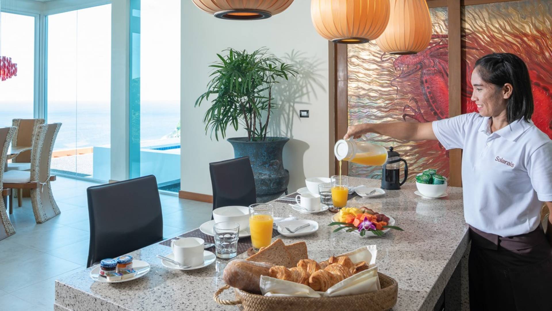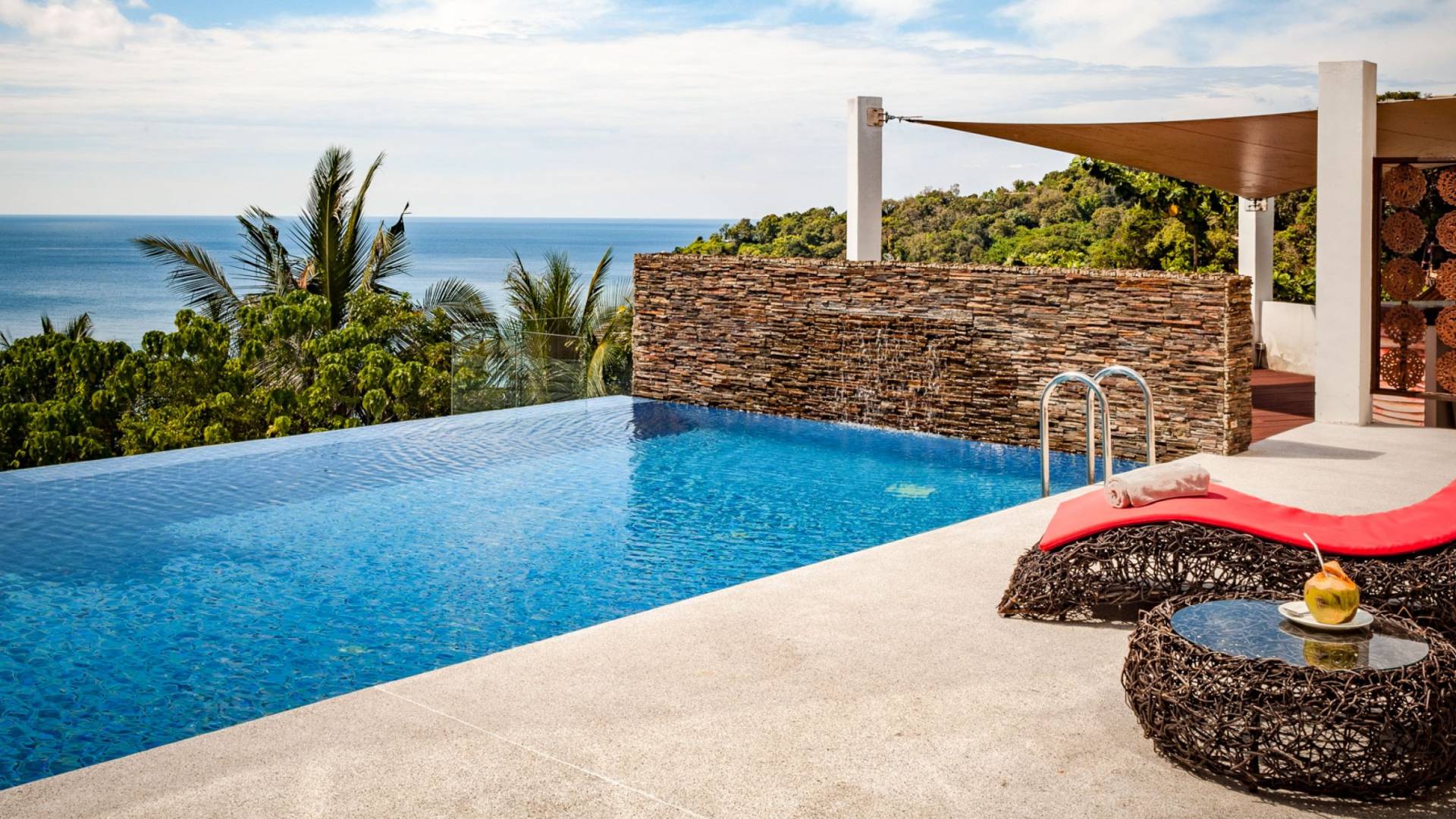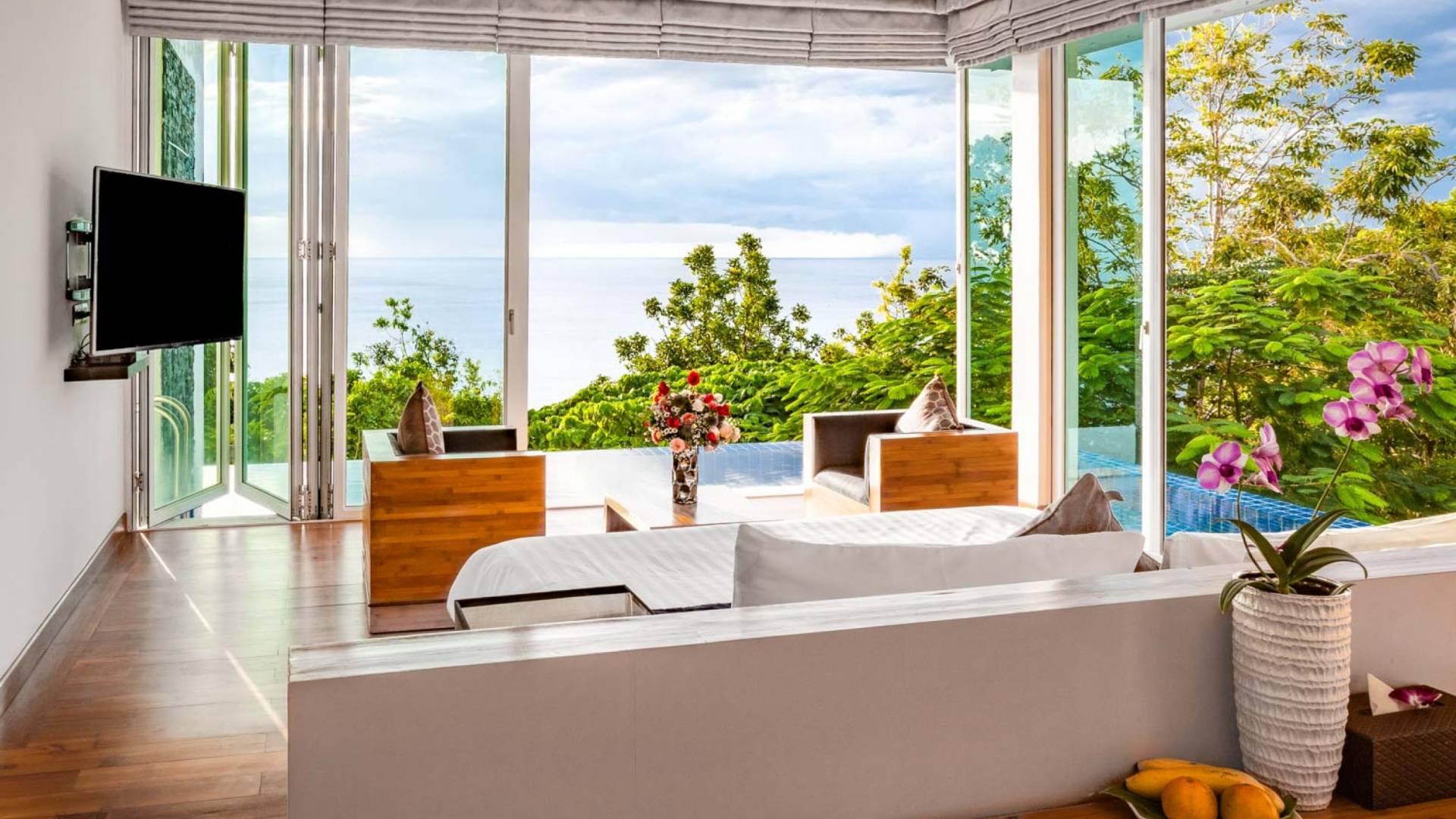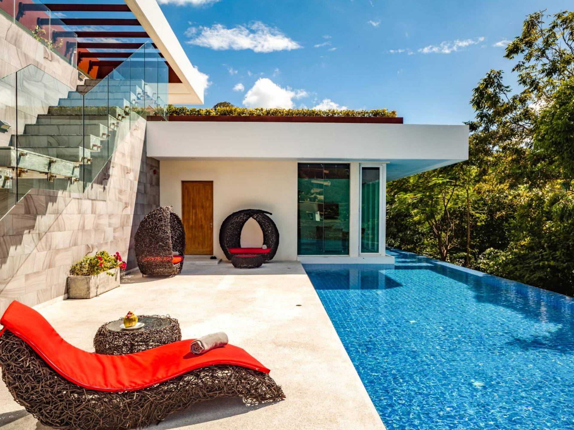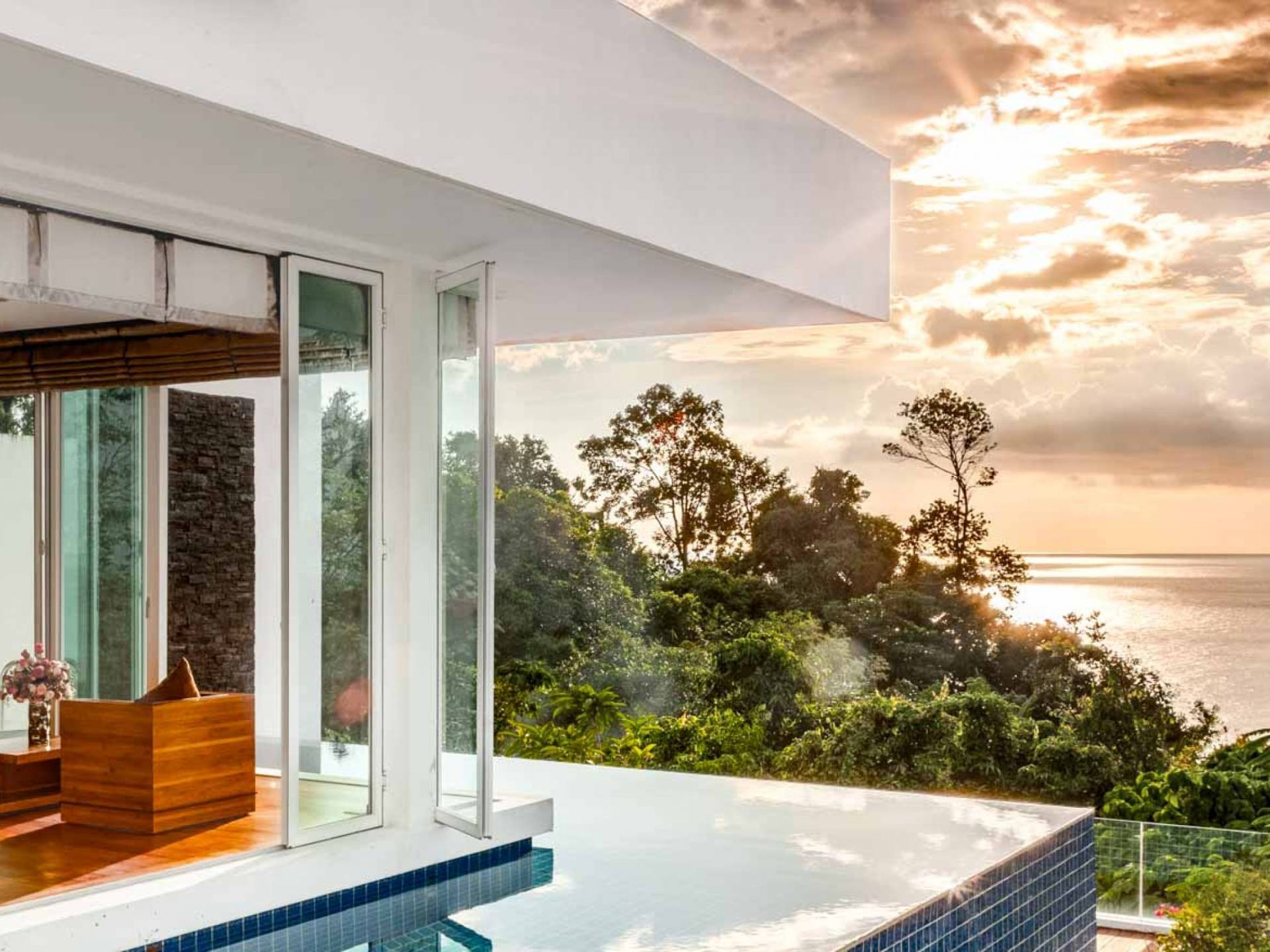 Villa Solaris Phuket est une location de villa de luxe avec 4 chambres et une piscine privée. Située dans les collines du domaine exclusif Cape Amarin à Kamala, Phuket, avec une toile de fond tentaculaire sur la mer, la luxueuse villa Solaris de 4 chambres ne manquera pas d'impressionner. Les quatre chambres de la villa disposent d'une salle de bains privative et d'une vue panoramique sur l'océan.