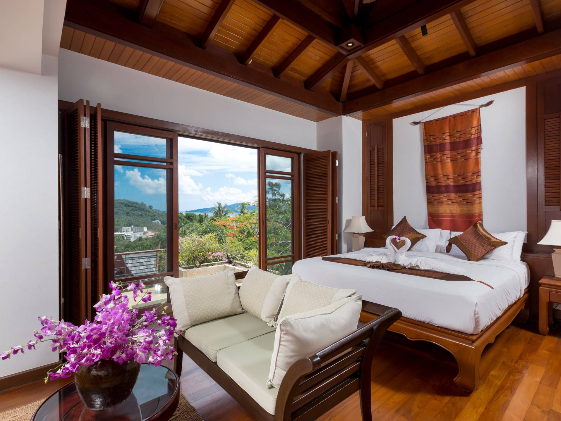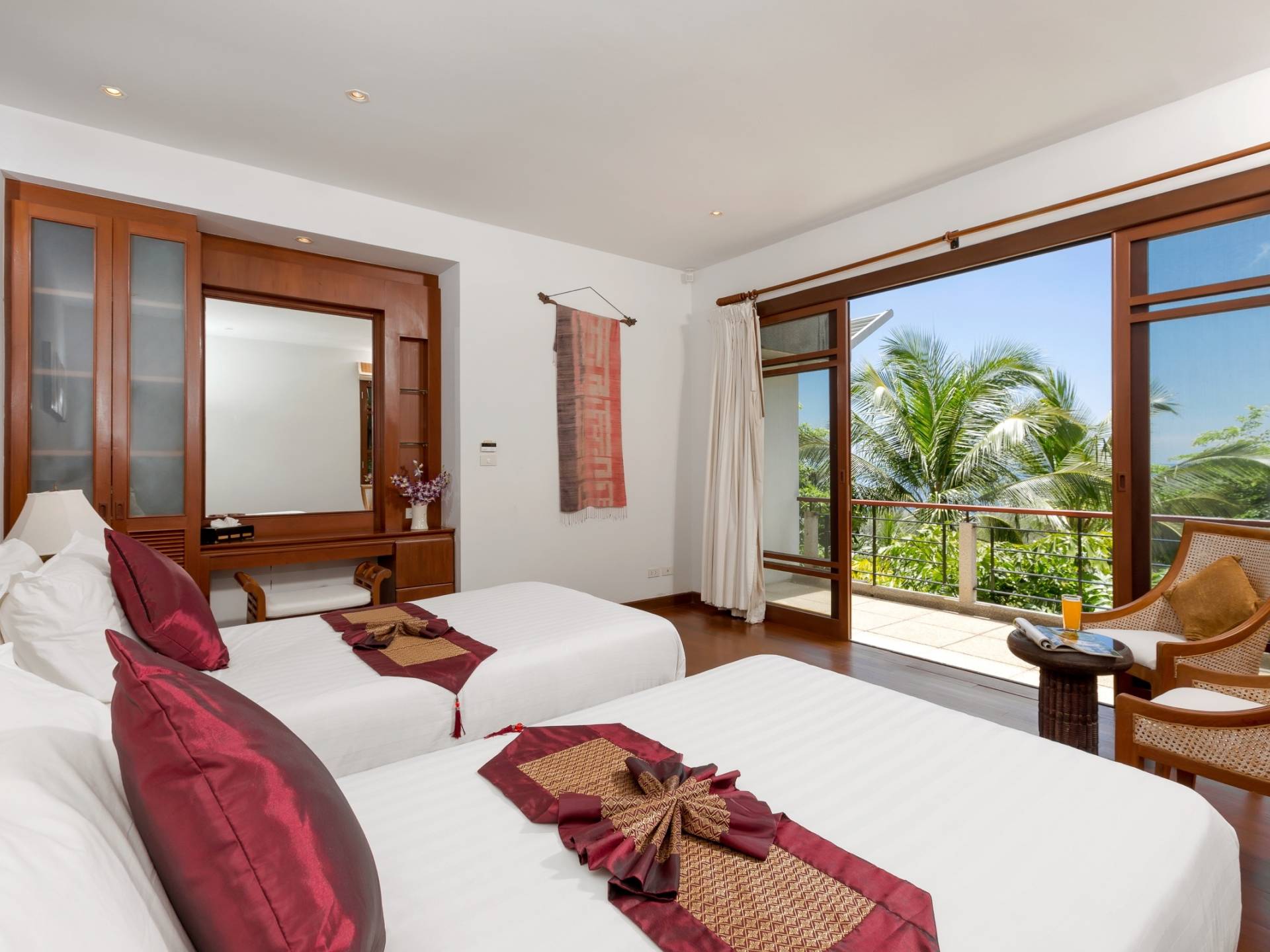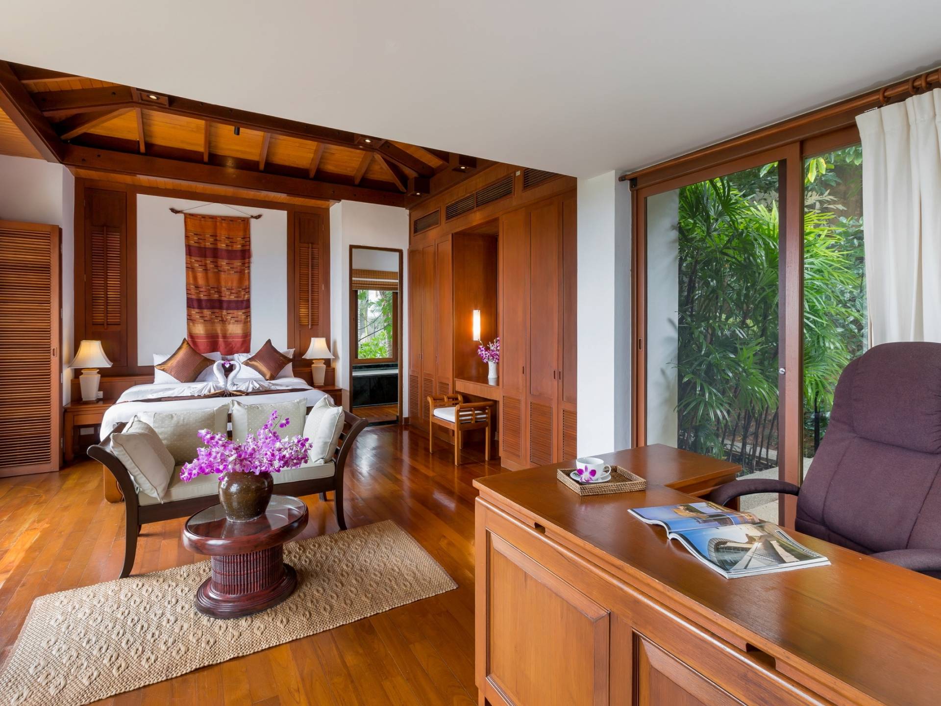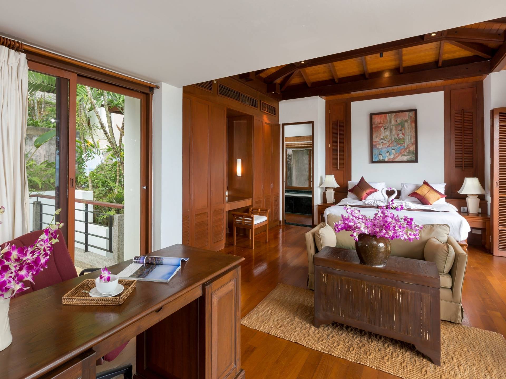 La Villa Arawan Phuket propose un mélange de styles thaïlandais et occidentaux, avec des sols en teck poli et de jolis tissus d'ameublement thaïlandais, ainsi que des salles de bains occidentales modernes. La piscine à débordement mesure 10 x 5 mètres avec une profondeur de 1,6 mètre partout. Il y a aussi un grand bain à remous chauffé avec sa propre terrasse. En parcourant la maison, un grand hall d'entrée à l'étage supérieur mène à deux grandes chambres parentales assorties avec lits king-size et une vue imprenable, une terrasse privée, une salle de bain luxueuse avec une grande baignoire faite à la main, une cabine de douche séparée, des toilettes et bidet. Il y a beaucoup d'espace de rangement ainsi qu'un mini-réfrigérateur et un coffre-fort. Une coiffeuse a un miroir caché. Il y a aussi de la place pour se détendre et un bureau/poste de travail avec une connexion téléphonique pour ordinateur est équipé pour ceux qui ont besoin de rester en contact avec le monde extérieur.