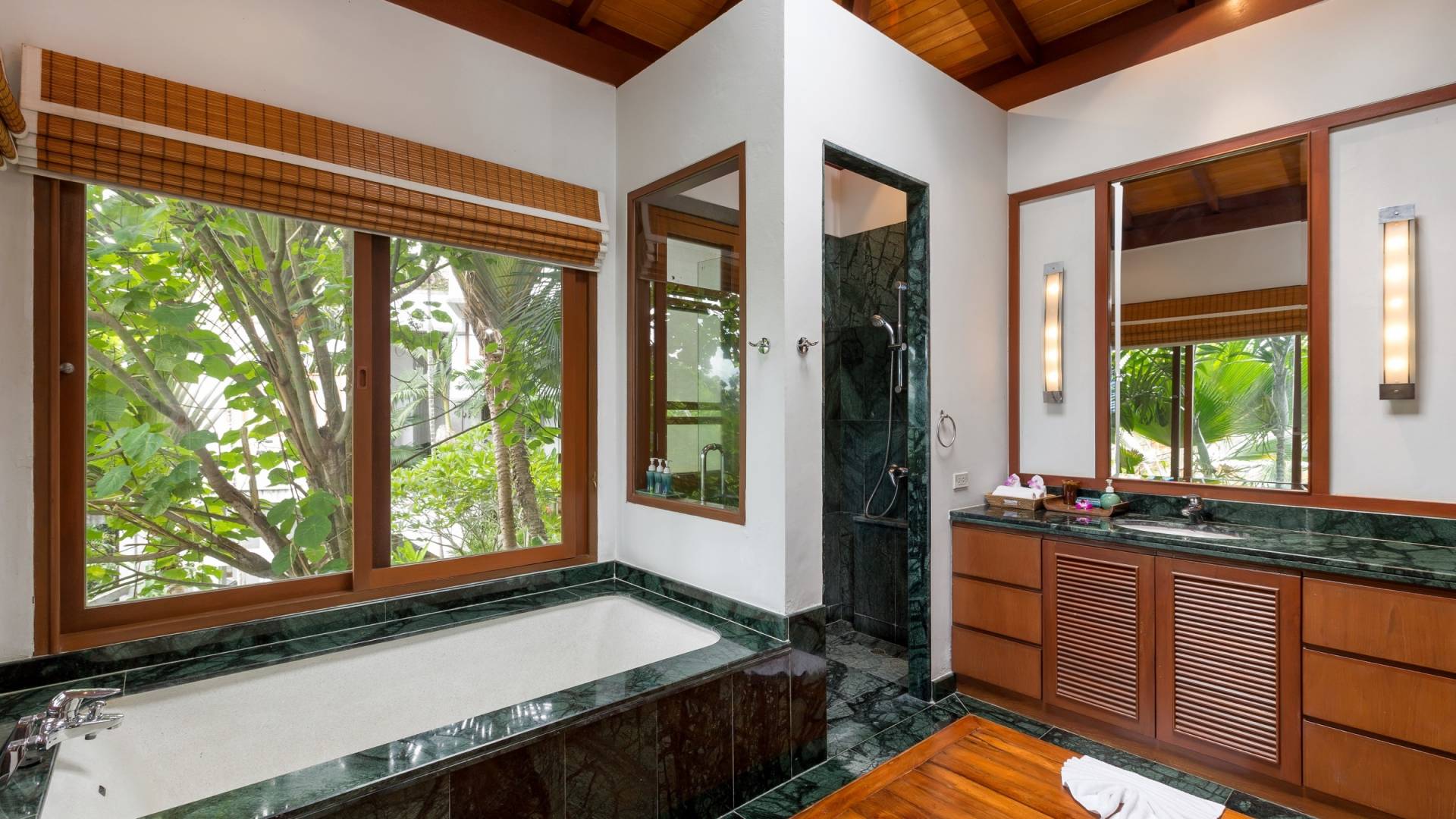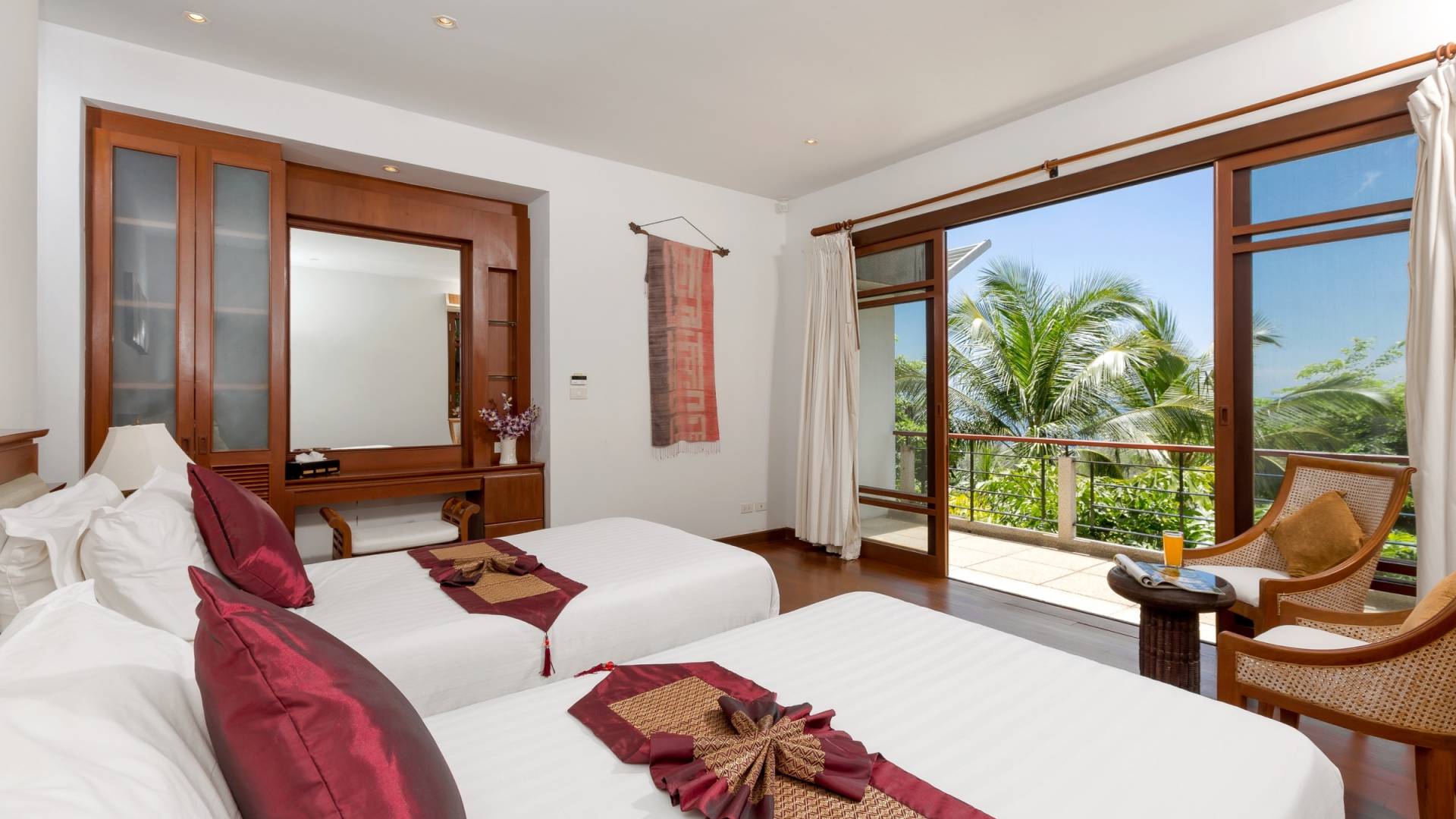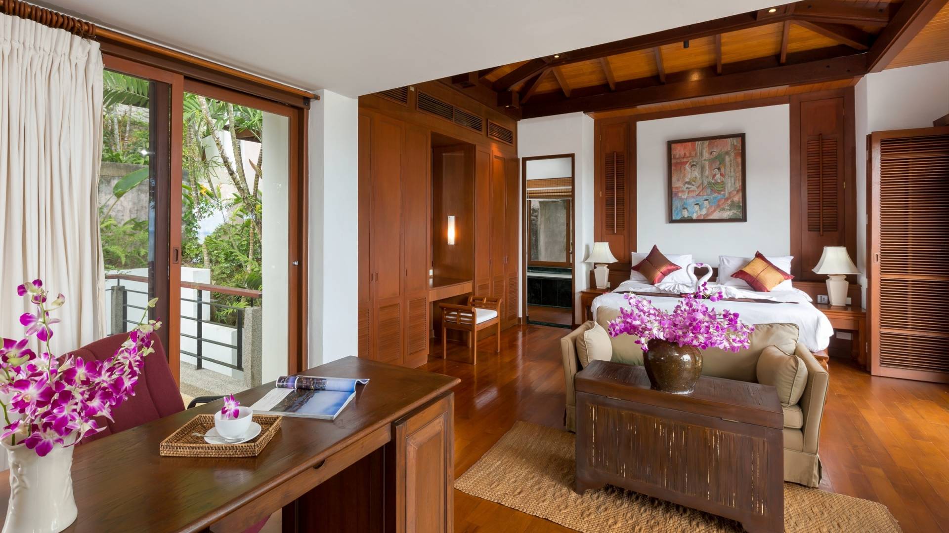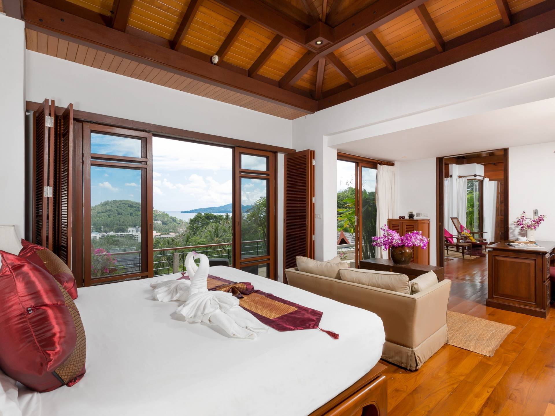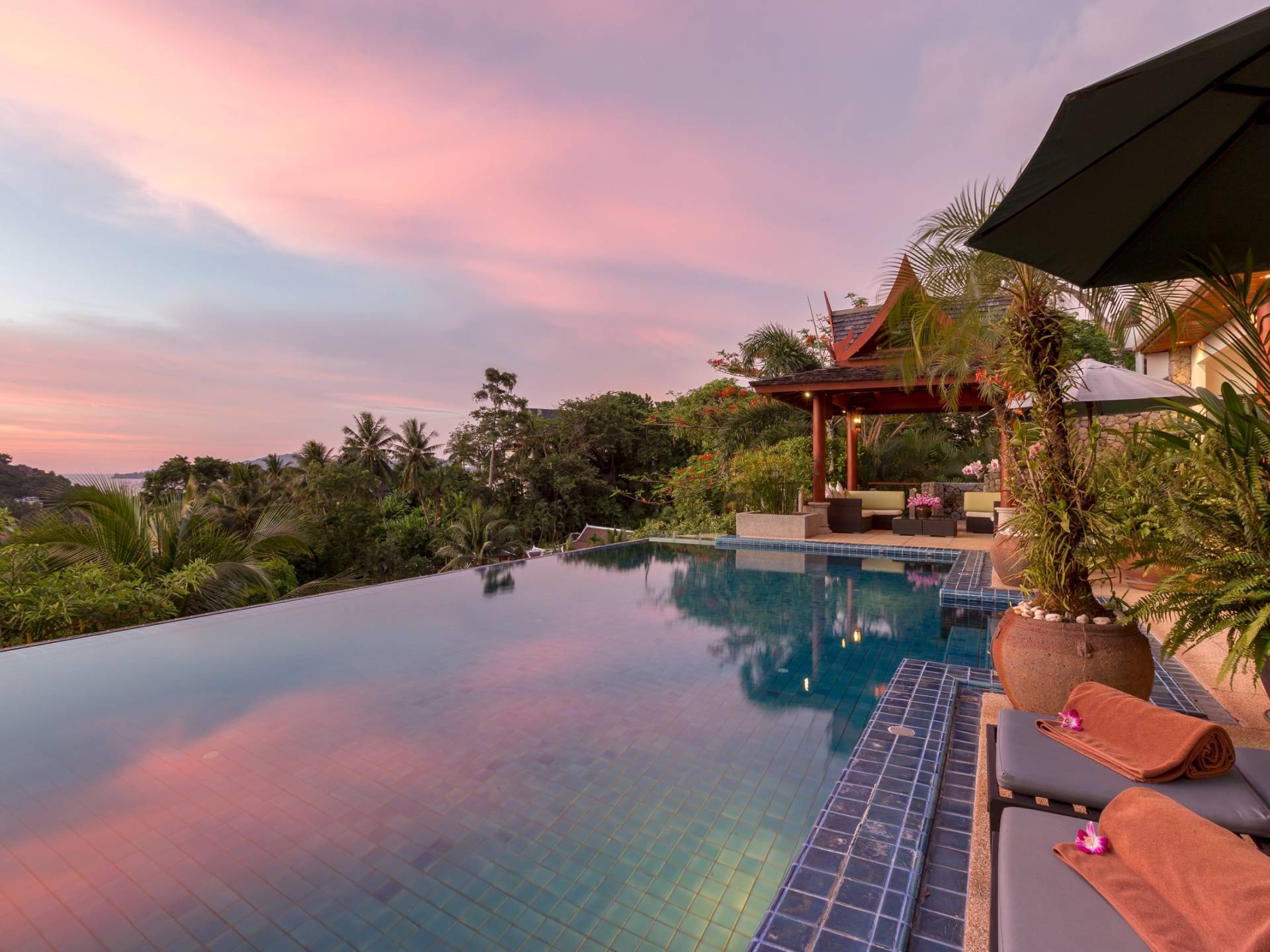 La Villa Arawan Phuket propose un mélange de styles thaïlandais et occidentaux, avec des sols en teck poli et de jolis tissus d'ameublement thaïlandais, ainsi que des salles de bains occidentales modernes. La piscine à débordement mesure 10 x 5 mètres avec une profondeur de 1,6 mètre partout. Il y a aussi un grand bain à remous chauffé avec sa propre terrasse. En parcourant la maison, un grand hall d'entrée à l'étage supérieur mène à deux grandes chambres parentales assorties avec lits king-size et une vue imprenable, une terrasse privée, une salle de bain luxueuse avec une grande baignoire faite à la main, une cabine de douche séparée, des toilettes et bidet. Il y a beaucoup d'espace de rangement ainsi qu'un mini-réfrigérateur et un coffre-fort. Une coiffeuse a un miroir caché. Il y a aussi de la place pour se détendre et un bureau/poste de travail avec une connexion téléphonique pour ordinateur est équipé pour ceux qui ont besoin de rester en contact avec le monde extérieur.