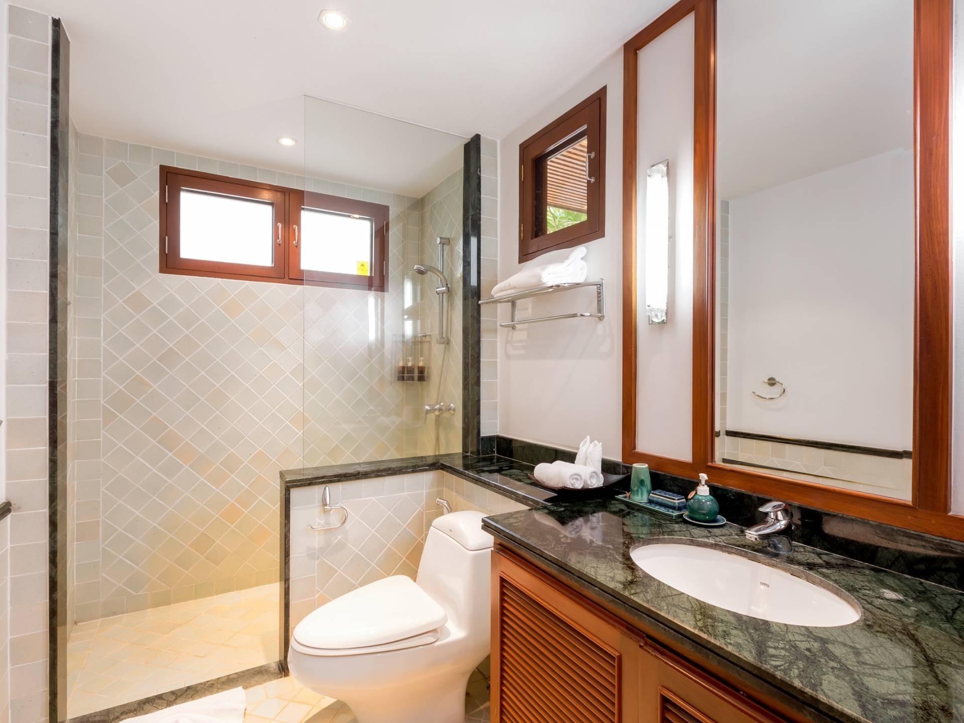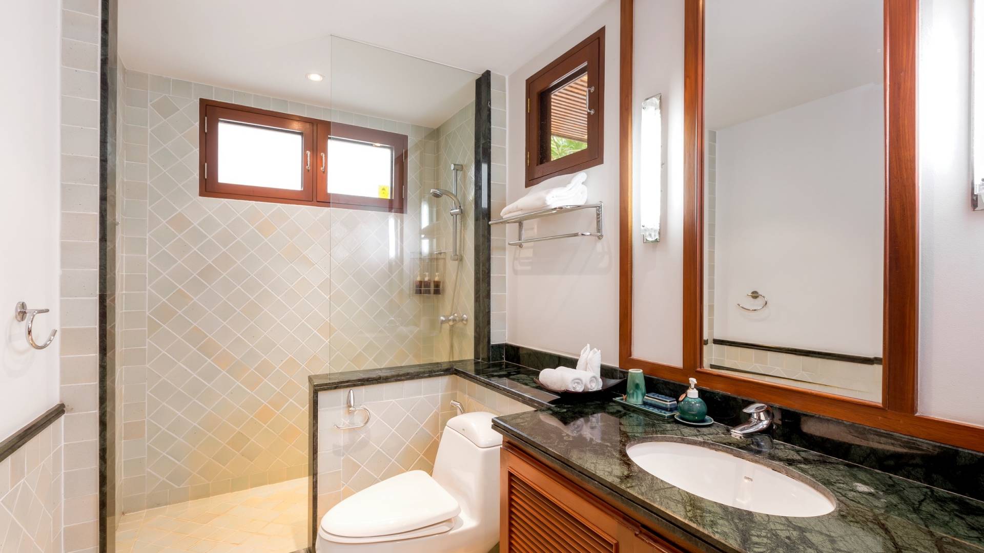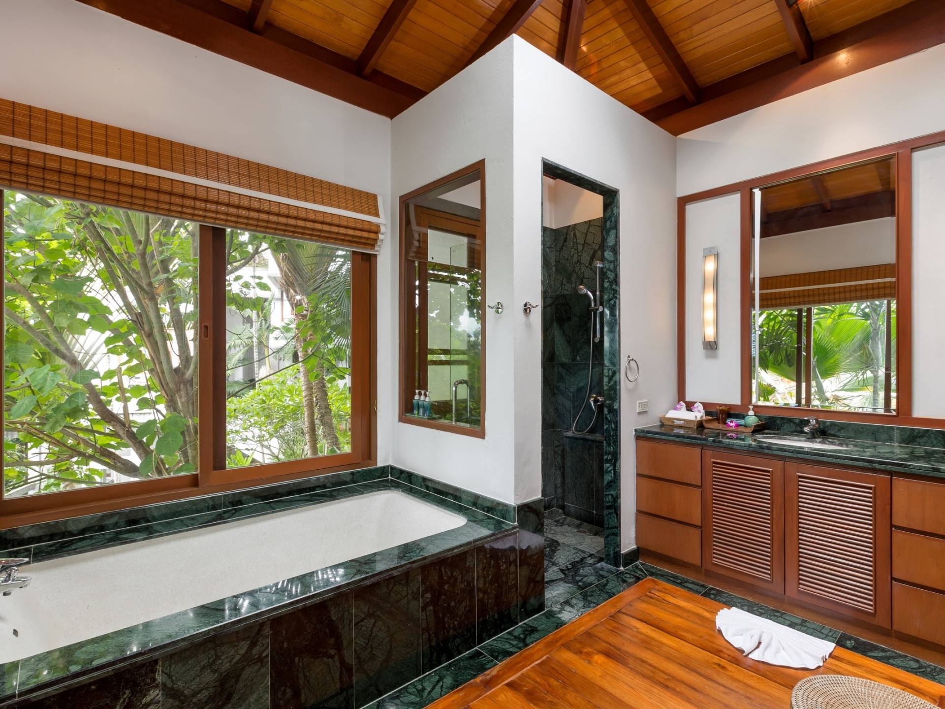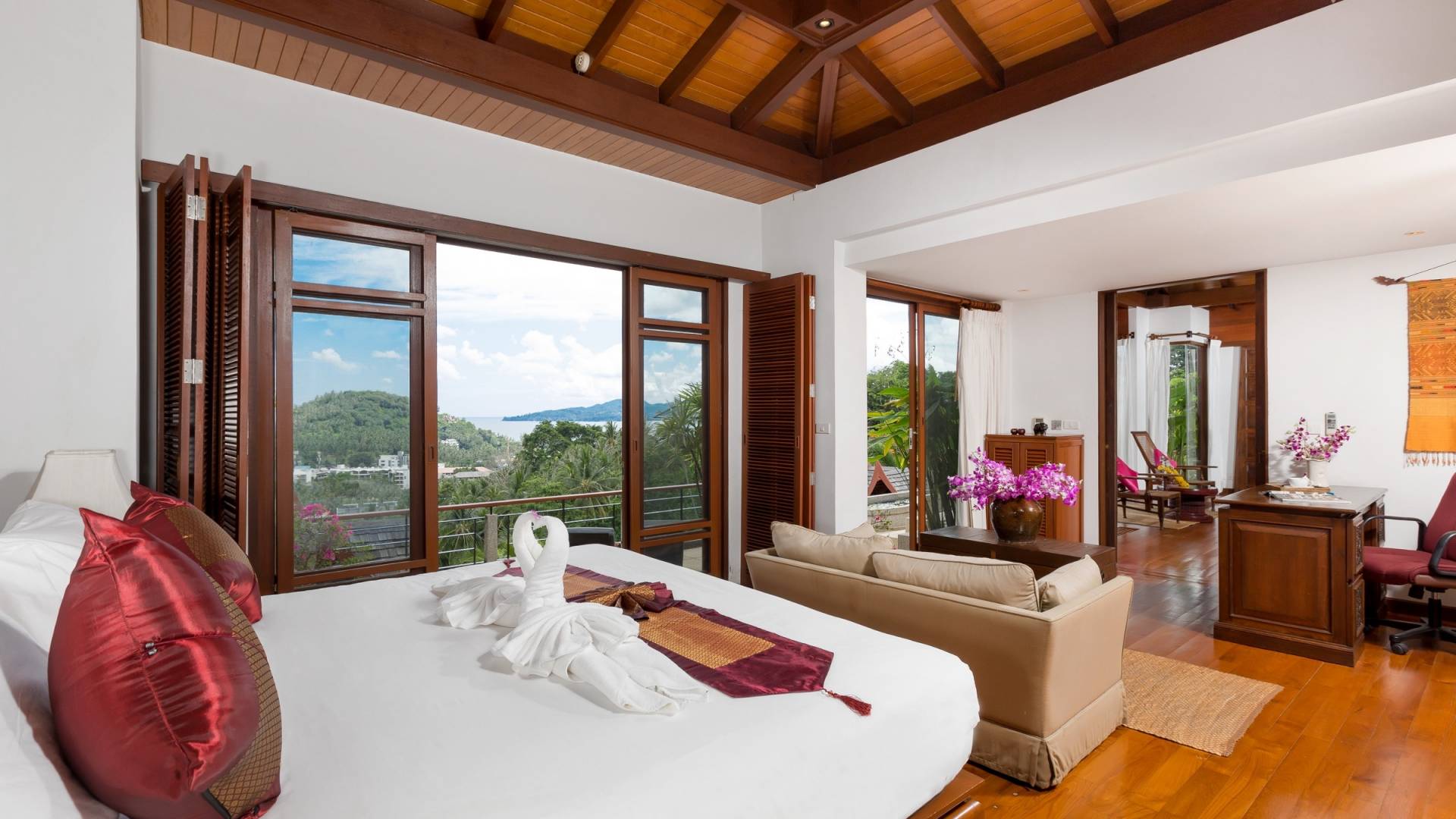 La Villa Arawan Phuket propose un mélange de styles thaïlandais et occidentaux, avec des sols en teck poli et de jolis tissus d'ameublement thaïlandais, ainsi que des salles de bains occidentales modernes. La piscine à débordement mesure 10 x 5 mètres avec une profondeur de 1,6 mètre partout. Il y a aussi un grand bain à remous chauffé avec sa propre terrasse. En parcourant la maison, un grand hall d'entrée à l'étage supérieur mène à deux grandes chambres parentales assorties avec lits king-size et une vue imprenable, une terrasse privée, une salle de bain luxueuse avec une grande baignoire faite à la main, une cabine de douche séparée, des toilettes et bidet. Il y a beaucoup d'espace de rangement ainsi qu'un mini-réfrigérateur et un coffre-fort. Une coiffeuse a un miroir caché. Il y a aussi de la place pour se détendre et un bureau/poste de travail avec une connexion téléphonique pour ordinateur est équipé pour ceux qui ont besoin de rester en contact avec le monde extérieur.