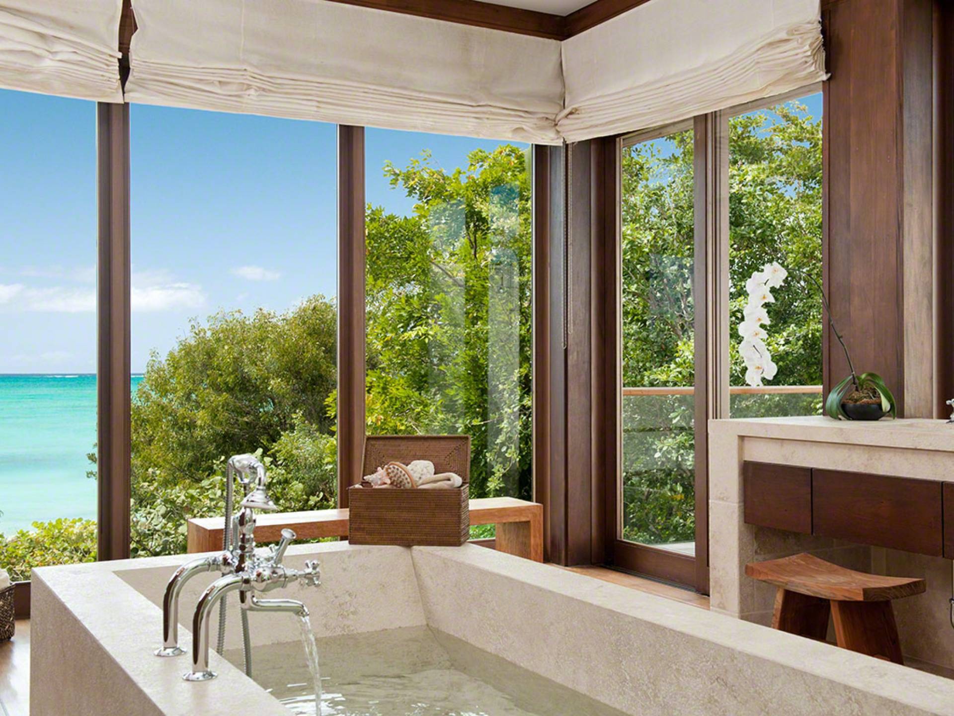 Deux des chambres avec salle de bains privative donnent sur la plage privée de la propriété, et une troisième chambre avec salle de bains privative donne sur un jardin luxuriant. Deux salles à manger privées et un grand espace de vie offrent aux clients beaucoup d'espace pour se détendre. La terrasse privée au niveau supérieur de la propriété entoure une grande piscine à débordement qui donne sur l'océan.