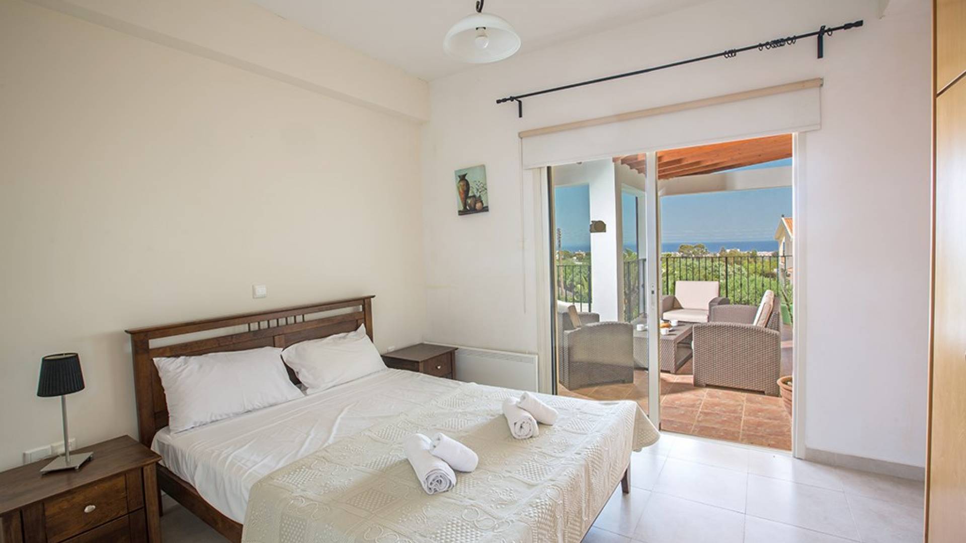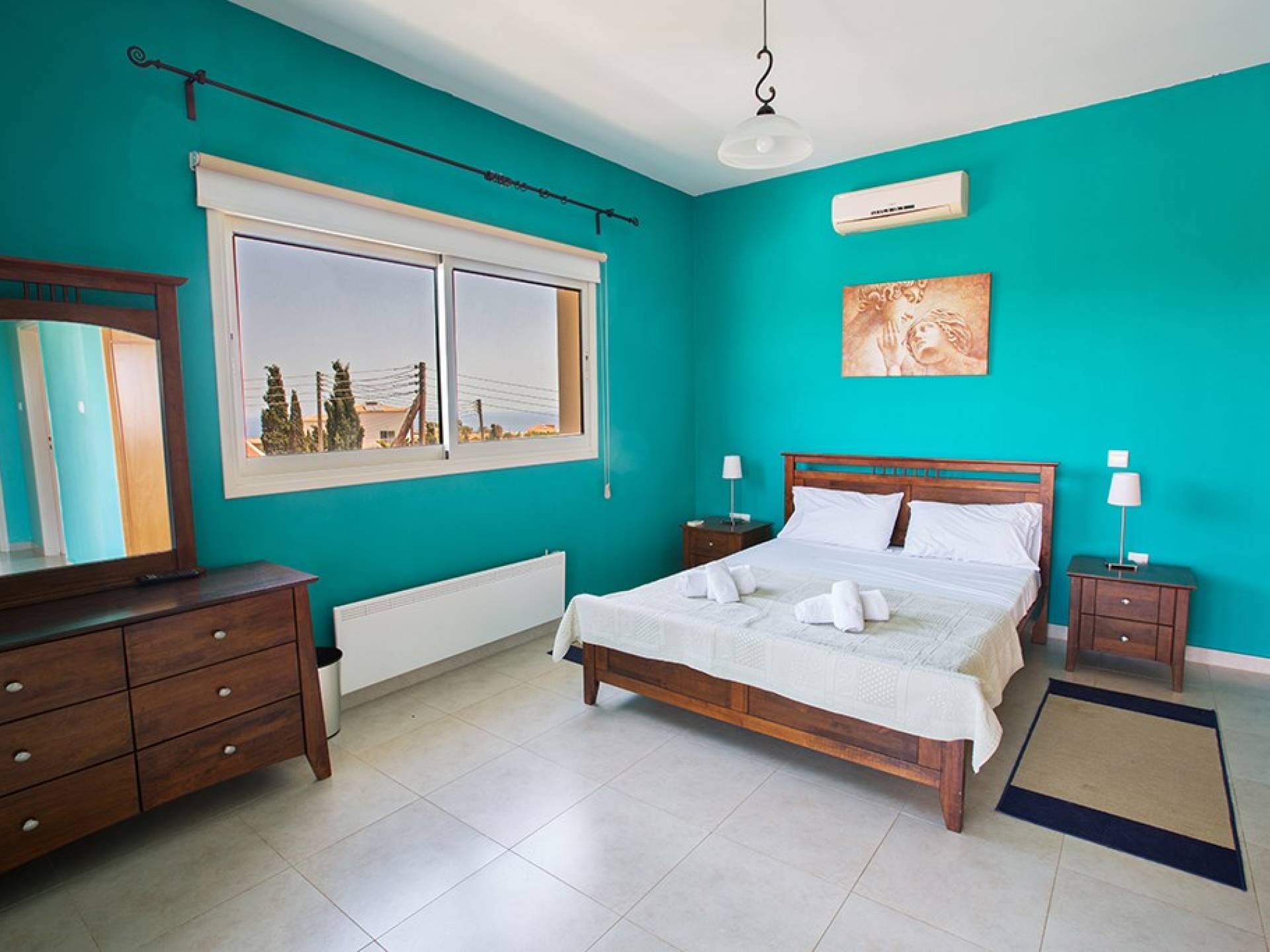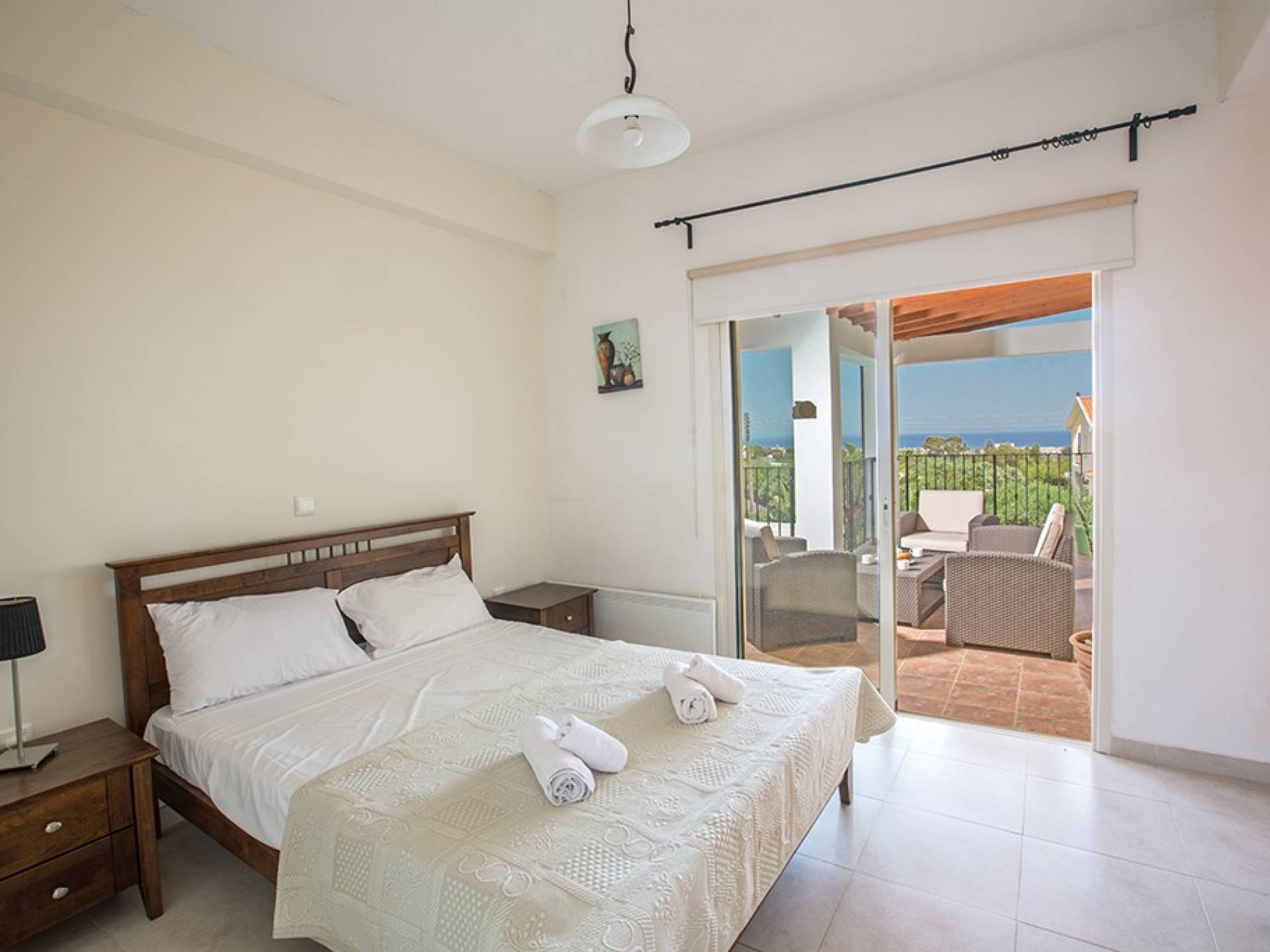 Al piano superiore, troverai le tre camere da letto e il bagno principale della famiglia con vasca, soffione doccia e W/C. La camera da letto principale ha un bagno privato con vasca, doccia e W/C. Dispone inoltre di un letto matrimoniale, di una TV ad ampio schermo e di porte finestre che conducono all'ampio balcone che dispone di una comoda area salotto e offre splendide viste sul mare. La seconda camera ha un letto matrimoniale e porte che conducono al balcone e la terza camera ha due letti singoli e porte che conducono al balcone. Tutte le camere sono dotate di armadi a muro e comodini