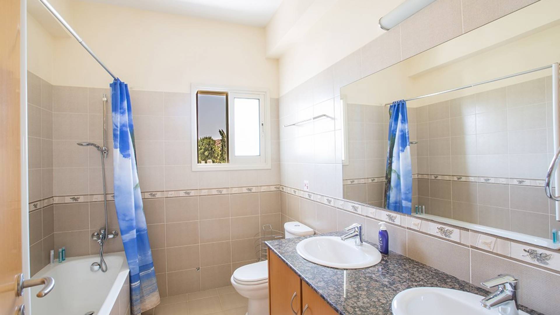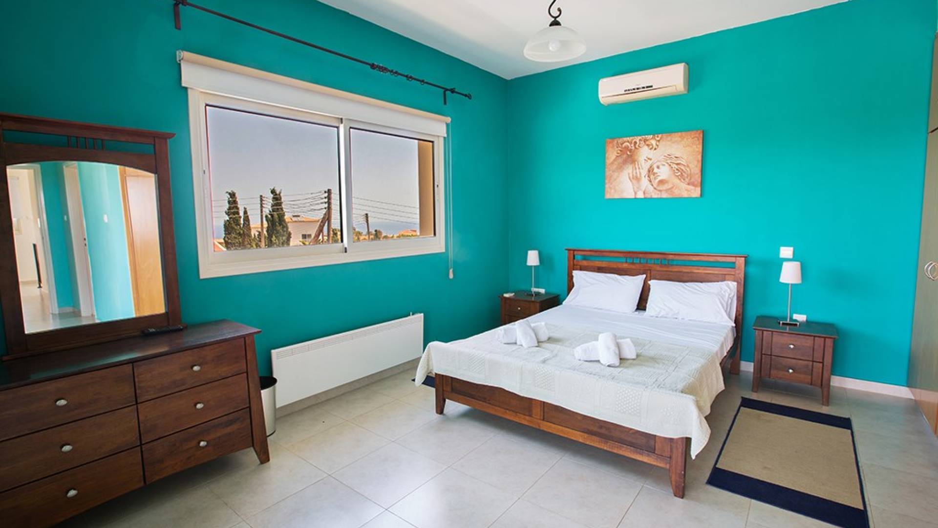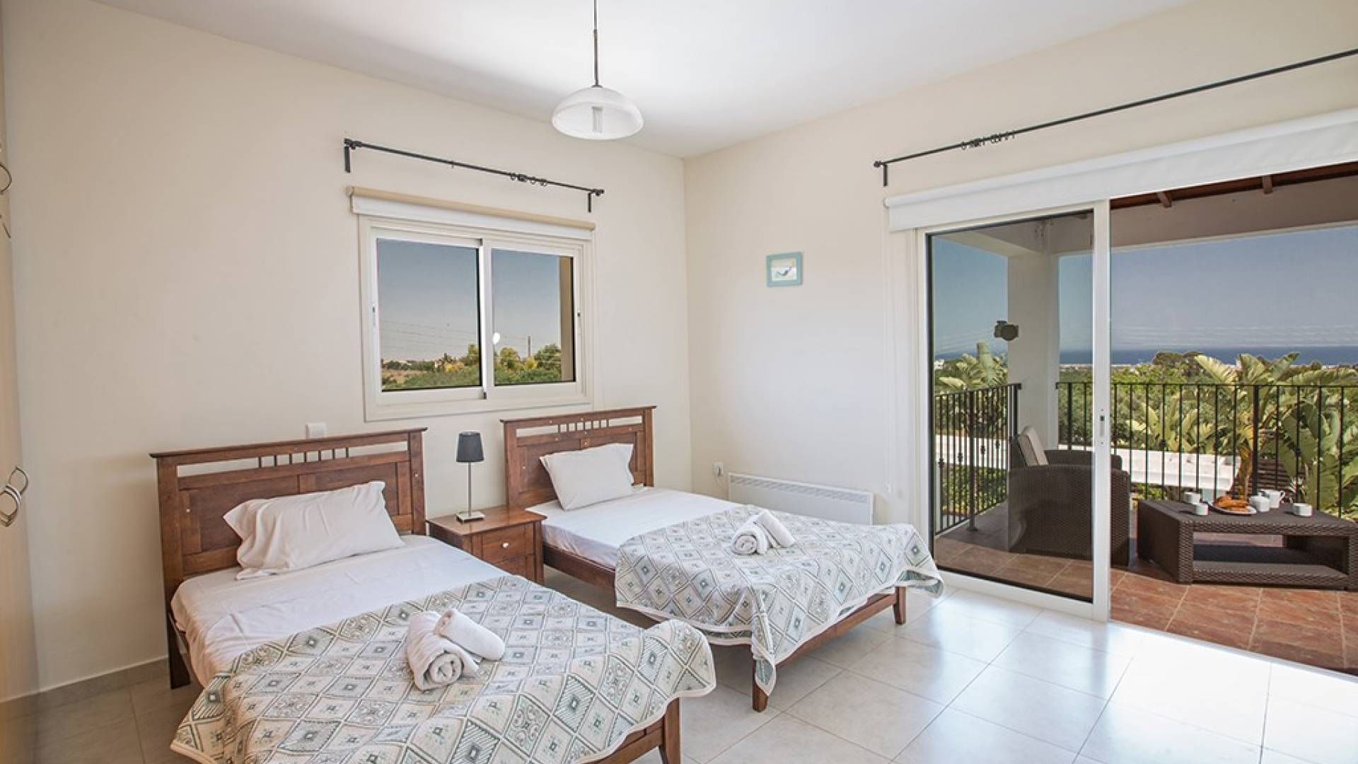 Al piano superiore, troverai le tre camere da letto e il bagno principale della famiglia con vasca, soffione doccia e W/C. La camera da letto principale ha un bagno privato con vasca, doccia e W/C. Dispone inoltre di un letto matrimoniale, di una TV ad ampio schermo e di porte finestre che conducono all'ampio balcone che dispone di una comoda area salotto e offre splendide viste sul mare. La seconda camera ha un letto matrimoniale e porte che conducono al balcone e la terza camera ha due letti singoli e porte che conducono al balcone. Tutte le camere sono dotate di armadi a muro e comodini