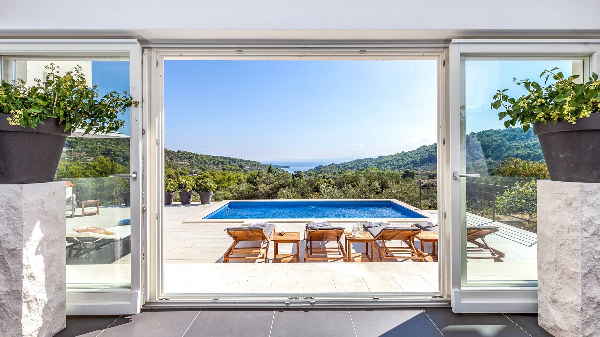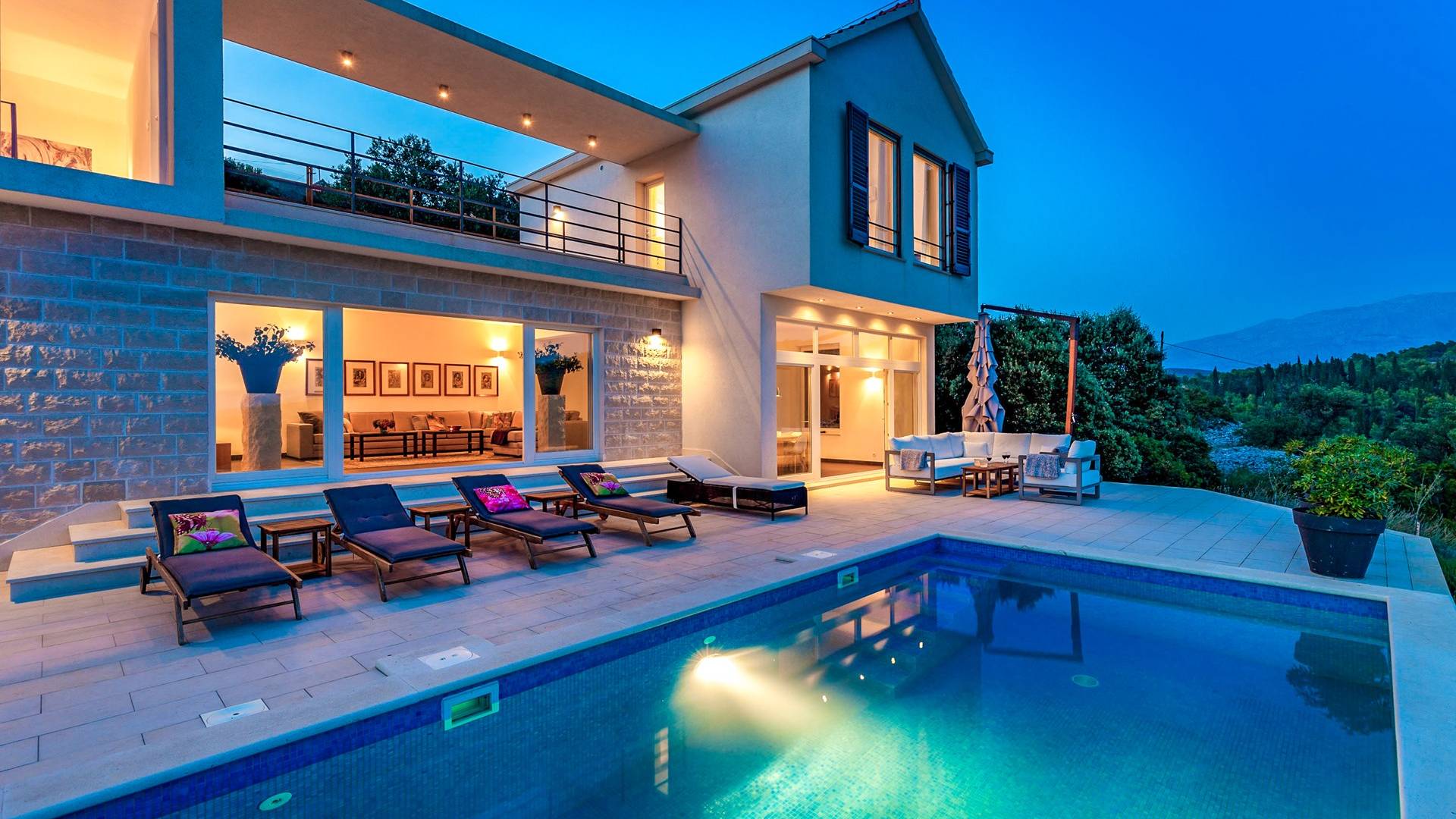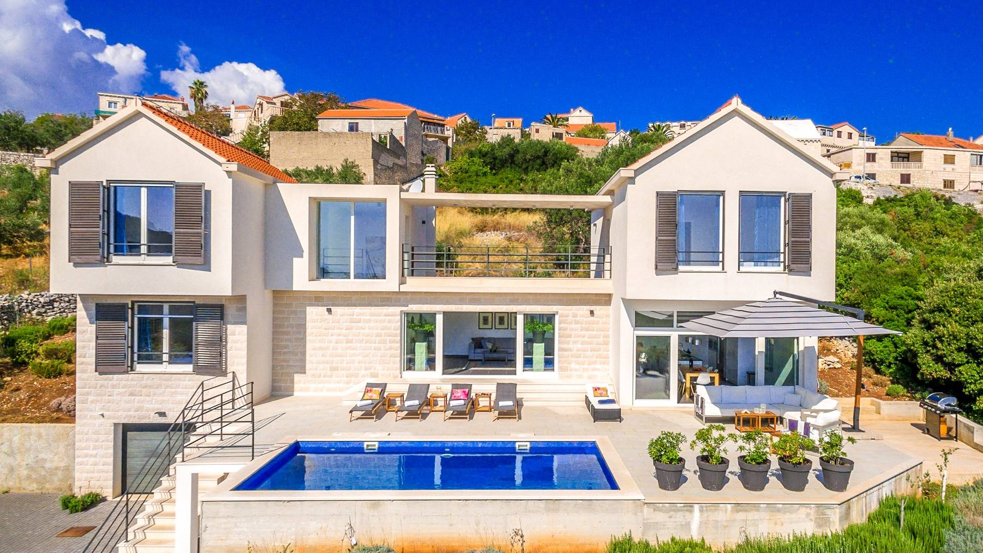 Villa Andora Brac si trova a Selca, un villaggio a un miglio di distanza dal centro, in una solitudine elevata in mezzo al verde e alle rocce. I cespugli di rosmarino piantati accanto alla piscina senza cloro le danno un buon profumo. La combinazione di pietra e vetro unisce il moderno e il tradizionale, e le due "torri" collegate a una passerella esterna coperta danno la sua impressione del castello.