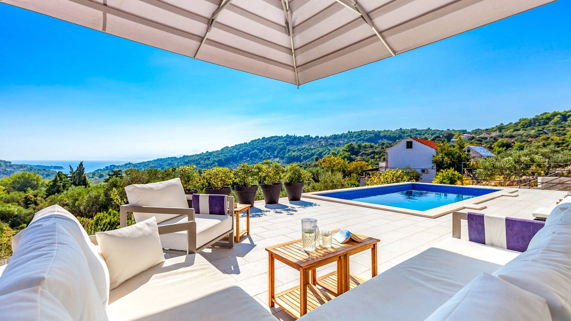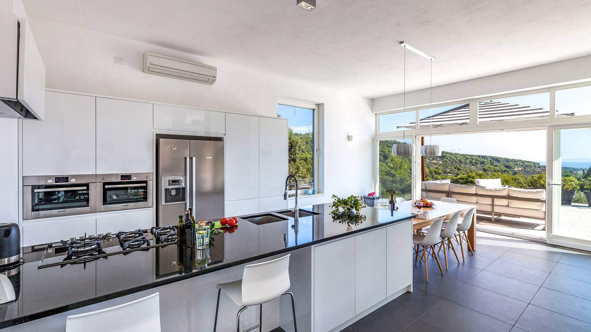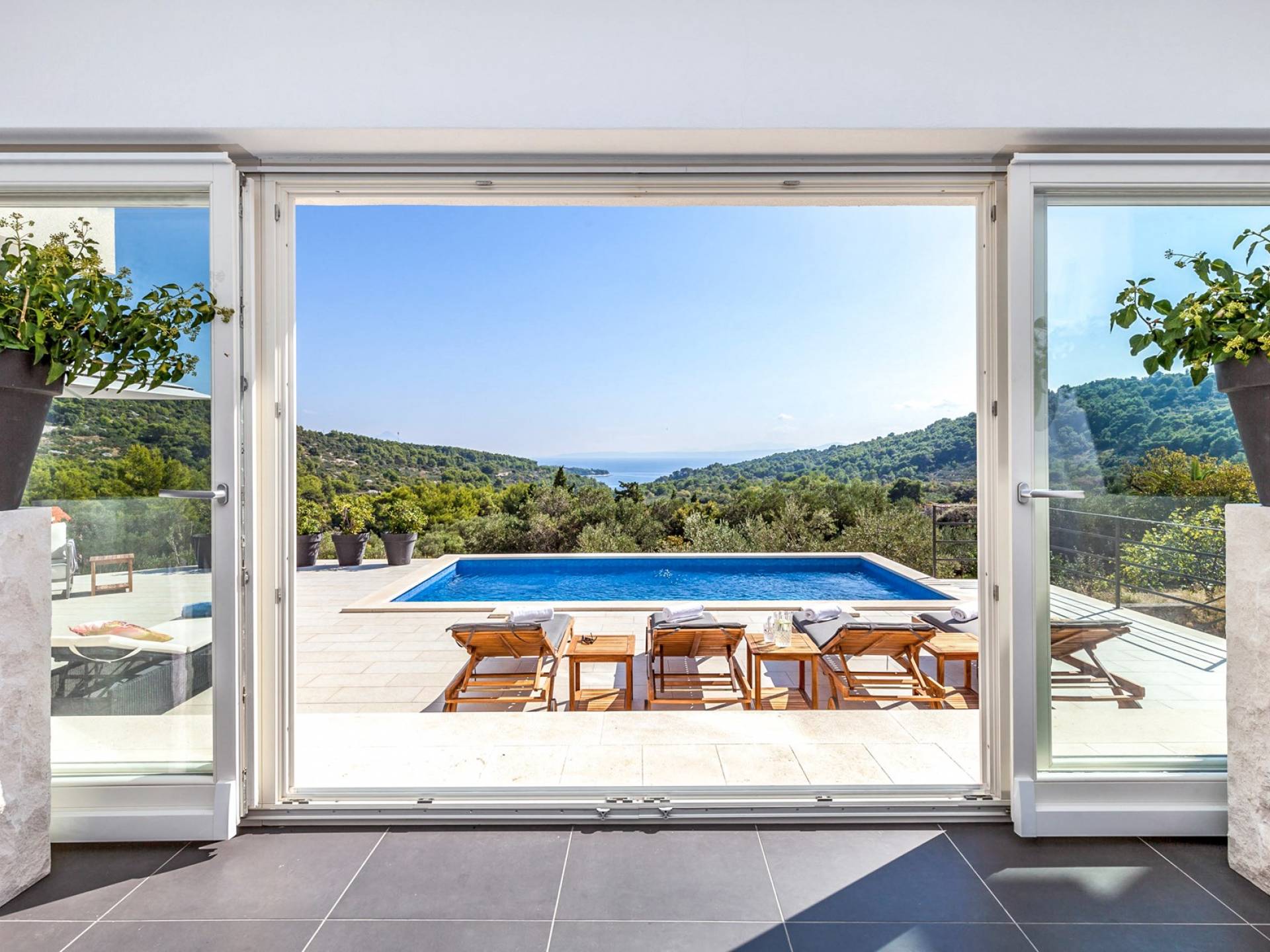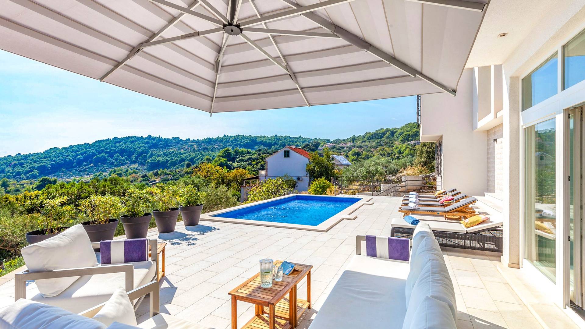 Villa Andora Brac si trova a Selca, un villaggio a un miglio di distanza dal centro, in una solitudine elevata in mezzo al verde e alle rocce. I cespugli di rosmarino piantati accanto alla piscina senza cloro le danno un buon profumo. La combinazione di pietra e vetro unisce il moderno e il tradizionale, e le due "torri" collegate a una passerella esterna coperta danno la sua impressione del castello.