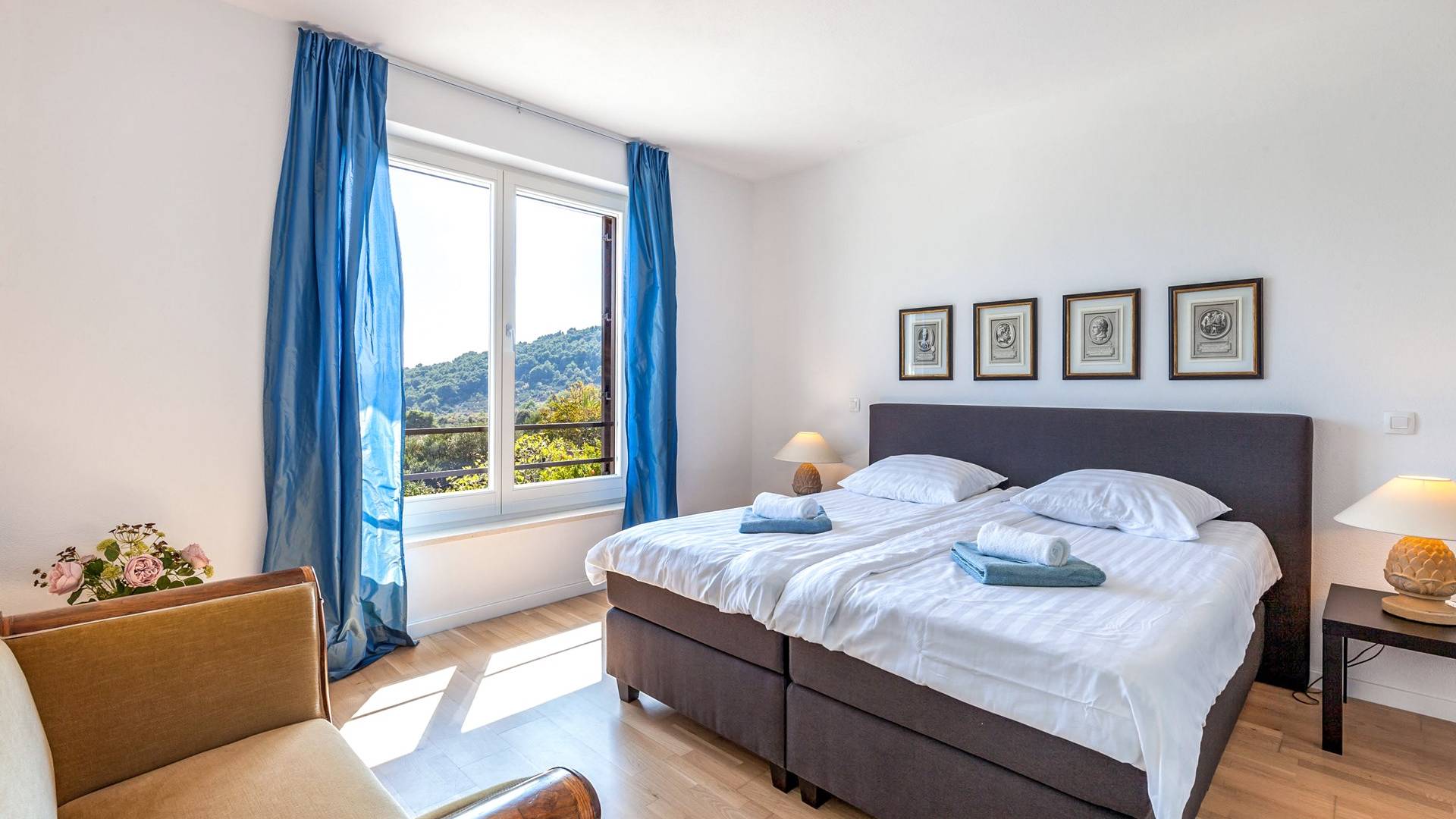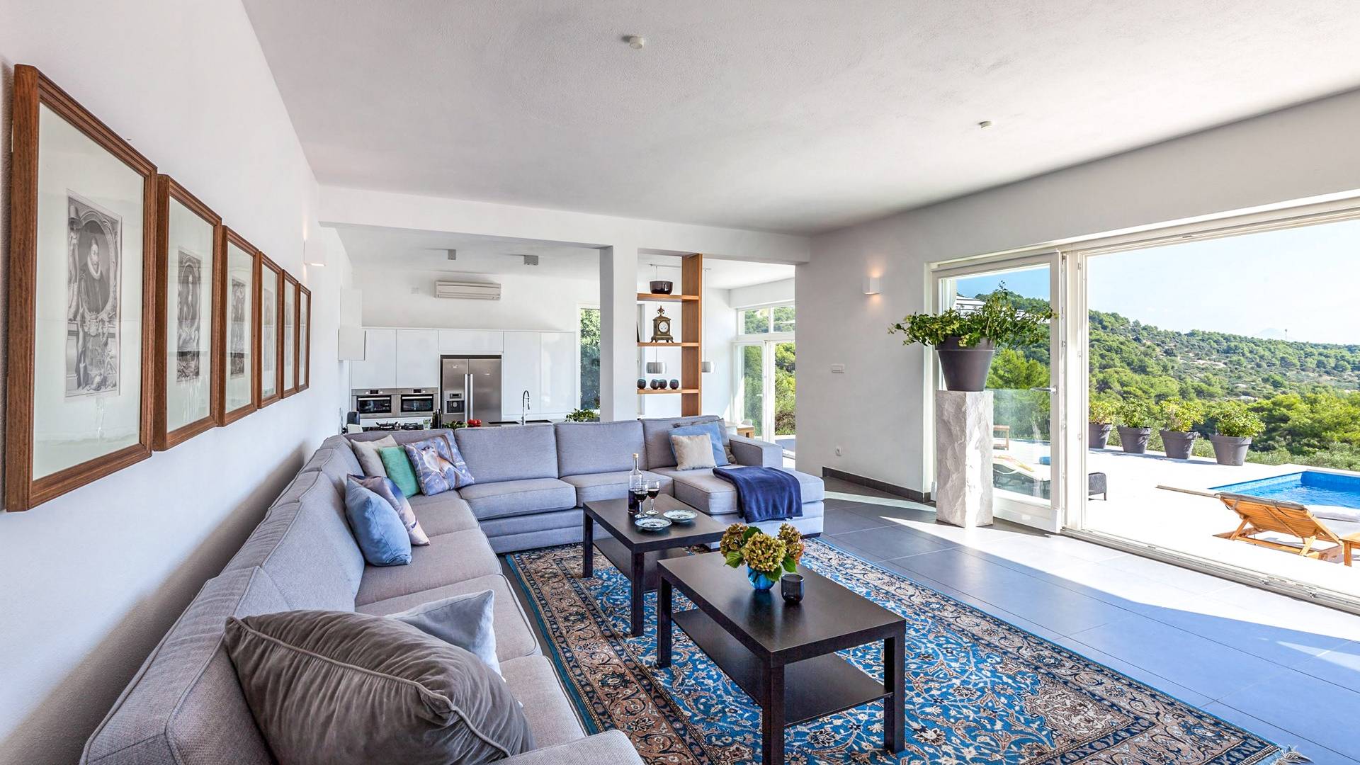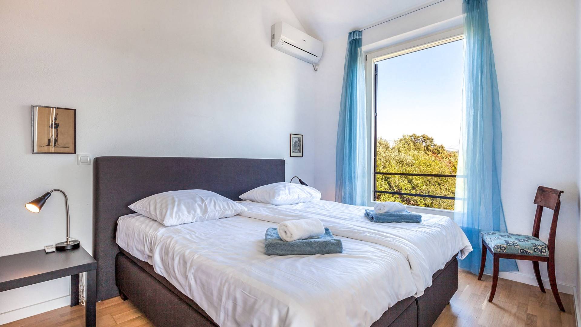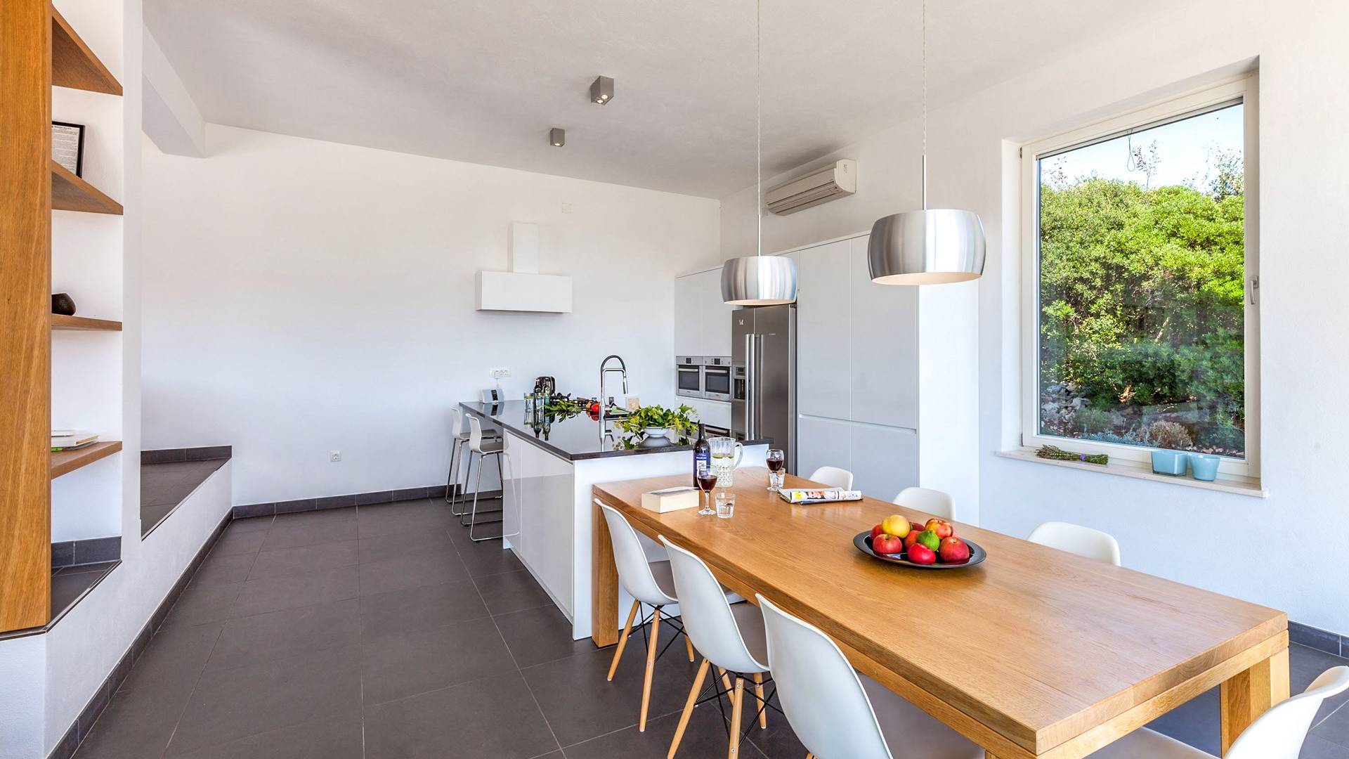 Il silenzio gli dà il titolo di luogo ideale per il riposo e la semplicità ne descrive l'interno: il soggiorno si aggiunge alla cucina, ed entrambi i lati della stanza hanno un'uscita separata sulla terrazza con piscina che offre una vista magnifica dei dintorni. Questo soggiorno all'aperto è raggiungibile direttamente da un'apposita scala. Le camere sono un po' più calde arredate con mobili antichi in legno e gli spaziosi bagni hanno una parete doccia in vetro. La villa dispone di quattro camere da letto; una camera da letto si trova al primo piano e le altre tre al secondo piano. Tutte le camere sono dotate di letti matrimoniali, dimensioni 180 x 190 cm.