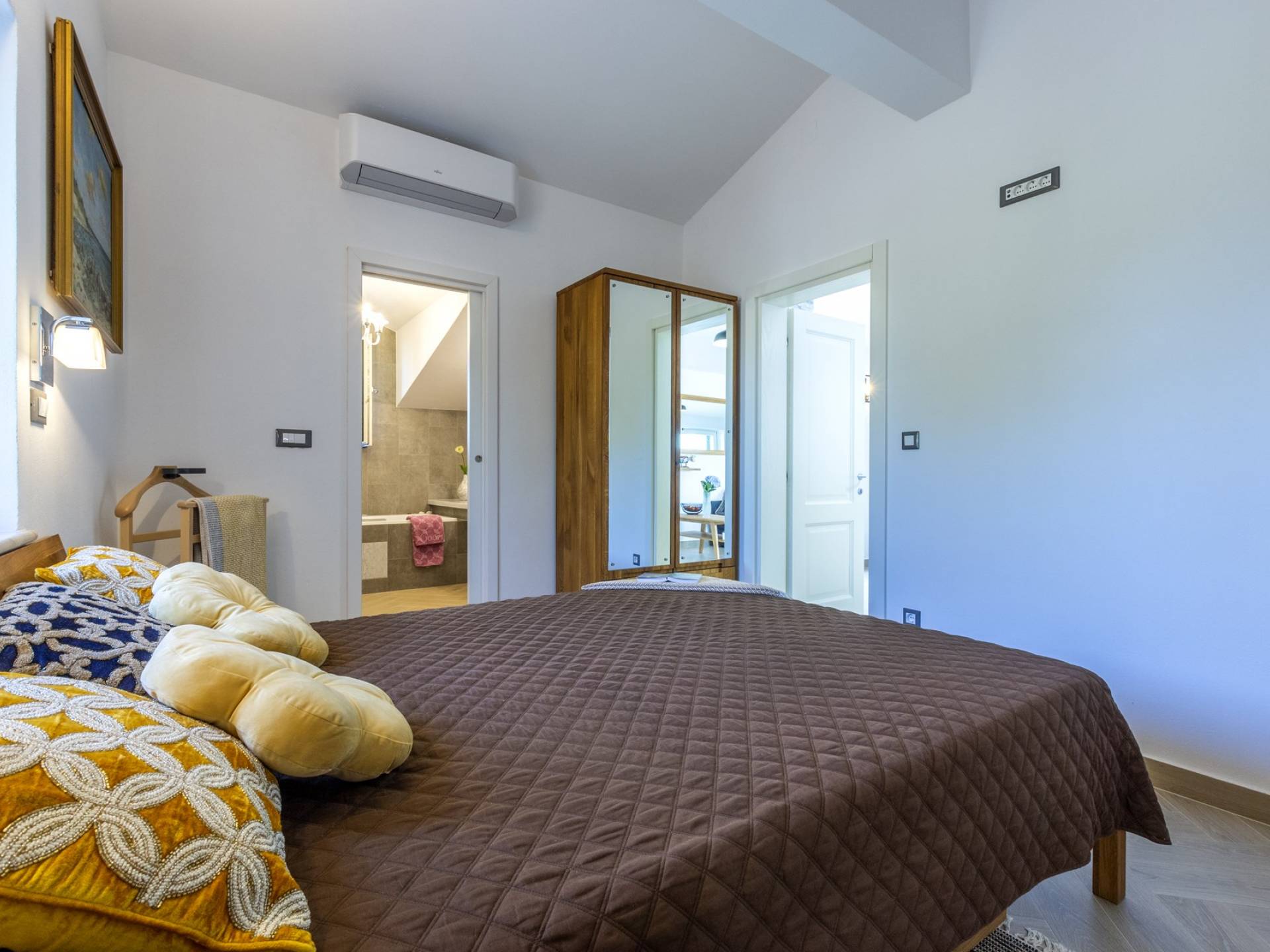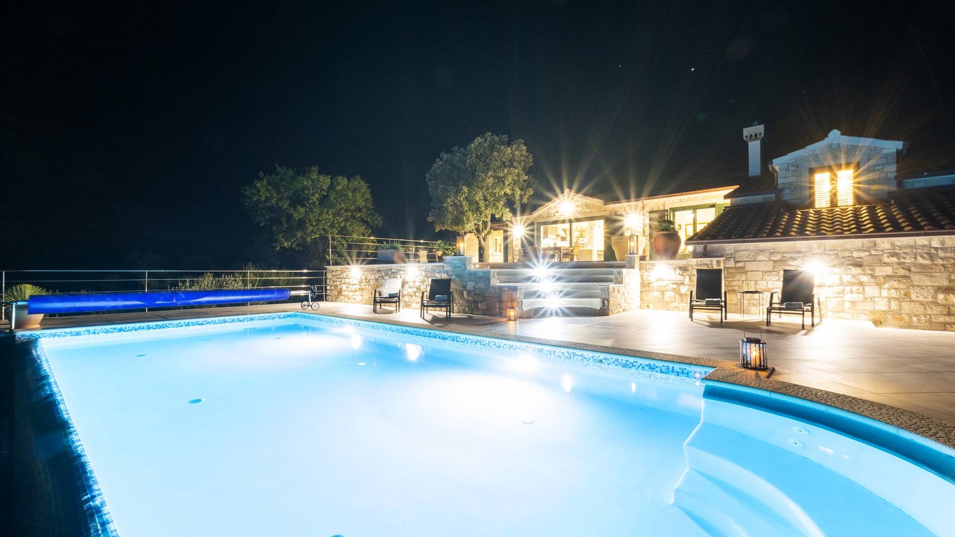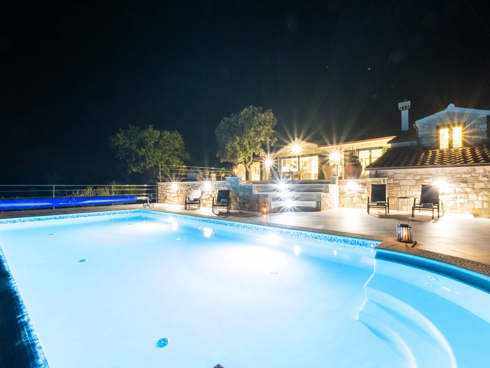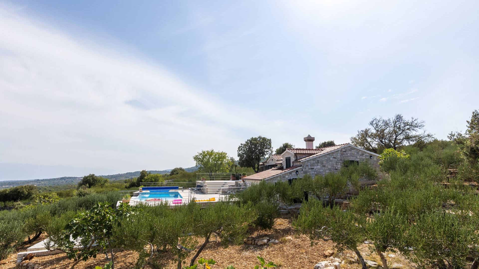 L'esterno della villa presenta una fusione equilibrata tra l'ambiente naturale e l'architettura mediterranea. La villa si trova in una posizione tranquilla e silenziosa, circondata da un bellissimo giardino paesaggistico e uliveti, quindi puoi rilassarti completamente mentre nuoti e prendi il sole in una piscina privata della villa. Per un totale edonismo, c'è una cucina estiva all'aperto con zona pranzo e salotto a tua disposizione.