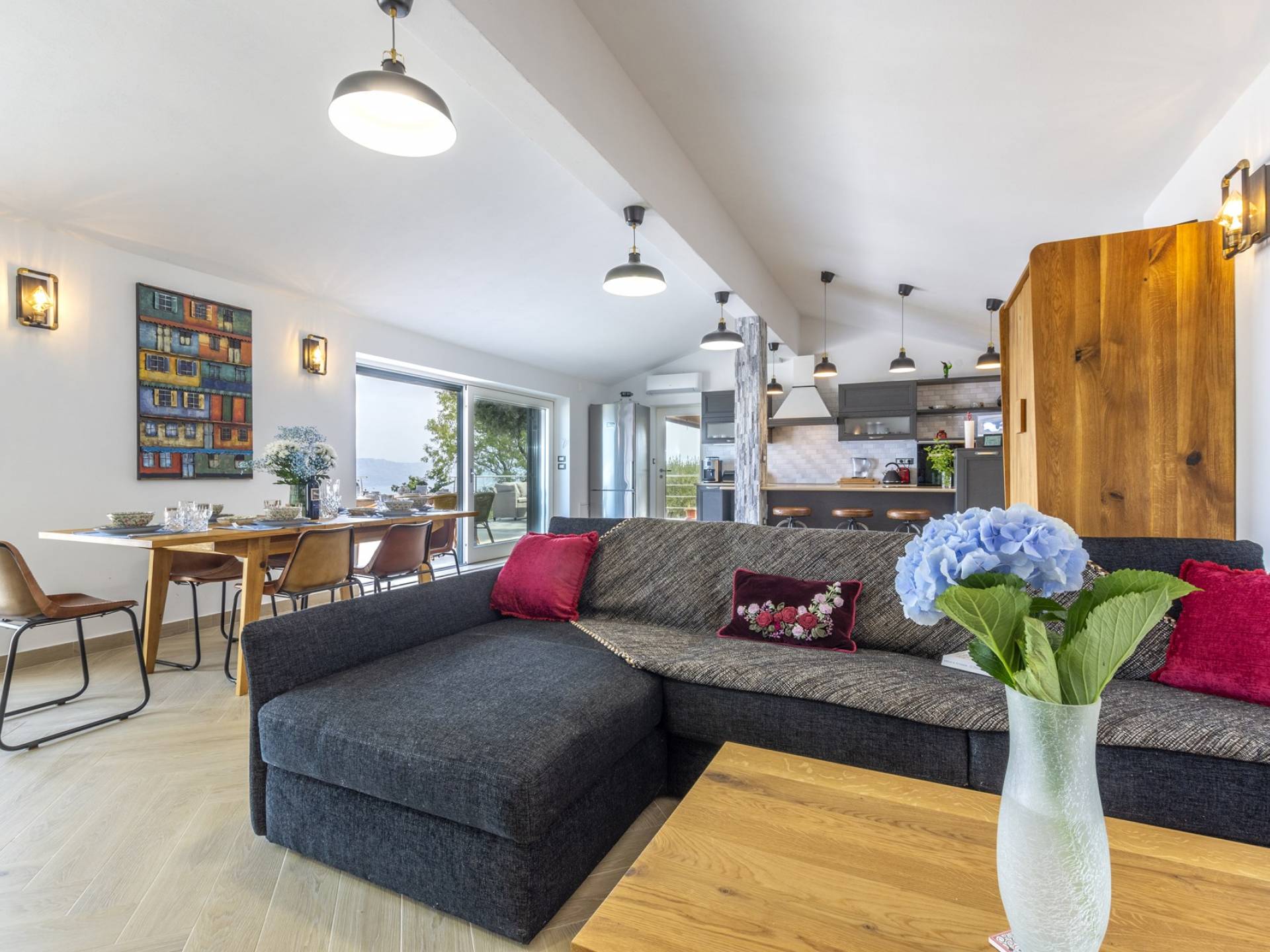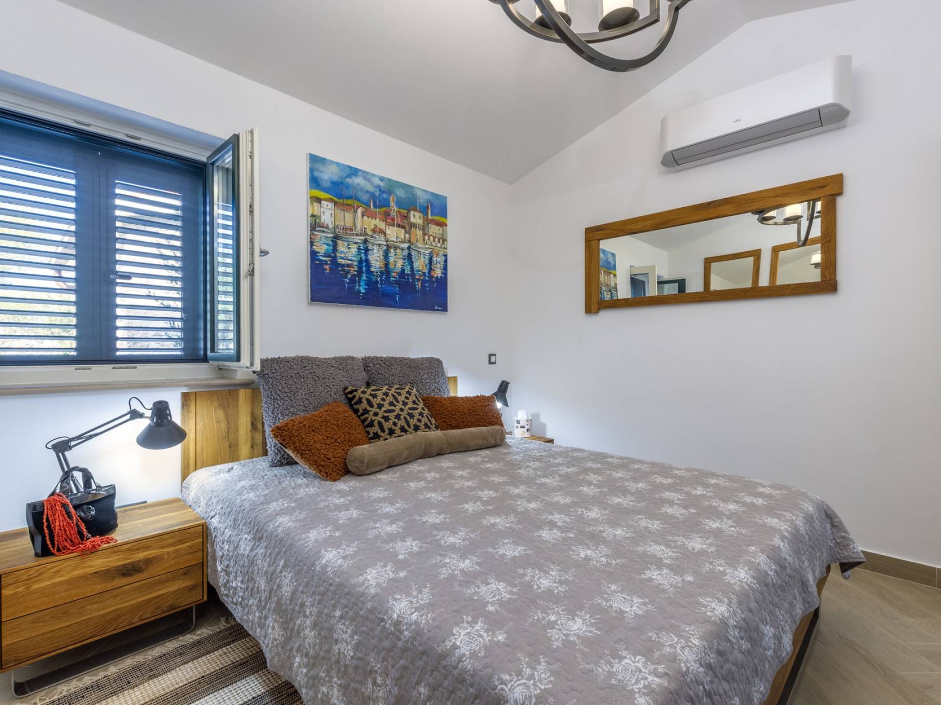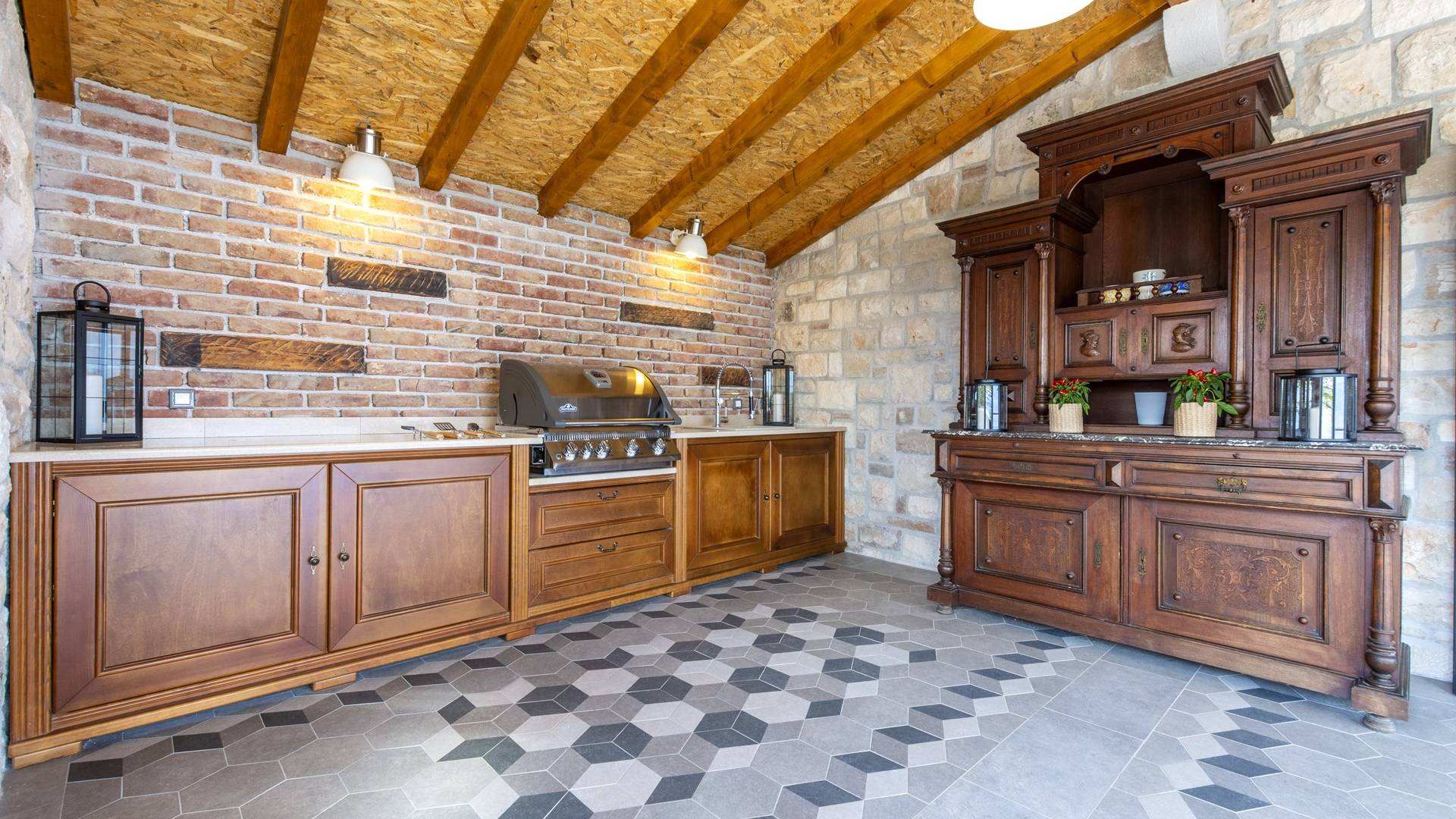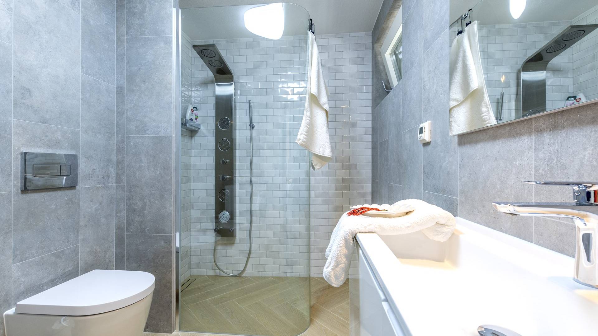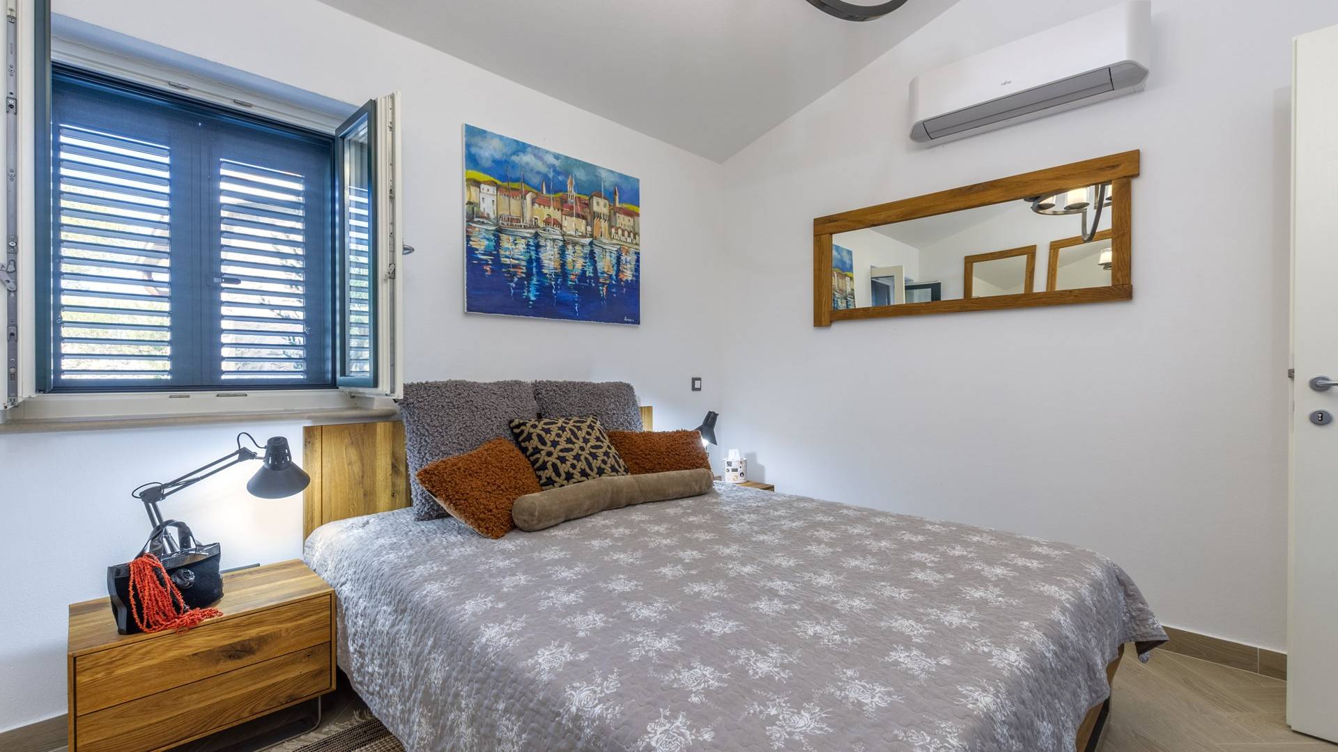 L'interno di questa affascinante villa è una perfetta miscela di lusso moderno con un tocco di elementi rustici. Questa villa a un piano comprende una cucina open space con sala da pranzo e soggiorno con vista sulla splendida natura dell'isola di Brač e sul mare. Dotata di vari elettrodomestici di alta qualità, preparare i pasti in questa cucina sarà un'esperienza gioiosa e creativa. Ci sono anche due camere matrimoniali arredate con gusto, con letti aggiuntivi e due bagni. La restante camera matrimoniale, bagno e spogliatoio si trovano al piano seminterrato con uscita su un bellissimo giardino.