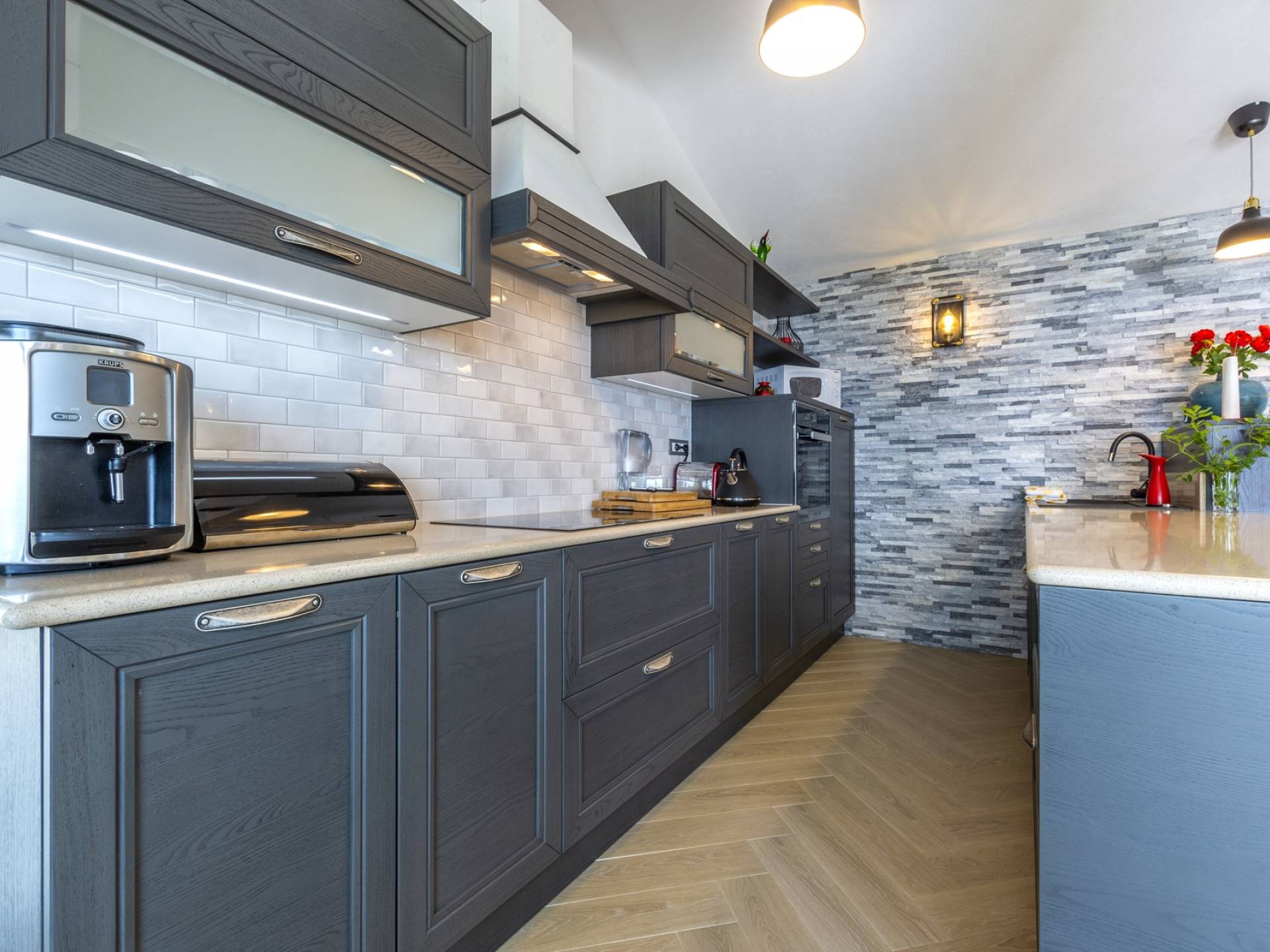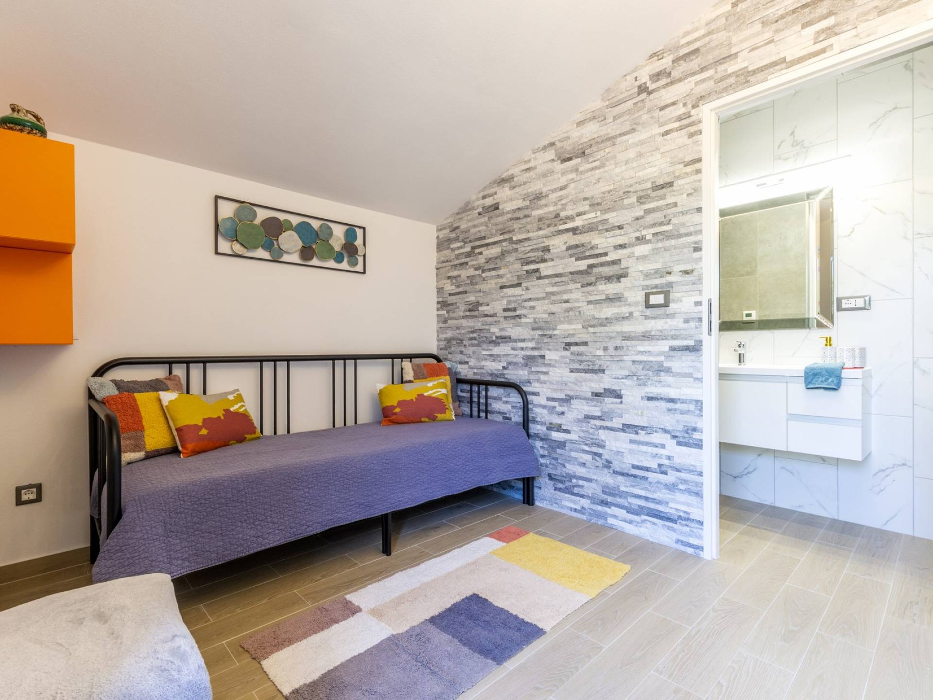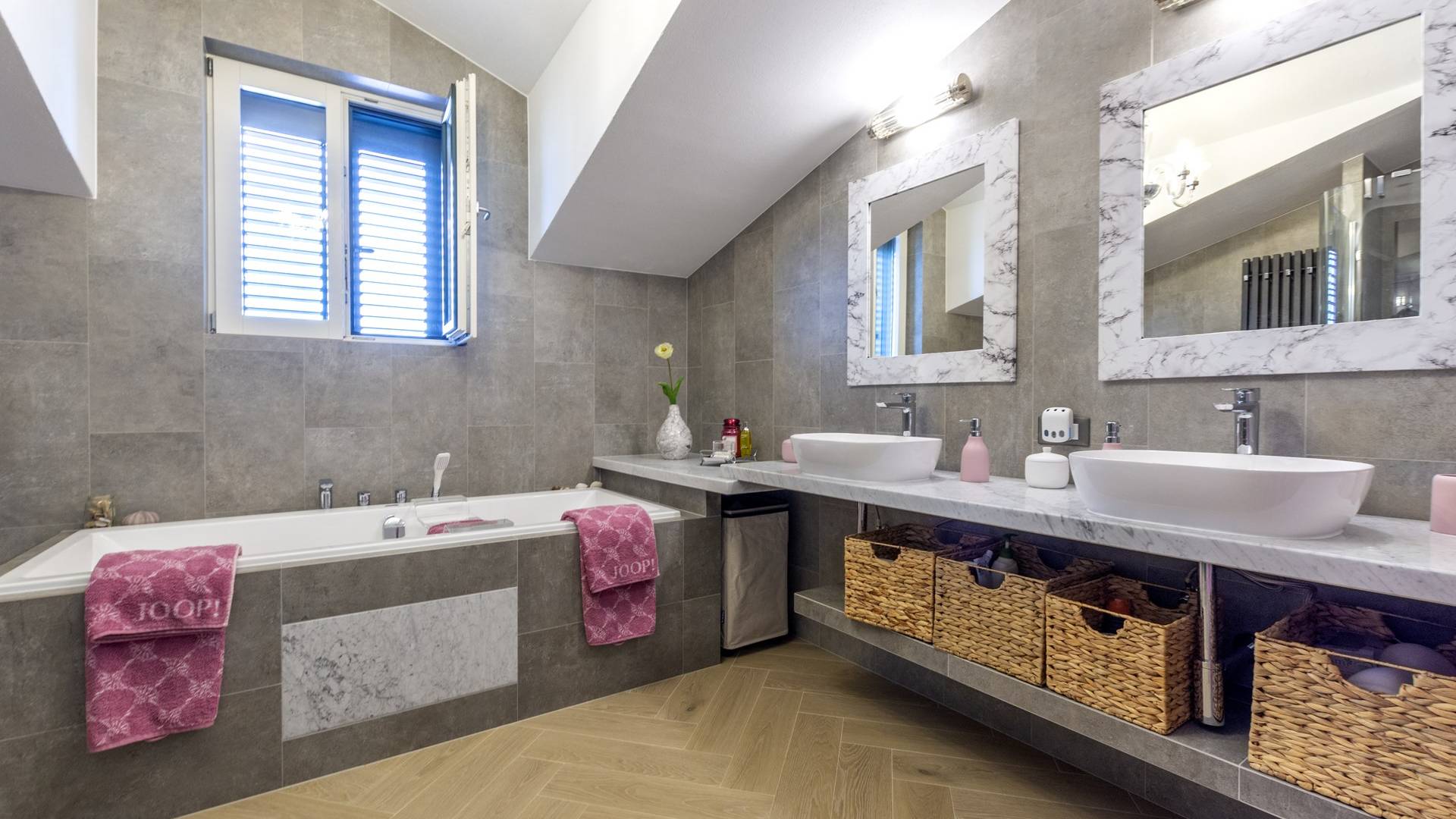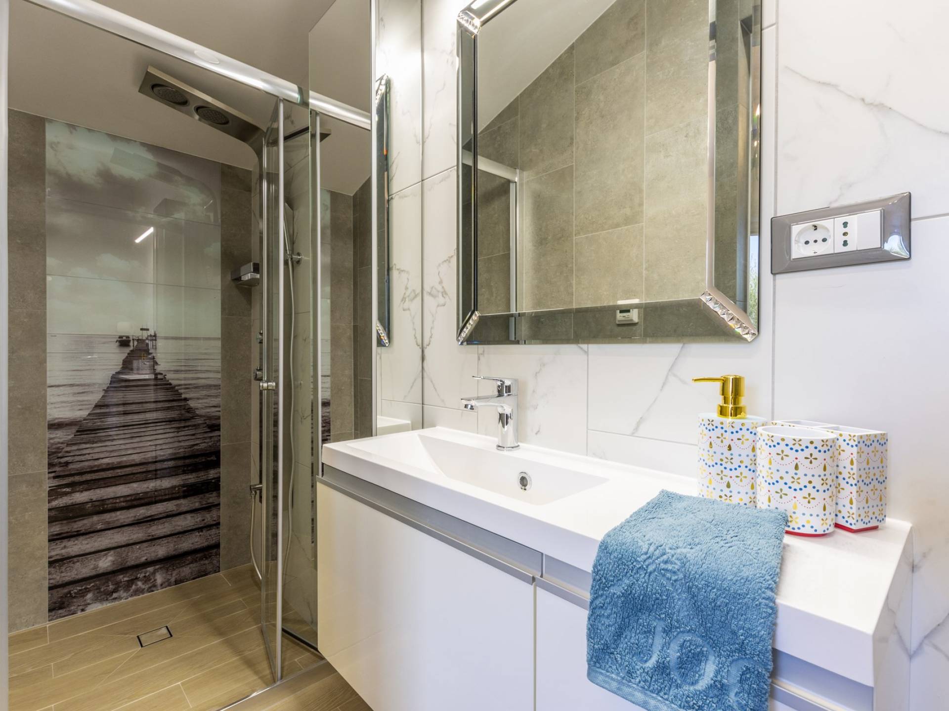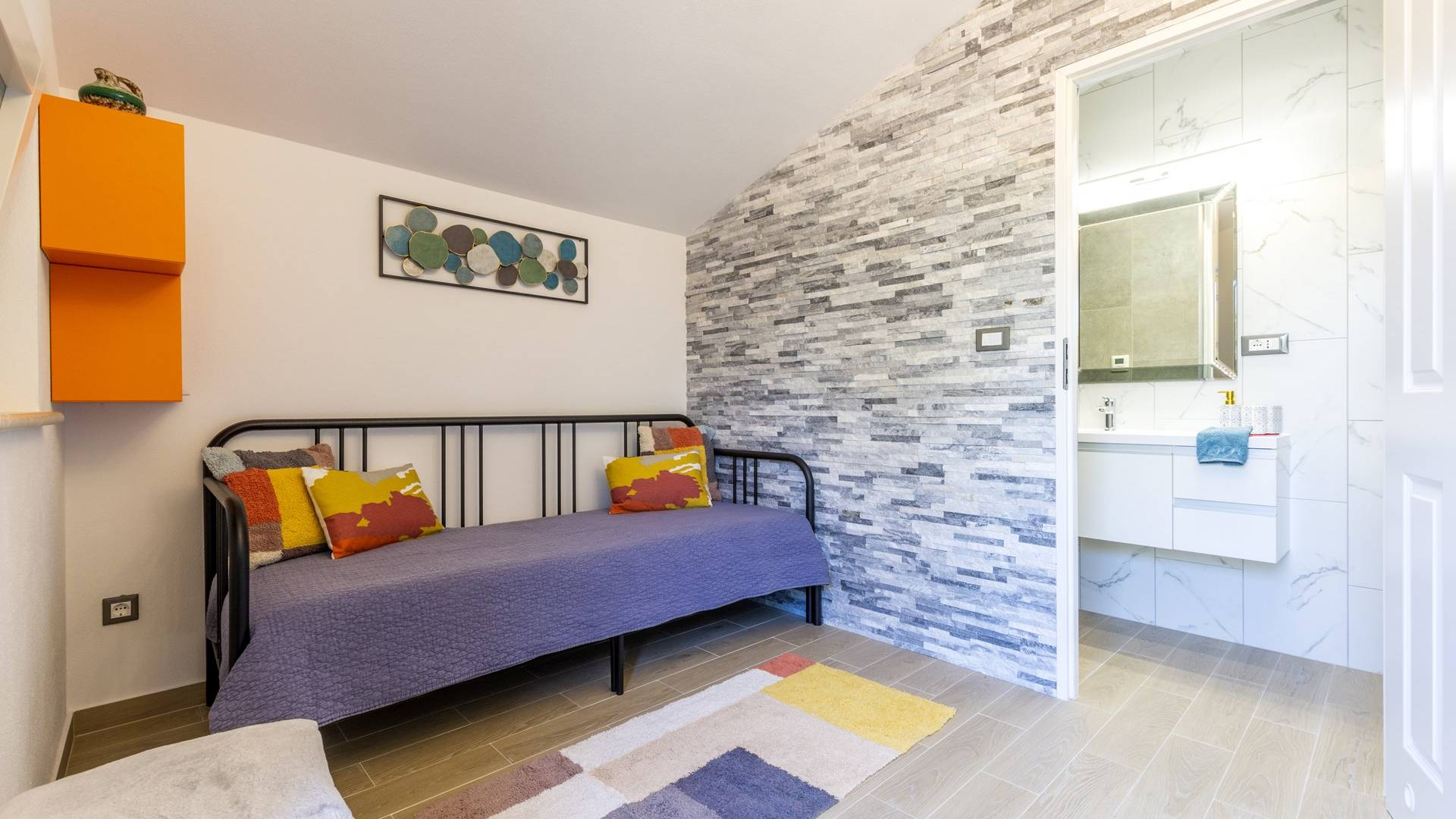 L'interno di questa affascinante villa è una perfetta miscela di lusso moderno con un tocco di elementi rustici. Questa villa a un piano comprende una cucina open space con sala da pranzo e soggiorno con vista sulla splendida natura dell'isola di Brač e sul mare. Dotata di vari elettrodomestici di alta qualità, preparare i pasti in questa cucina sarà un'esperienza gioiosa e creativa. Ci sono anche due camere matrimoniali arredate con gusto, con letti aggiuntivi e due bagni. La restante camera matrimoniale, bagno e spogliatoio si trovano al piano seminterrato con uscita su un bellissimo giardino.