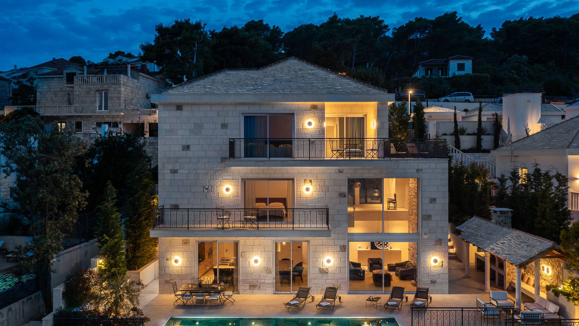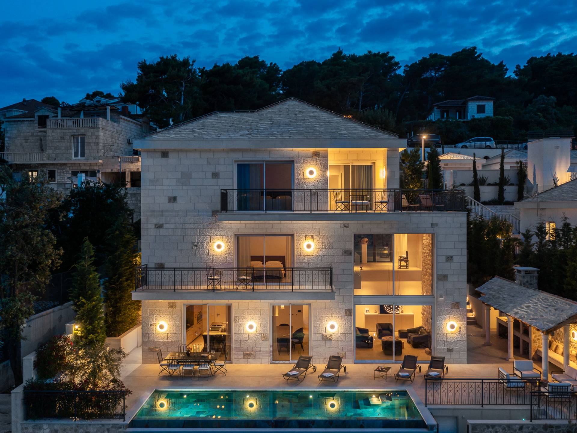 Benvenuti a Villa StarA , un'oasi sul lungomare appena costruita (2023) sull'isola pittoresca di Brac, Croatia . Fondando l'architettura tradizionale in pietra con eleganza contemporanea, questa villa di 420m² offre un soggiorno indimenticabile fino a Otto ospiti .