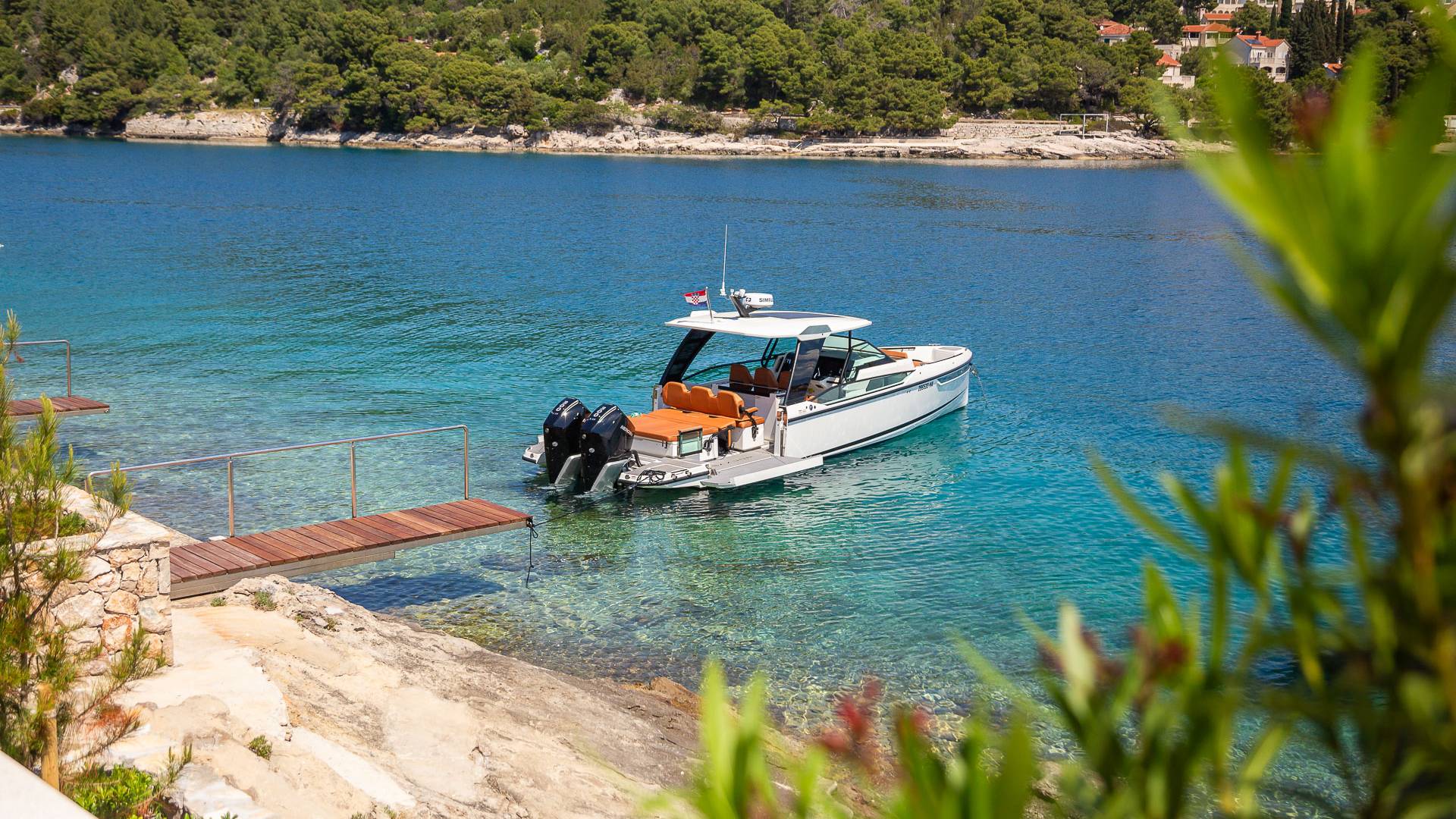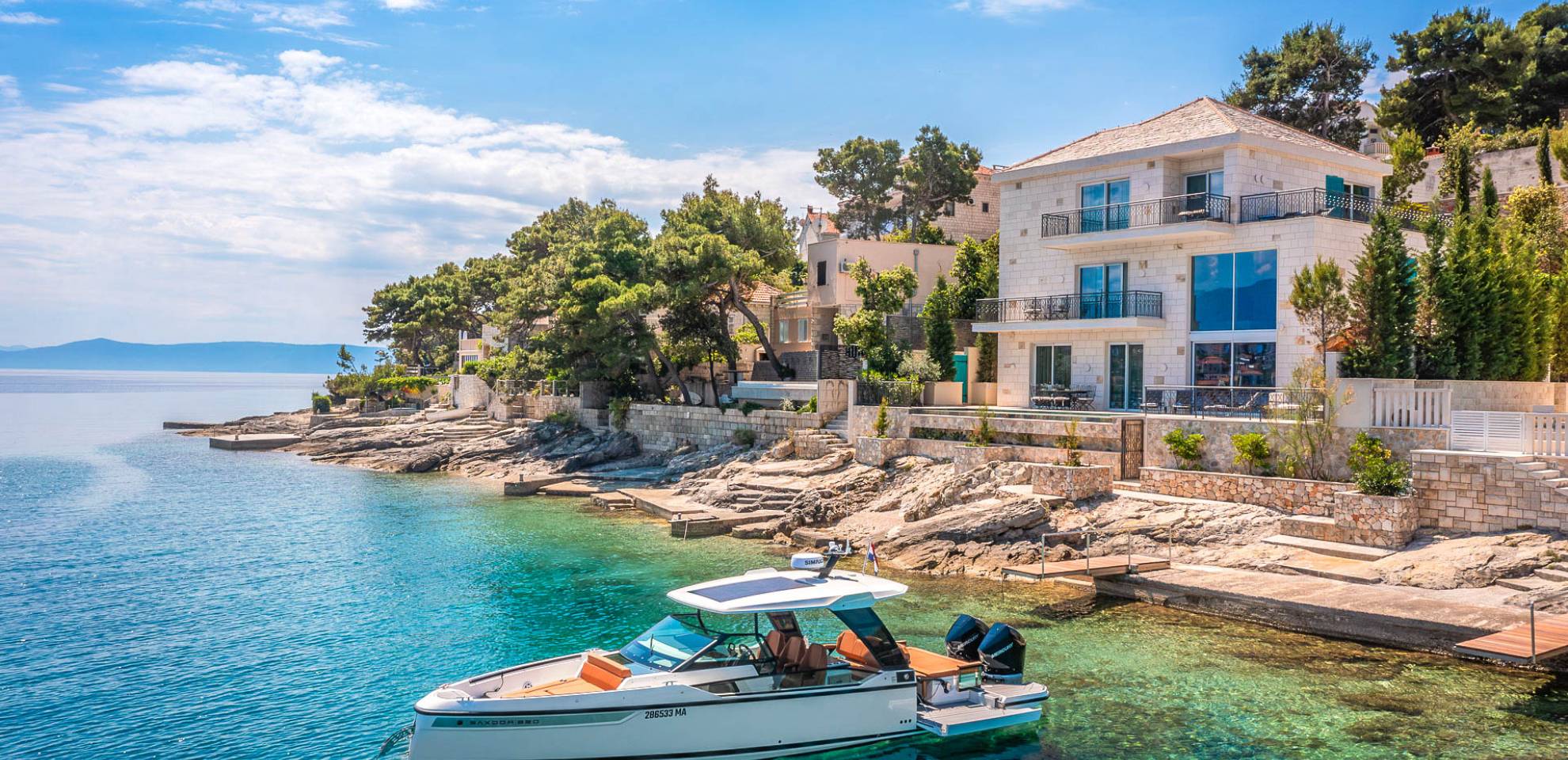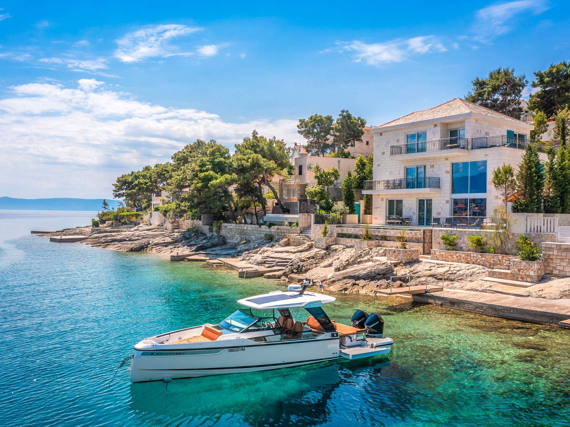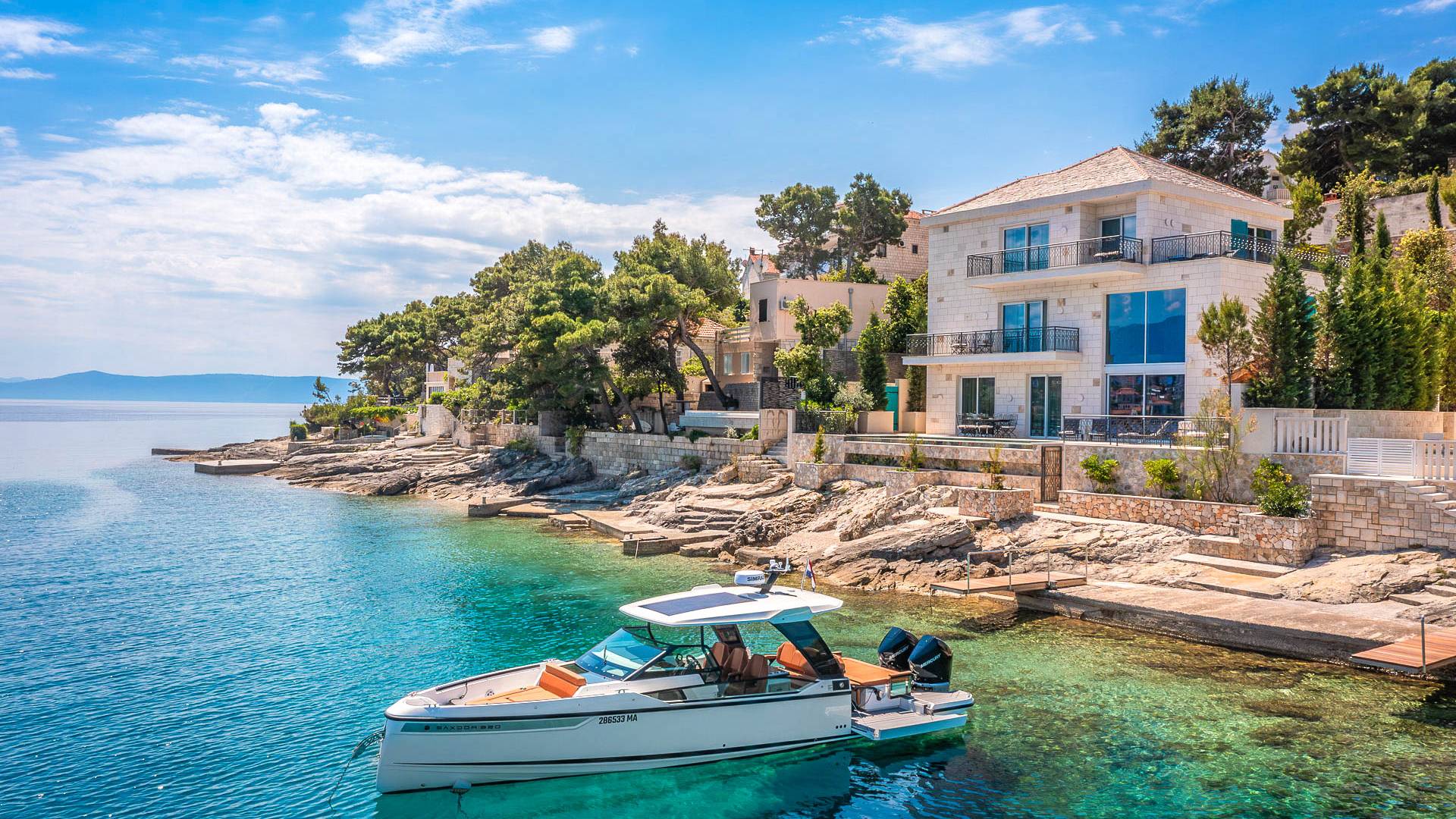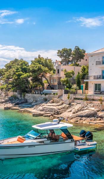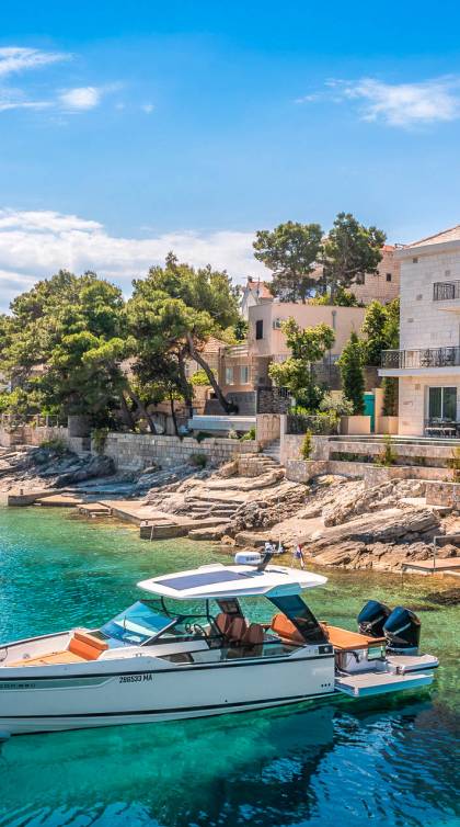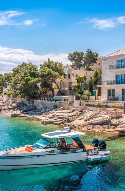 La tranquilla isola di Brac si trova direttamente di fronte alla città portuale sulla terraferma e alla metropoli di Spalato in Dalmazia. L'isola di 395 chilometri quadrati è la terza più grande dell'Adriatico ei suoi circa 14.000 abitanti sono impegnati principalmente con il turismo, la coltivazione di olive e vino, nonché l'estrazione di calcare di alta qualità. Testimonianza della sua qualità è che la pietra calcarea bianca di Brac è stata utilizzata tra le altre cose per il Palazzo di Diocleziano a Spalato, la Casa Bianca a Washington, la Porta di Brandeburgo a Berlino e per la Nuova Hofburg a Vienna.