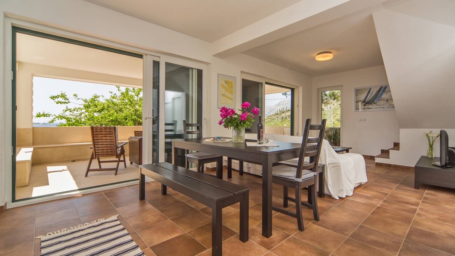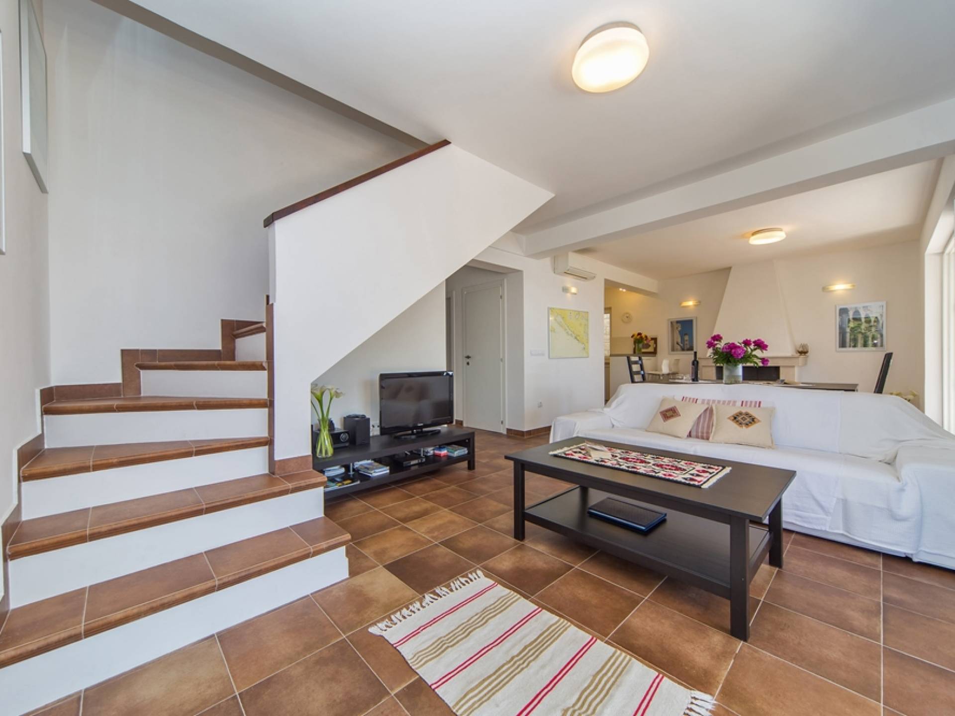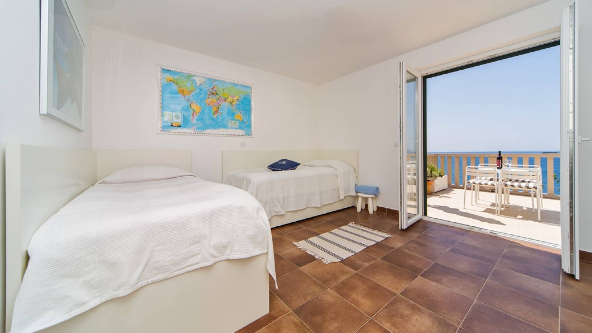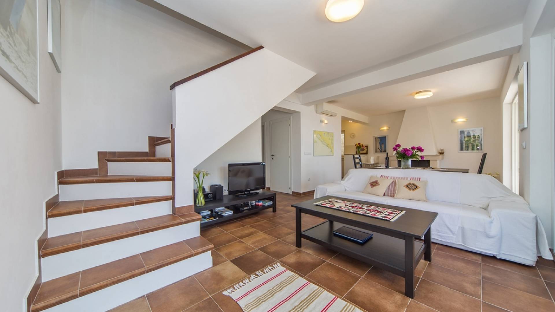 Il primo piano è composto da 3 camere da letto (una con letto matrimoniale e due con letti singoli, una delle quali offre anche due letti estraibili extra). Ci sono anche 2 bagni uno con doccia e l'altro con vasca full size. La terrazza antistante è arredata con comodi mobili da esterno e ombrelloni. La mansarda è stata mantenuta come un ampio open space con un letto matrimoniale da un lato e una zona giorno con un divano letto dall'altro. Il divano letto può essere convertito in un letto queen size.