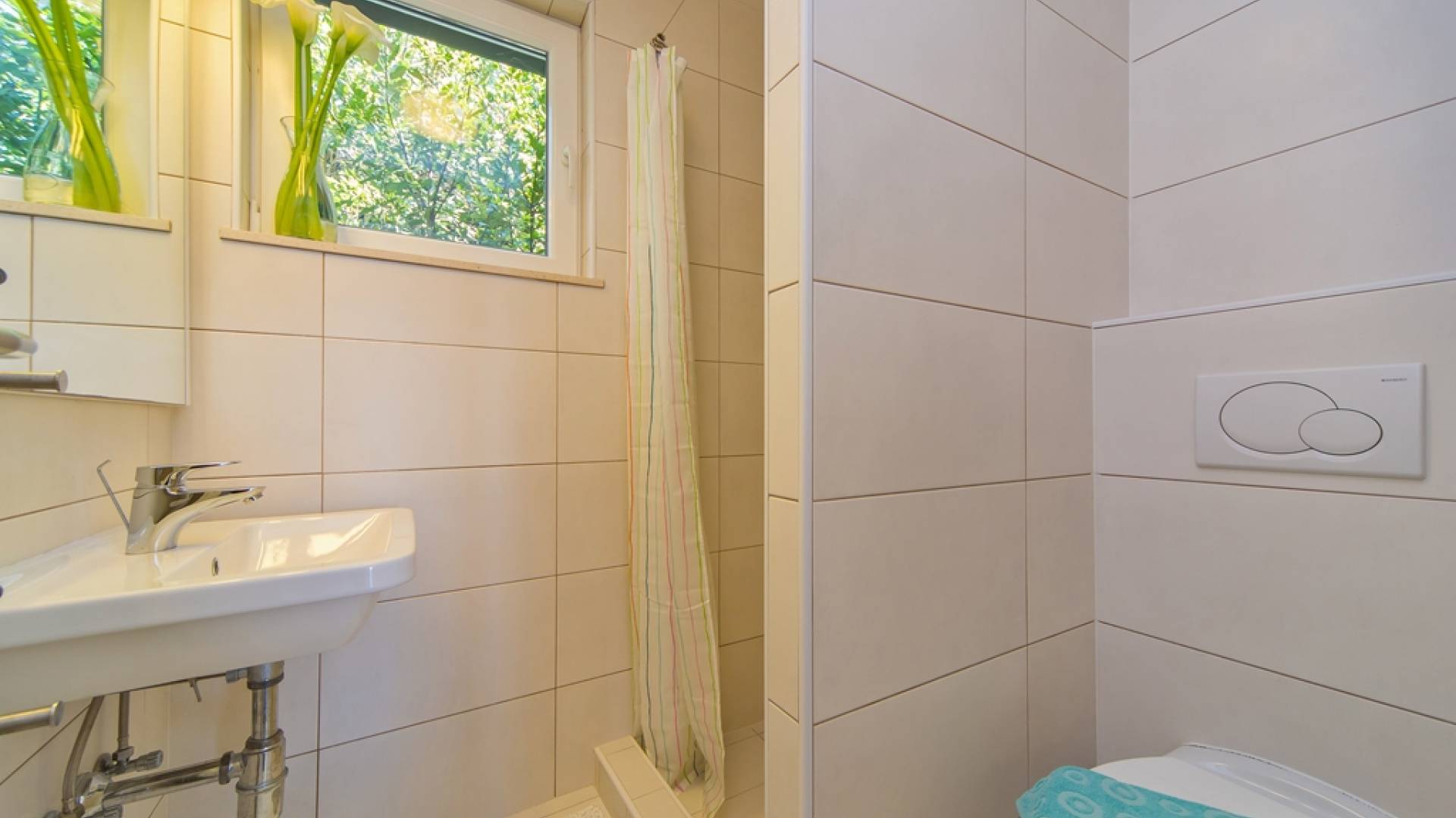 Il piano terra offre un soggiorno/sala da pranzo molto spazioso con una cucina di prima qualità dotata di tutti gli elettrodomestici. Una camera con un letto singolo (più un letto estraibile) si trova di fronte ad un bagno e ad una lavanderia separata. Una grande terrazza coperta arredata con mobili da esterno (tavolo, sedie e chaise-longue) offre comfort all'ombra.