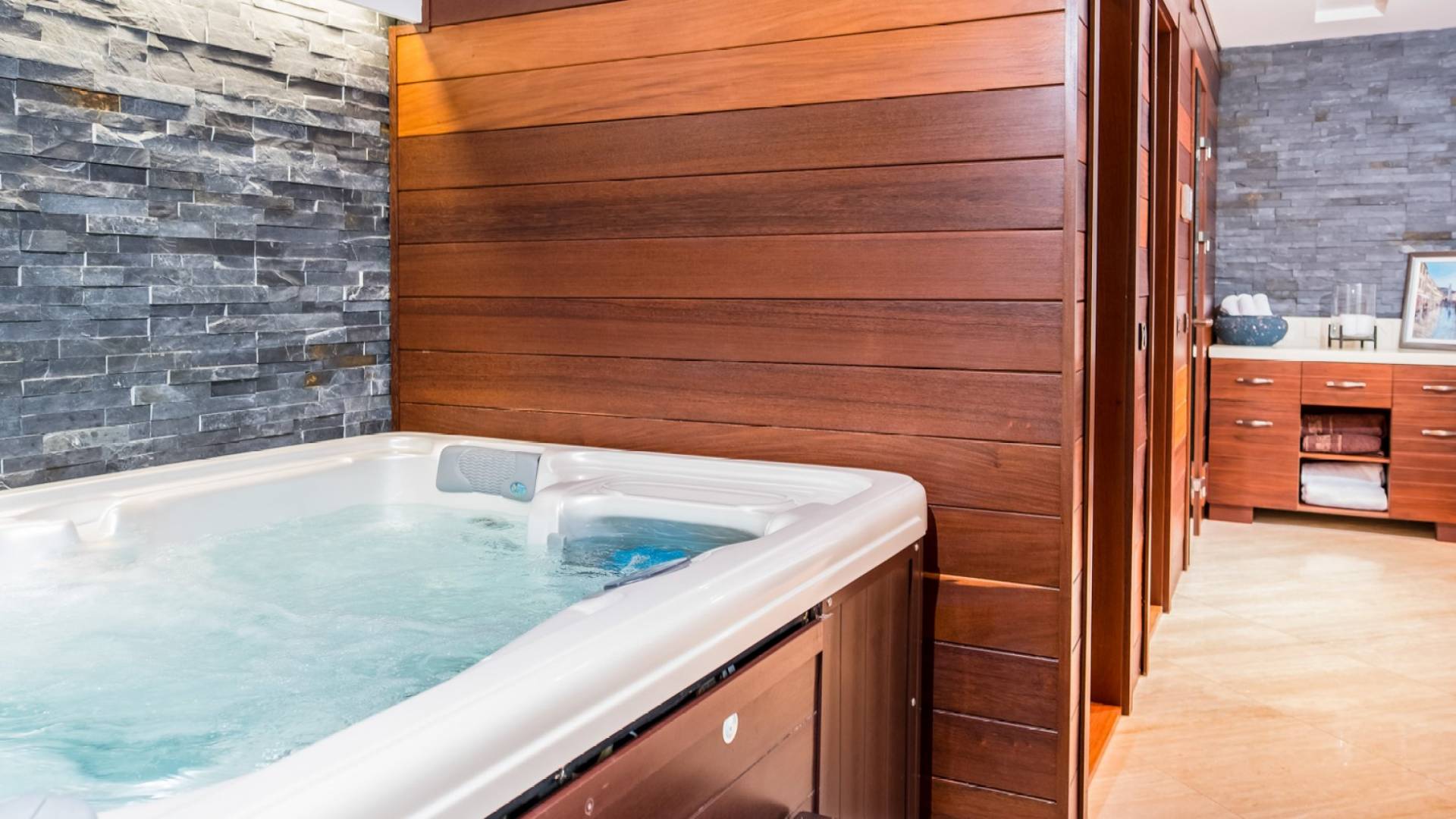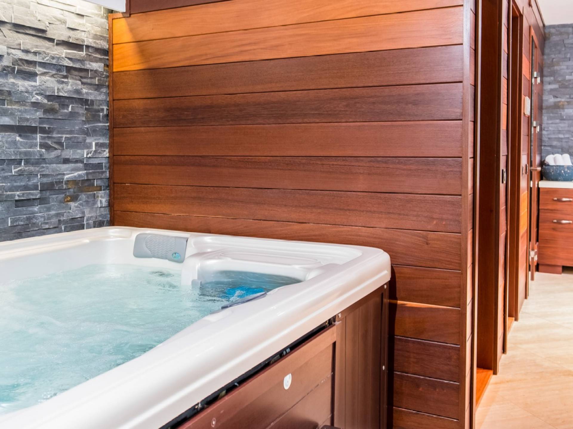 Colore blu, sole e lusso, niente può battere questa combinazione. Cos'altro c'è da chiedere per le tue vacanze? Concediti una piscina privata riscaldata nell'intimità della tua villa, sia interna che esterna. L'acqua è curativa e terapeutica e laverà…