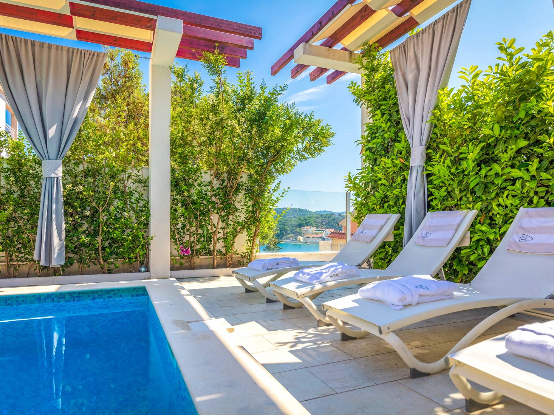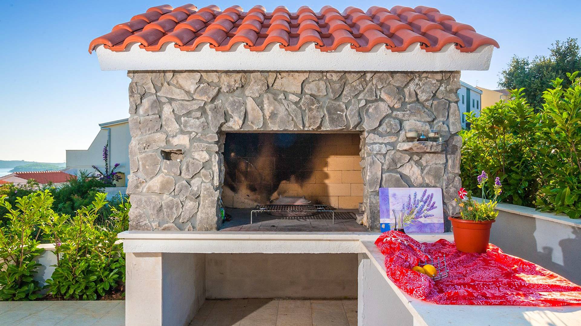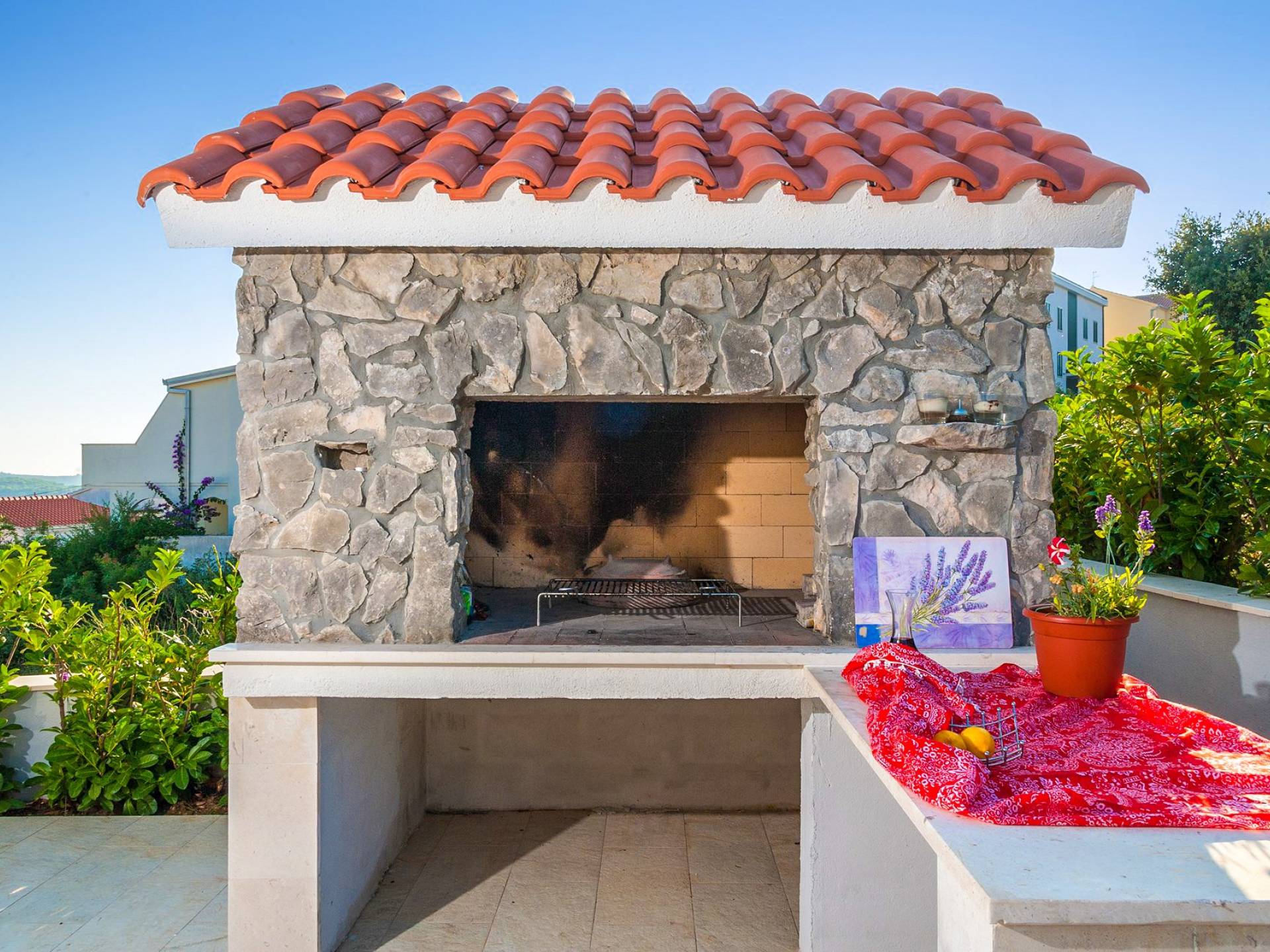 L'area della terrazza esterna è un ampio spazio aperto dove è possibile rilassarsi e godersi gli splendidi dintorni croati. La grande piscina è circondata da un ampio spazio per prendere il sole e da uno spazio per sedersi e godersi i pasti all'aperto. C'è un tavolo da pranzo all'aperto e un fornello in pietra dove si può davvero cenare all'aperto.
