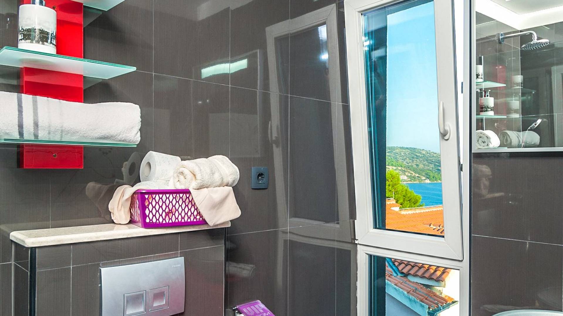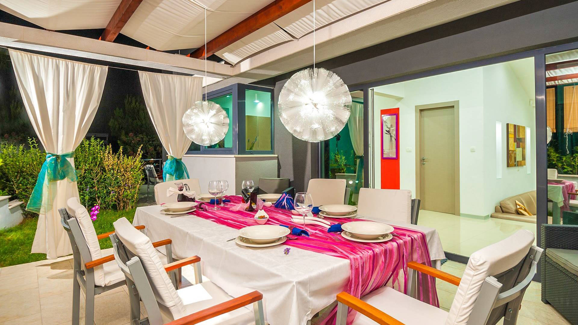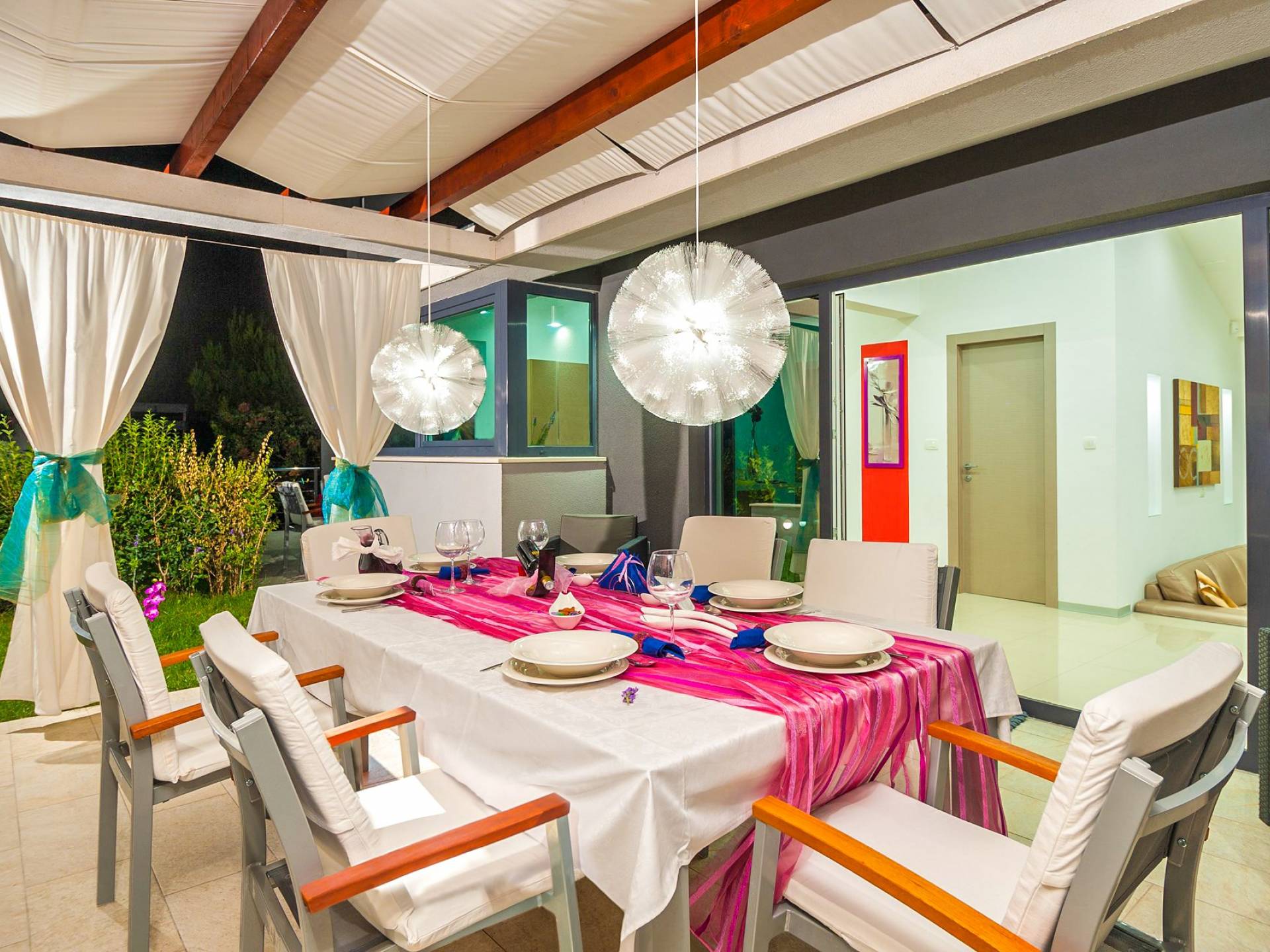 L'area della terrazza esterna è un ampio spazio aperto dove è possibile rilassarsi e godersi gli splendidi dintorni croati. La grande piscina è circondata da un ampio spazio per prendere il sole e da uno spazio per sedersi e godersi i pasti all'aperto. C'è un tavolo da pranzo all'aperto e un fornello in pietra dove si può davvero cenare all'aperto.