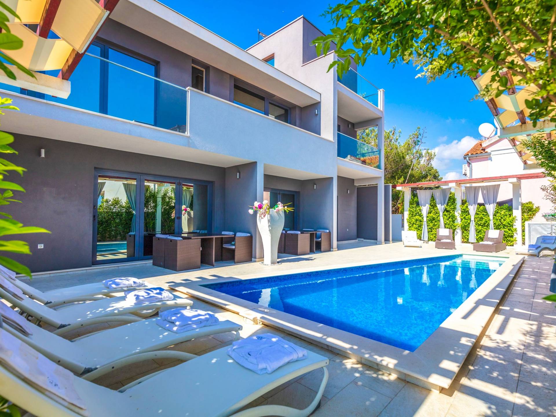 Villa Martinis è un edificio visivamente sbalorditivo con interni ancora migliori. L'interno è decorato con mobili moderni ed eleganti, opere d'arte uniche e temi decorativi che possono essere visti in tutta la villa per il tuo divertimento e abbraccio. La villa stessa è divisa in quattro appartamenti ma viene affittata nel suo complesso, il che consente a 15 persone di adattarsi comodamente in questo ampio spazio.