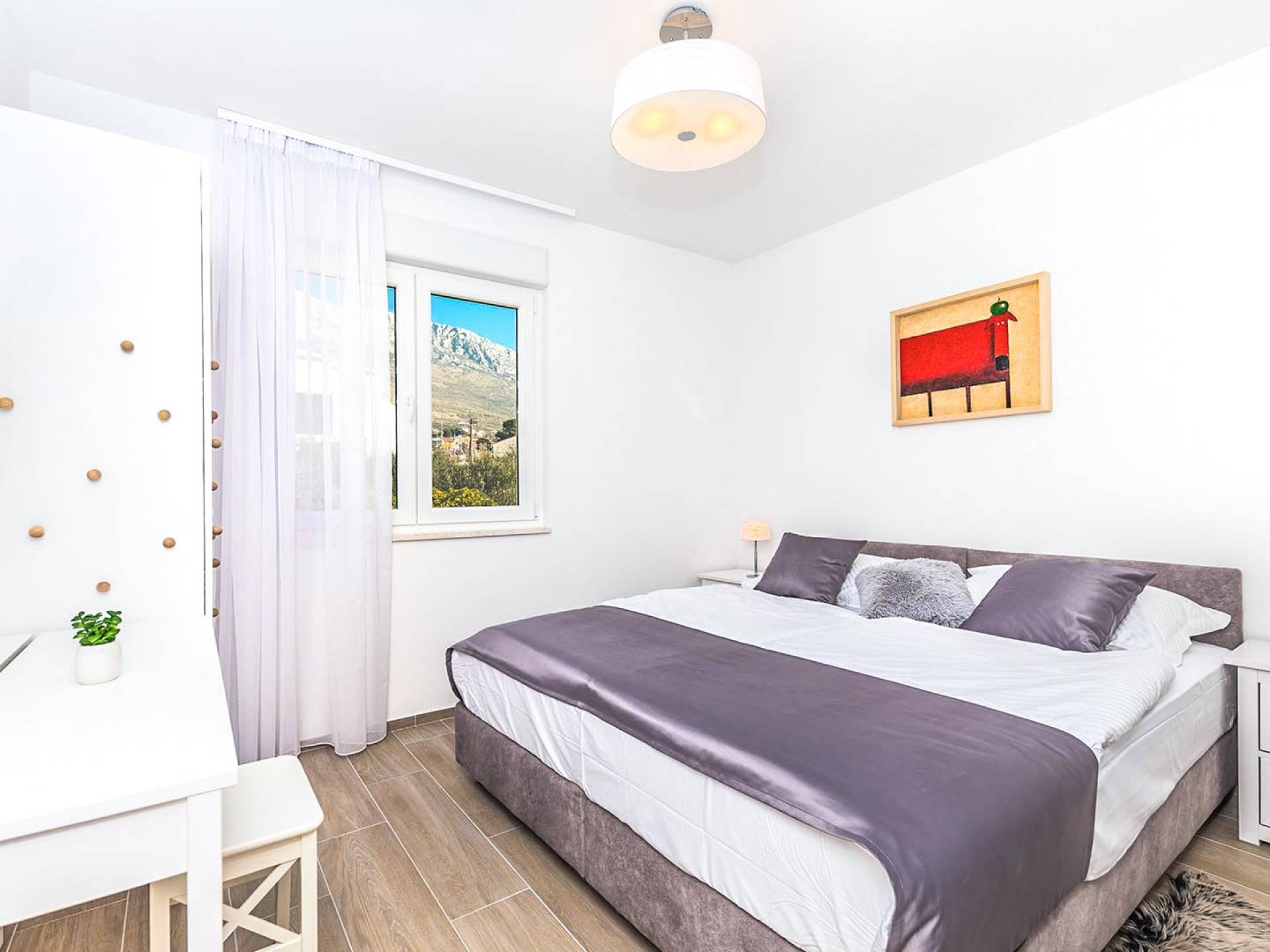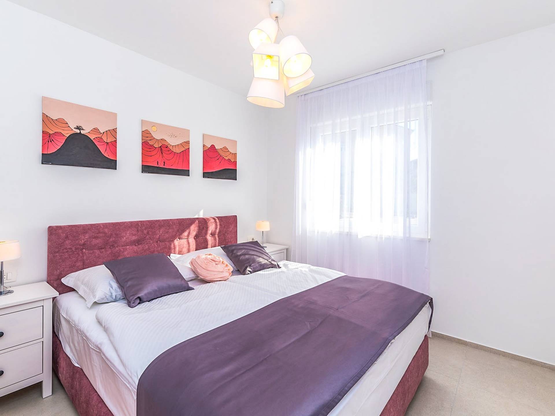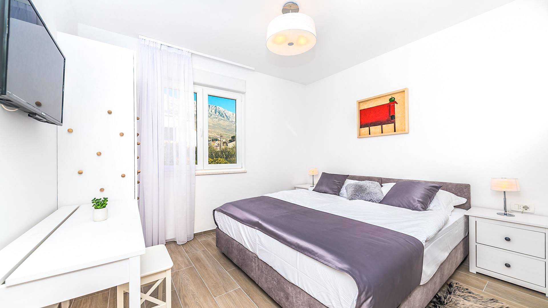 Il residence si trova a soli 900 m dalla spiaggia più vicina ea pochi passi dal negozio di alimentari più vicino (180 m), ristoranti (650 m) e caffè (800 m), mentre il porto turistico Kaštela è a soli 950 m di distanza . L'alloggio ha un facile accesso alla strada costiera principale e all'autostrada, offrendo molte possibilità di escursioni nella regione costiera e nell'entroterra dalmata.