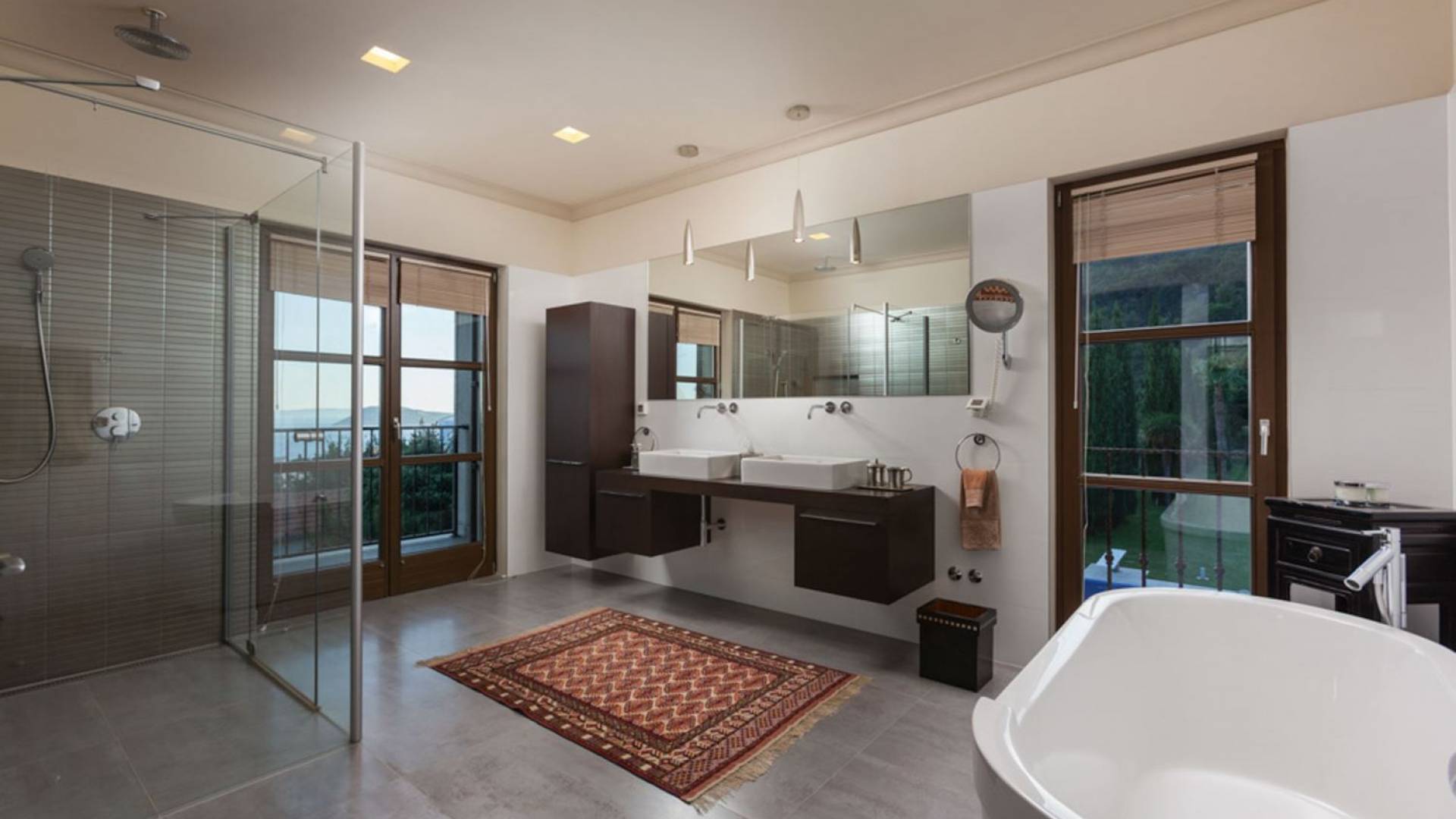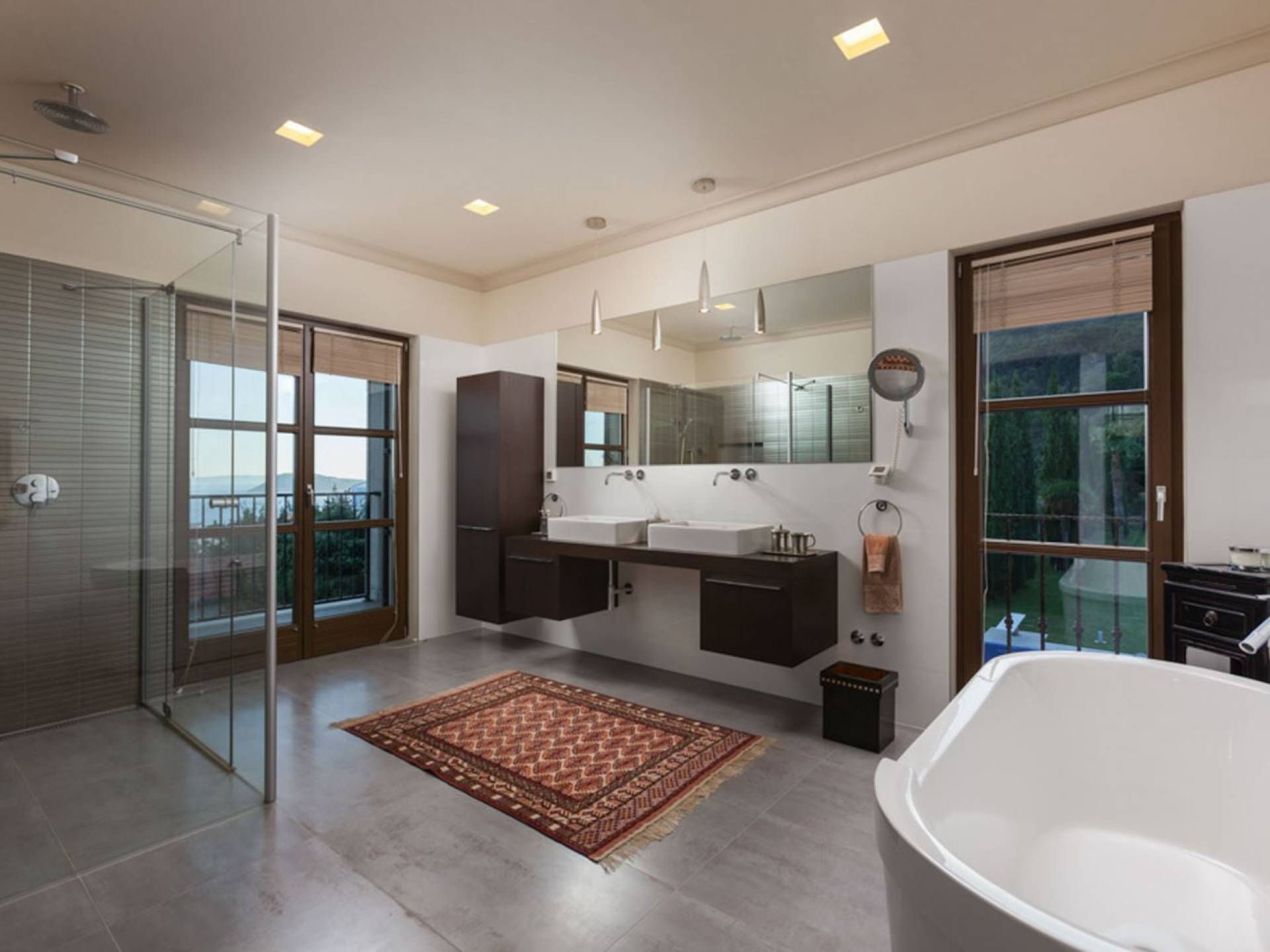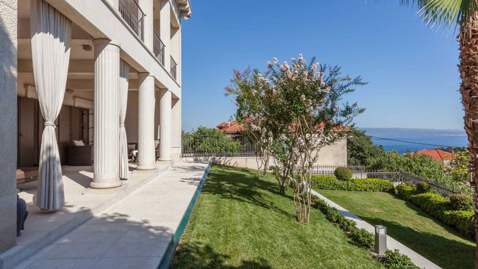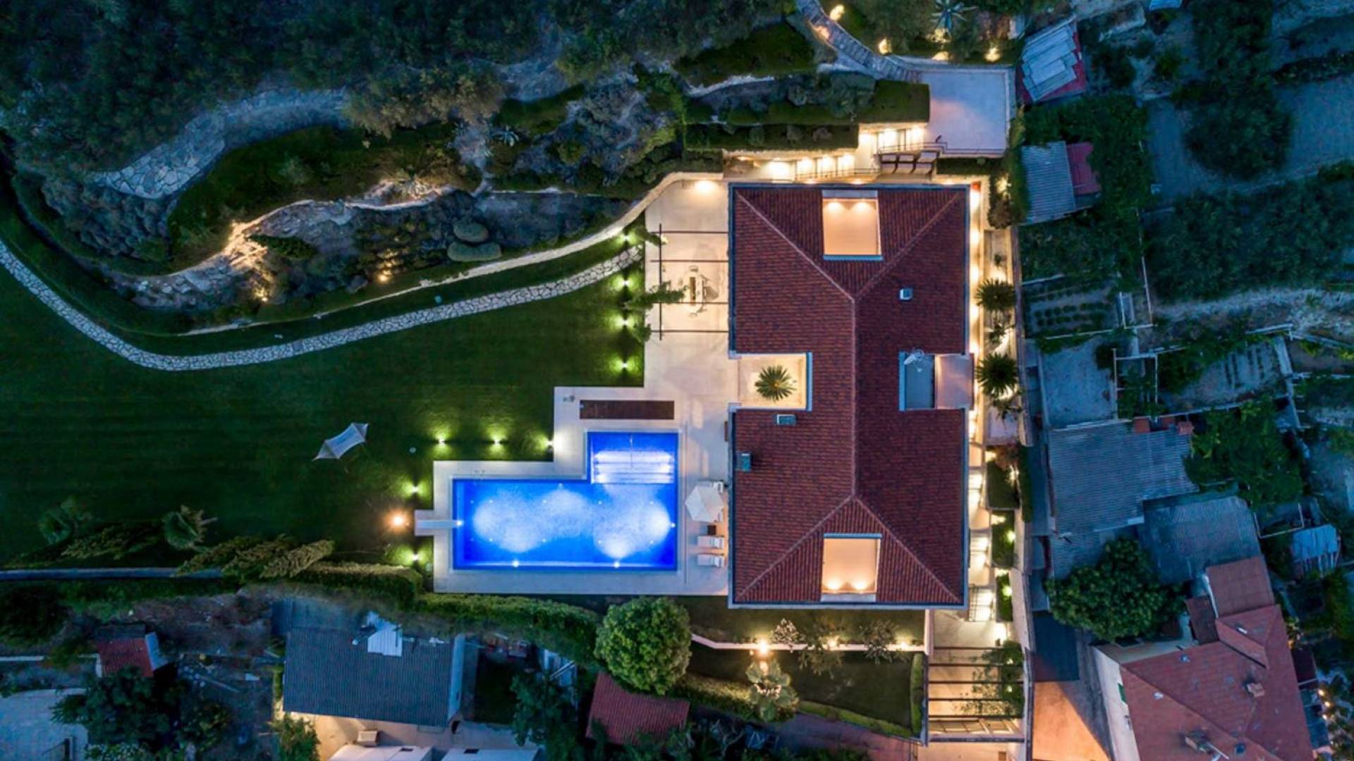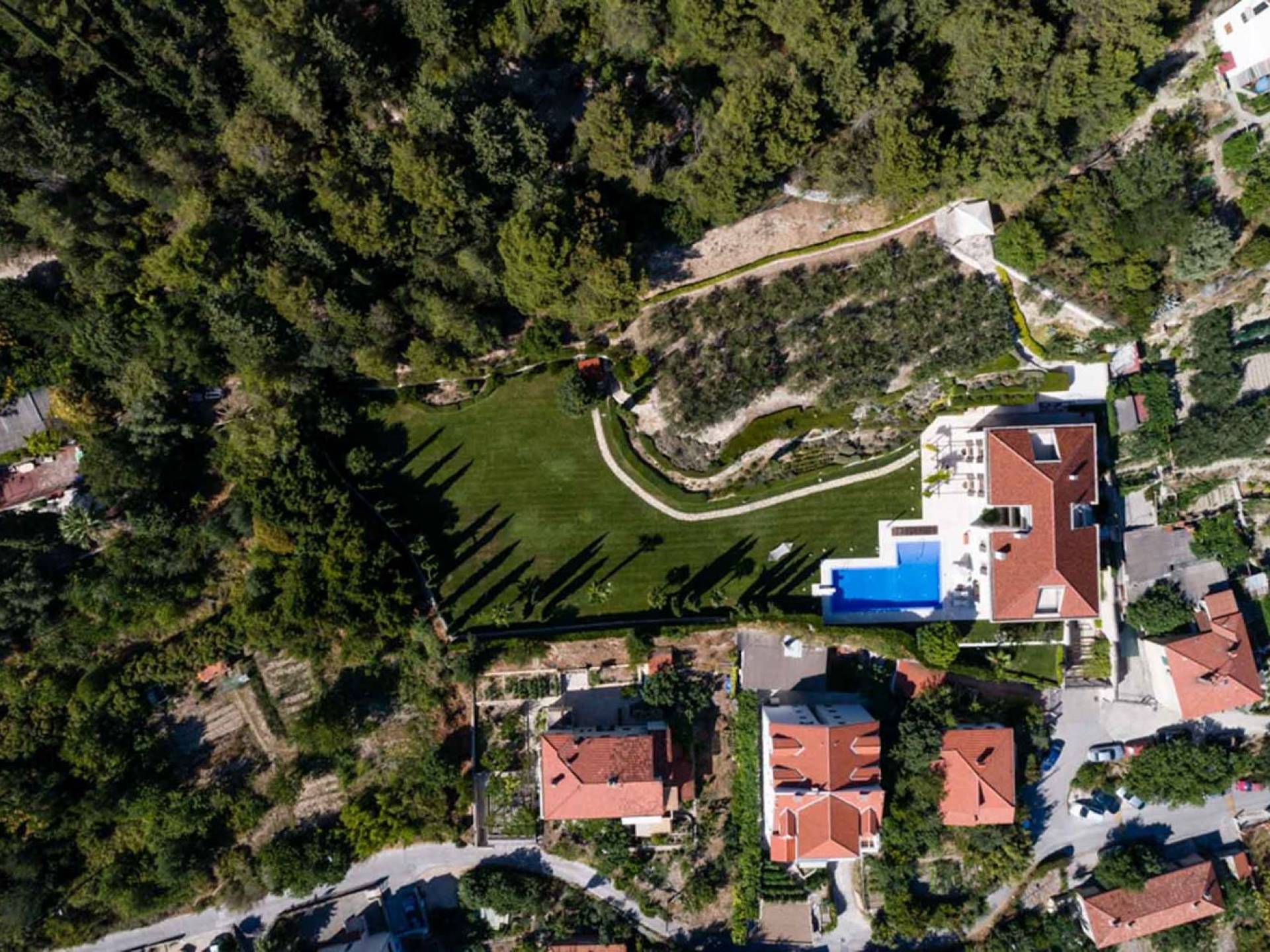La villa di lusso dispone di 4 camere da letto, 5 bagni e una toilette. La struttura a tre piani vanta ampie zone giorno, con molto spazio per socializzare in gruppo, trovando anche momenti privati per se stessi. Al piano terra si trovano due ampie zone giorno, ognuna elegante e confortevole. Una grande biblioteca sembra essere stata sollevata da un set cinematografico. Non potrai resistere a un'opportunità fotografica dietro la maestosa scrivania antica. Su questo piano si trovano anche una zona pranzo e una cucina completamente attrezzata con lavastoviglie, forno a microonde, macchina per il caffè e tutto ciò di cui potresti aver bisogno. Ingresso sud su una bella veranda aperta che si affaccia su una parte sud della città con vista parziale sul mare. Da lì si accede ai due piani superiori, tramite una scala.
