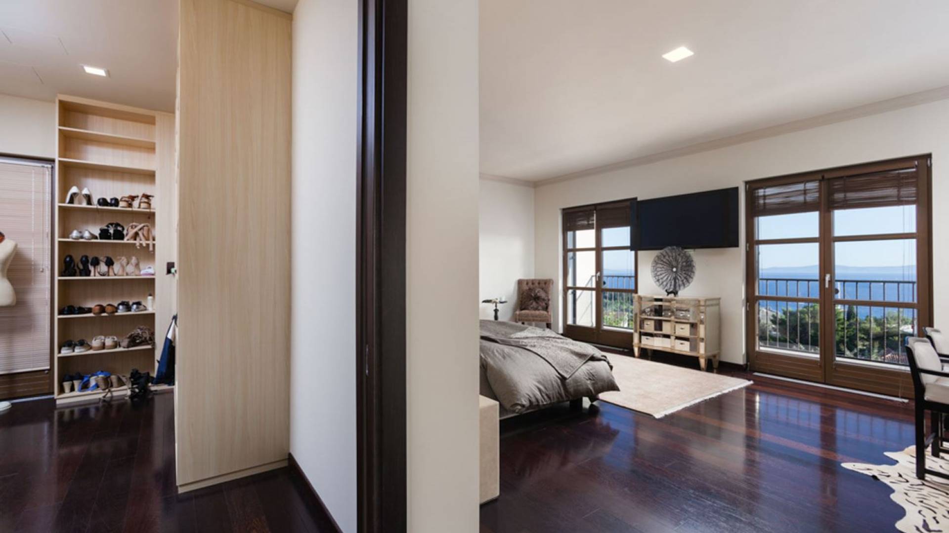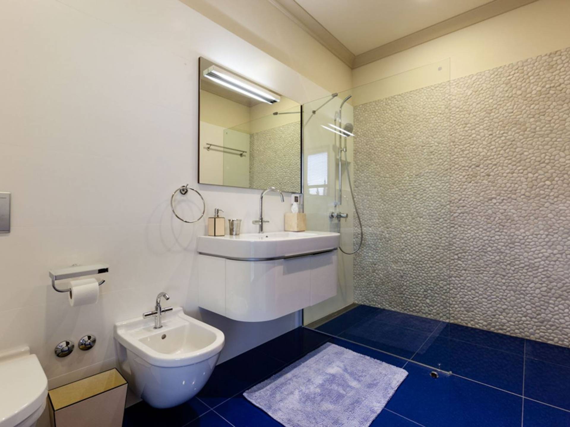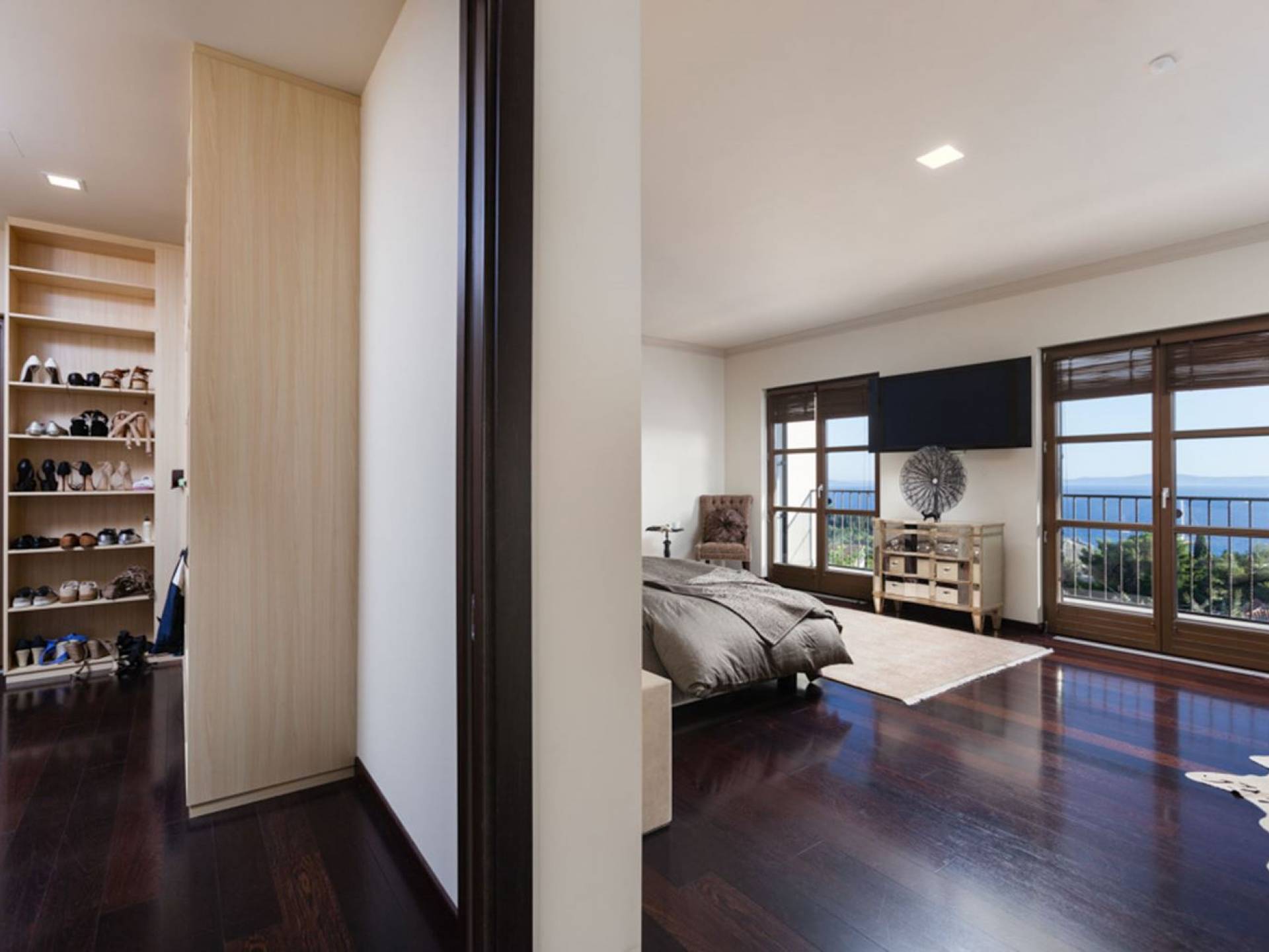 Mentre sali al primo piano, c'è un ampio ingresso che ti conduce alla camera da letto principale con un ampio balcone, bagno privato e cabina armadio. Ci sono altre due camere matrimoniali su questo piano, entrambe con vista mozzafiato sulla città e sul mare o sul giardino/piscina. Sia con bagno privato che con riscaldamento a pavimento. A questo livello è presente anche una lavanderia. All'ultimo piano si trova una spaziosa suite che copre l'intero piano ed è composta da un letto matrimoniale, zona giorno con divano letto, terrazze con vista mare e parco e bagno. Se ti piace mantenerti in forma e fare un po' di esercizio, nel seminterrato è presente un'area fitness con bagno e ripostiglio.