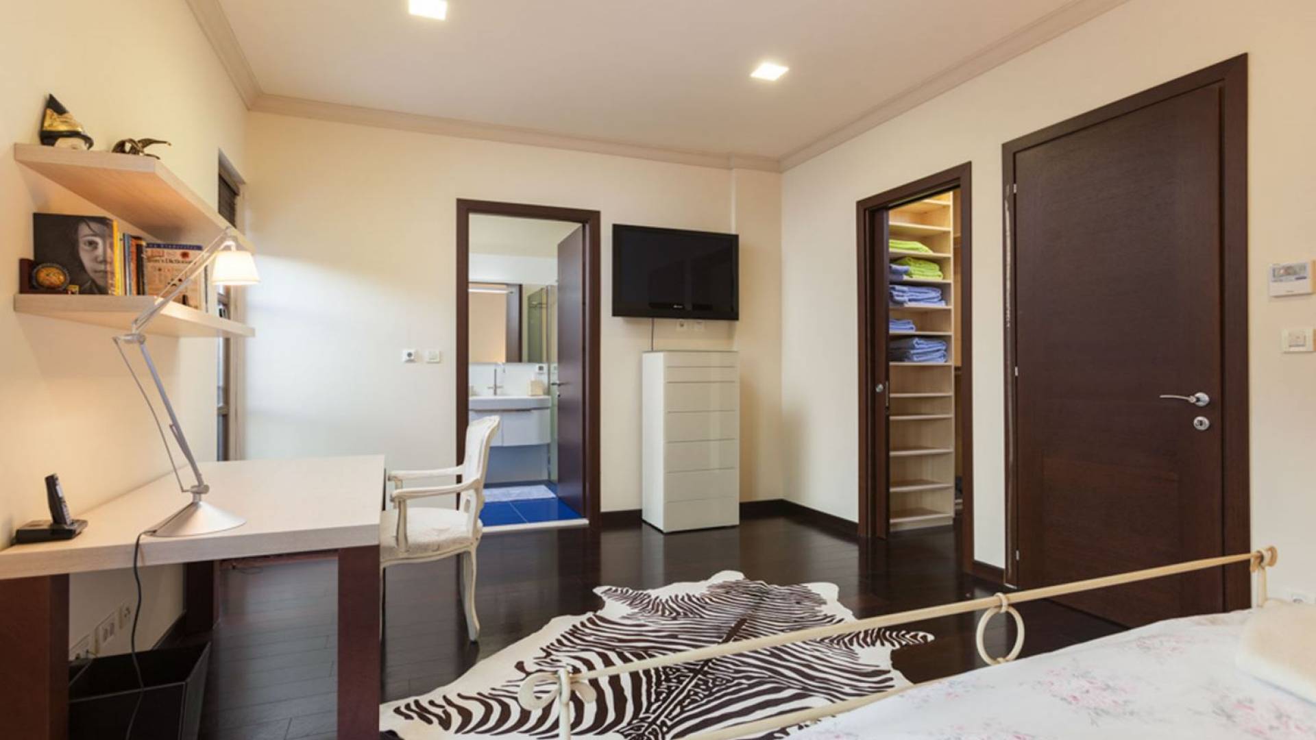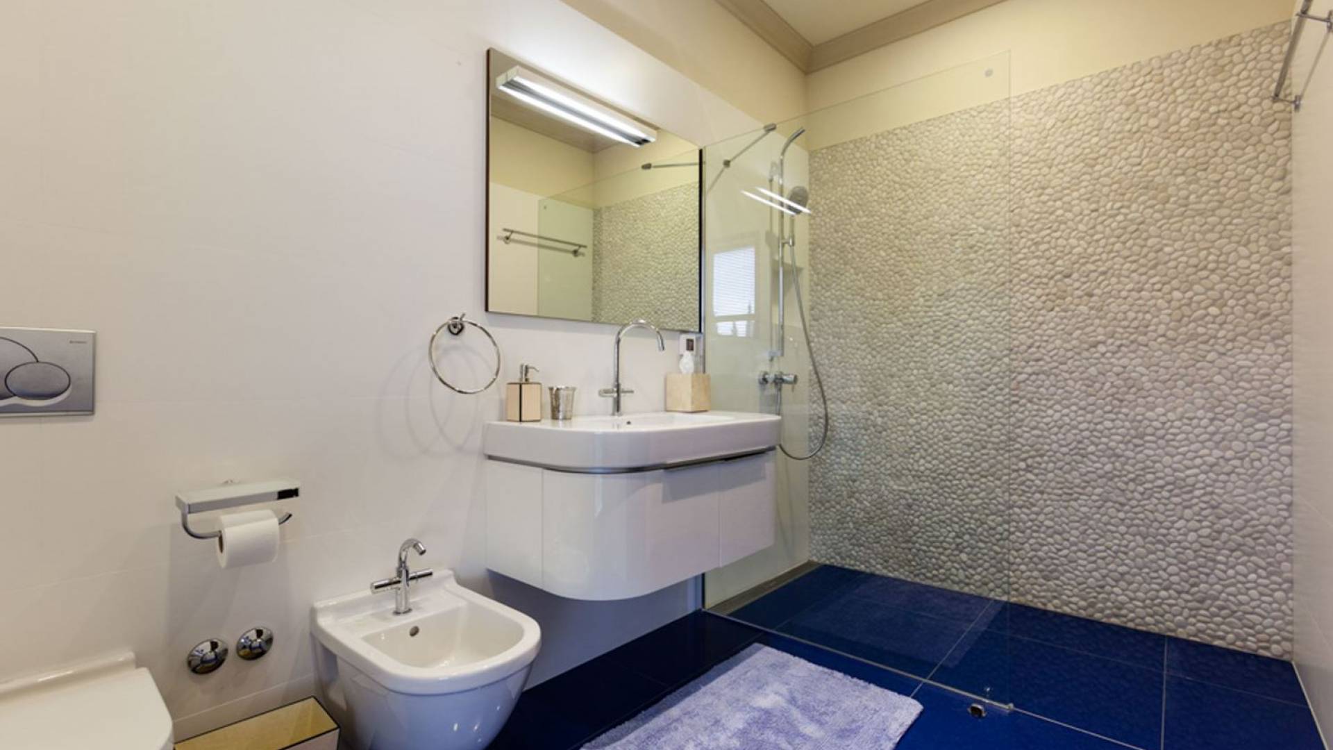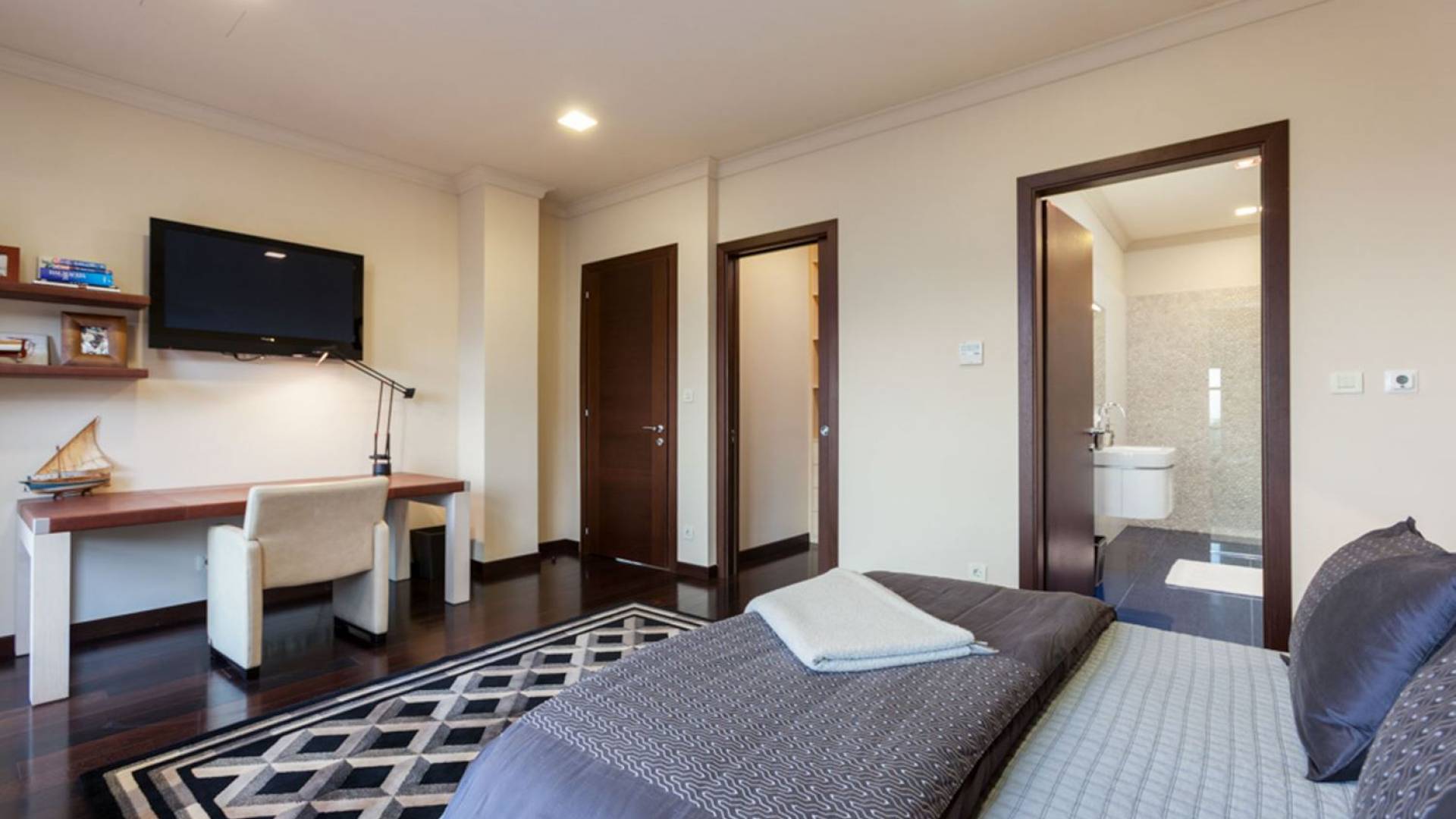 Mentre sali al primo piano, c'è un ampio ingresso che ti conduce alla camera da letto principale con un ampio balcone, bagno privato e cabina armadio. Ci sono altre due camere matrimoniali su questo piano, entrambe con vista mozzafiato sulla città e sul mare o sul giardino/piscina. Sia con bagno privato che con riscaldamento a pavimento. A questo livello è presente anche una lavanderia. All'ultimo piano si trova una spaziosa suite che copre l'intero piano ed è composta da un letto matrimoniale, zona giorno con divano letto, terrazze con vista mare e parco e bagno. Se ti piace mantenerti in forma e fare un po' di esercizio, nel seminterrato è presente un'area fitness con bagno e ripostiglio.