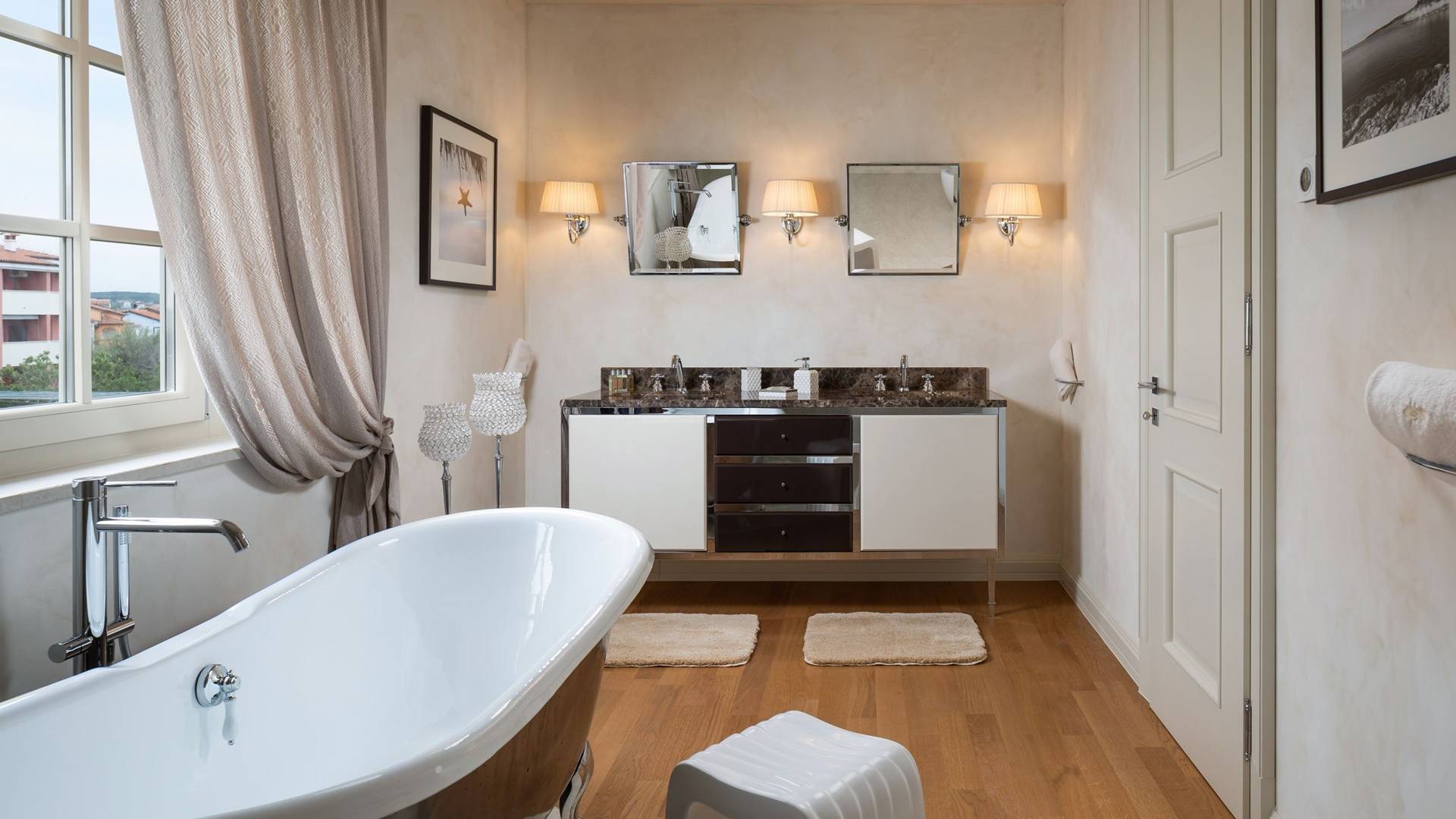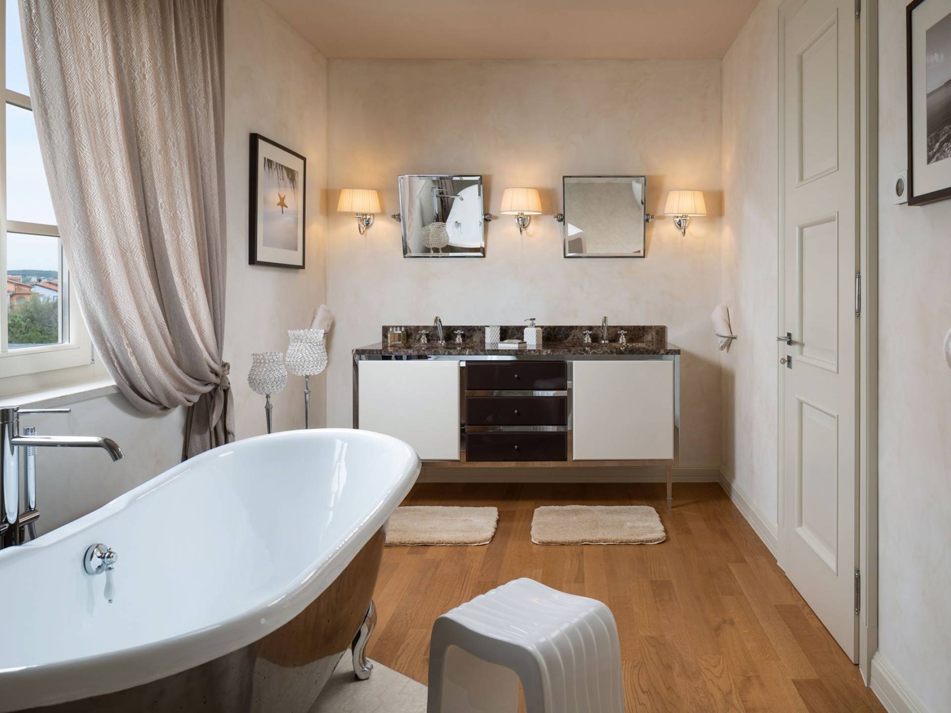 La spiaggia più vicina "Santa Marina" dista solo 800 m, mentre nel raggio di 100 m si trovano numerosi ristoranti e negozi. Parenzo e Novigrad sono a soli 5 km di distanza. Durante la vostra vacanza assicuratevi di visitare l'Anfiteatro di Pola (L'Arena) e la bellissima città di Rovigno con la chiesa monumentale di Sant'Eufemia, a soli 45 minuti di auto. Da non perdere l'autentica cucina istriana con una varietà di piatti a base di tartufo, porcini, pasta fatta in casa (fuži e pljukanci) e specialità di pesce.
