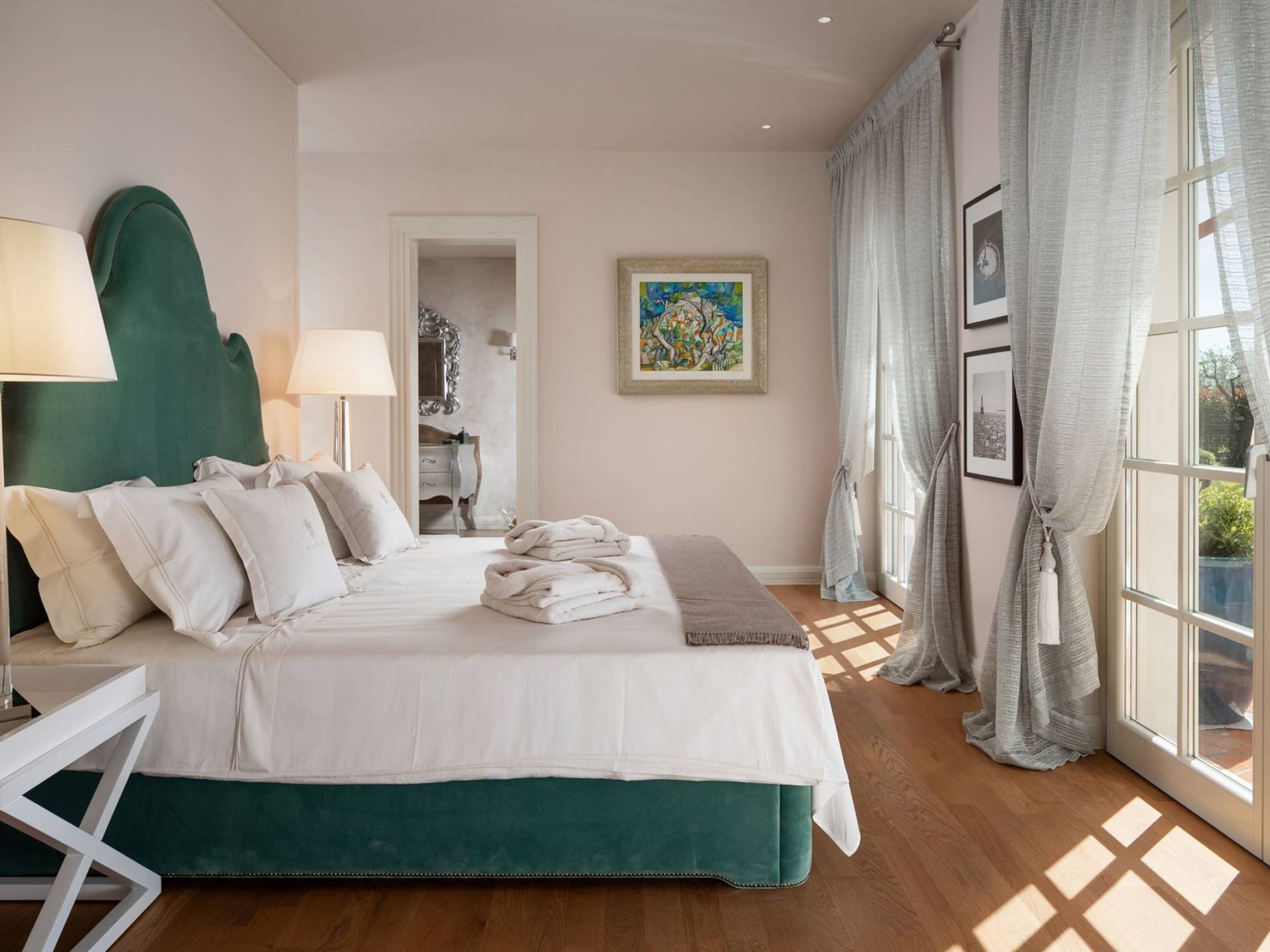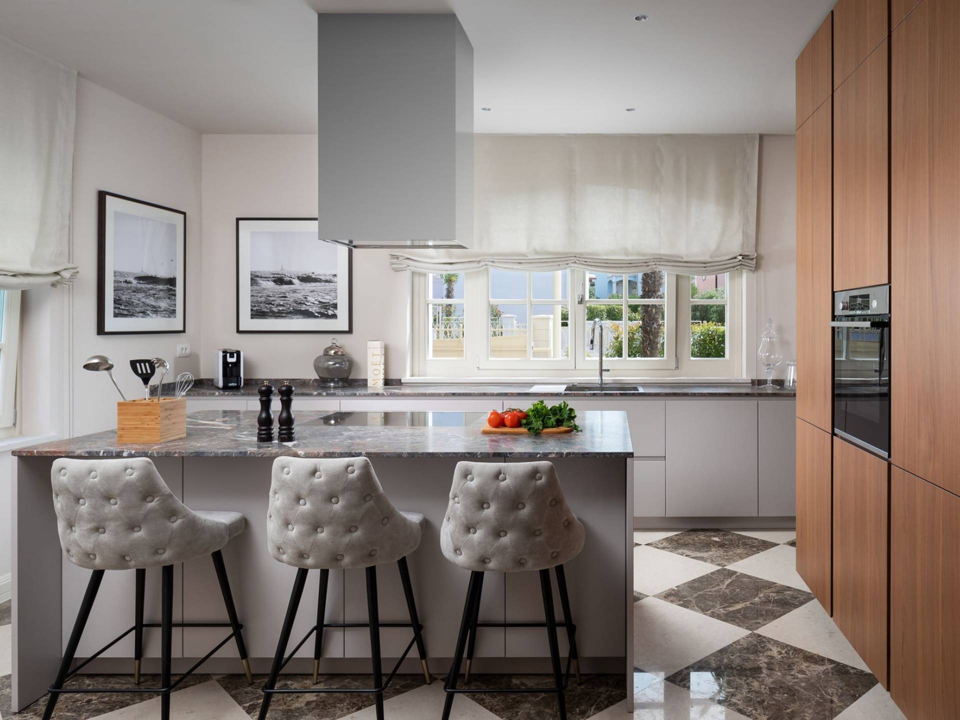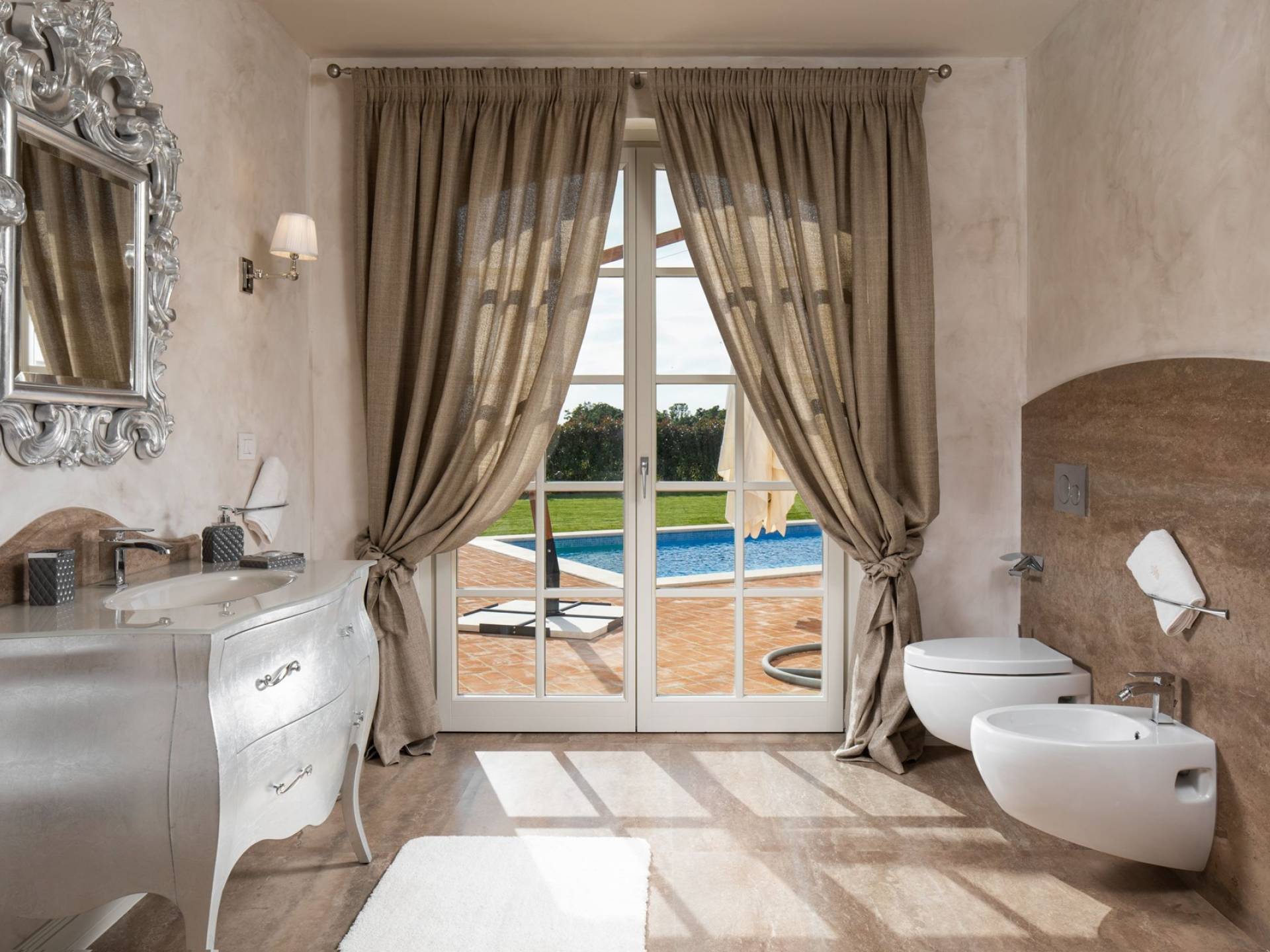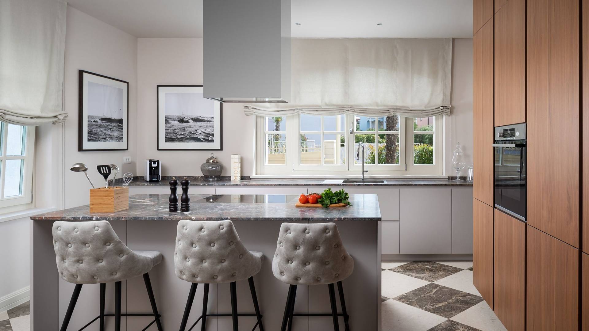 dispone di 4 camere riccamente arredate, dotate di letti king-size e bagno privato, 3 delle quali sono dotate di doccia mentre una dispone di una graziosa vasca da bagno per il relax quotidiano. Il lussuoso piano terra della villa dispone di una cucina completamente attrezzata con zona pranzo, ampio soggiorno, una camera da letto con bagno e servizi igienici separati, mentre le restanti 3 camere da letto con bagno si trovano al piano superiore.