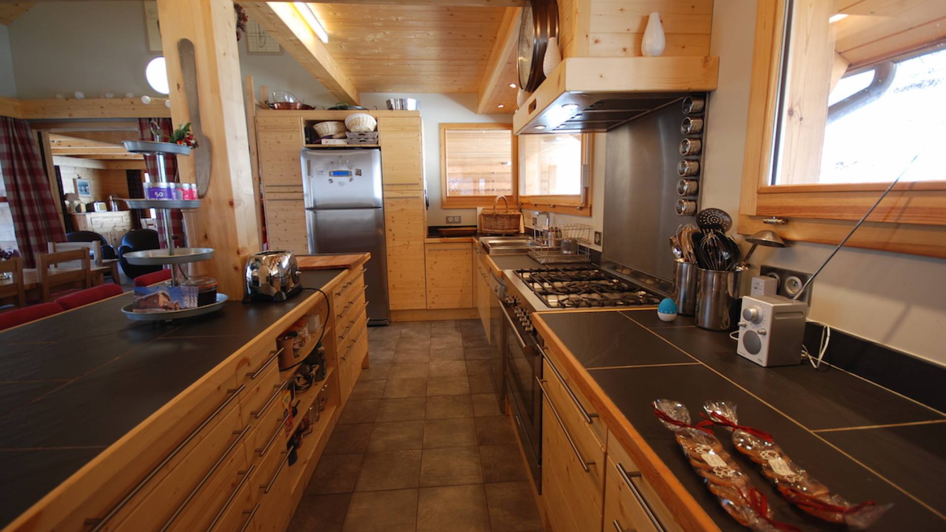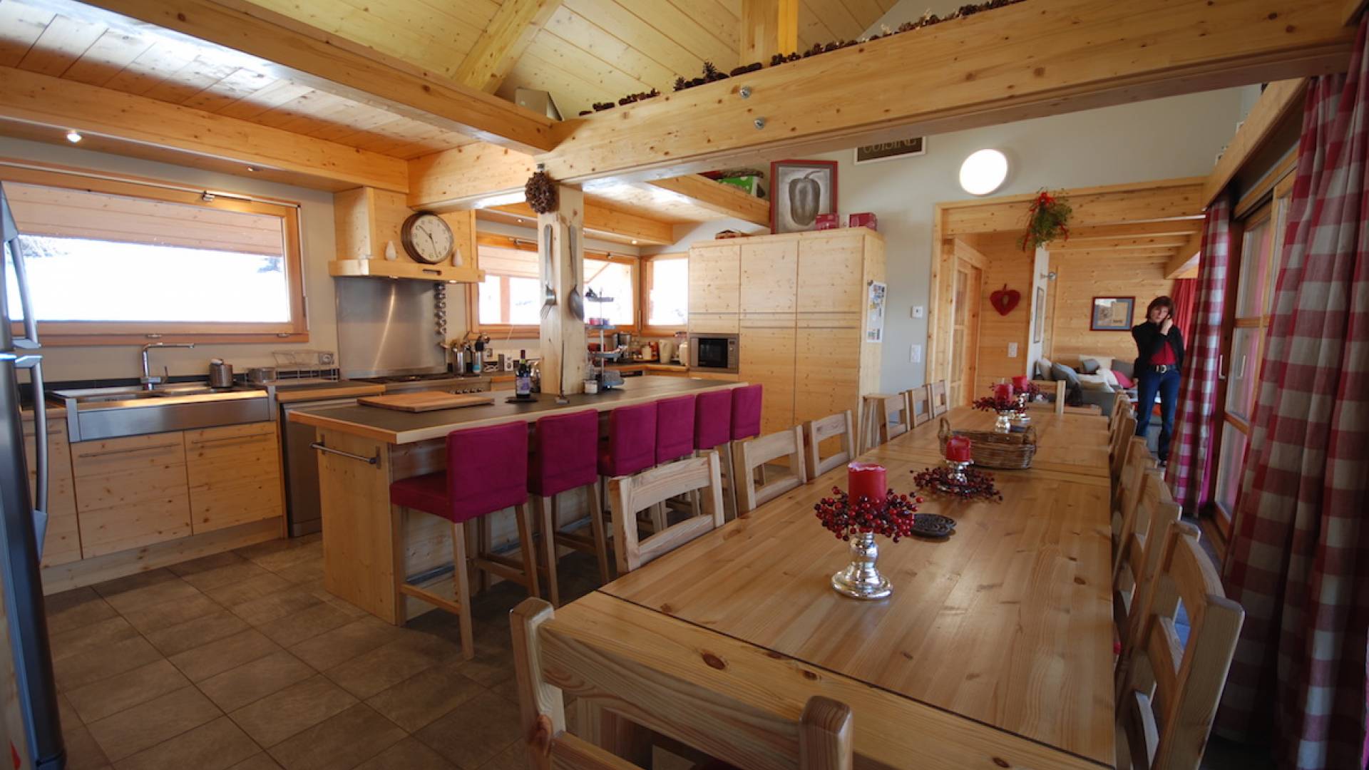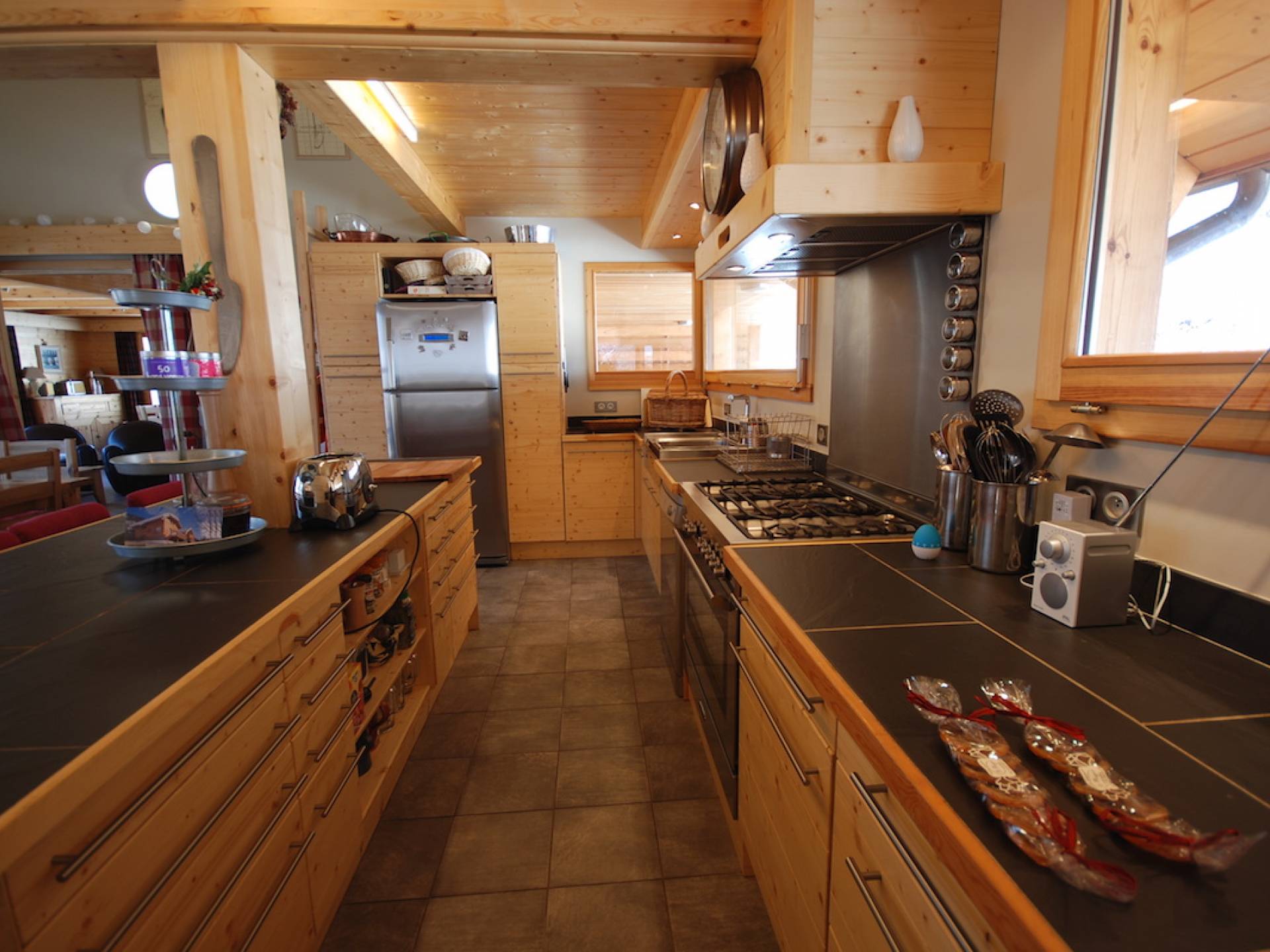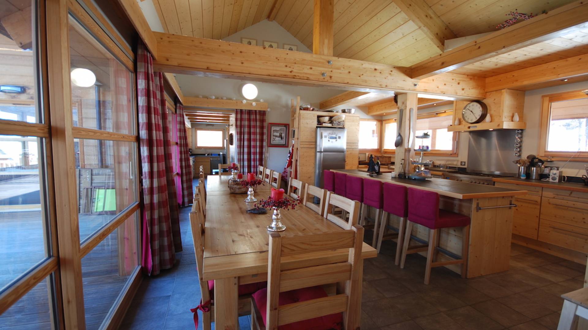 Chalet Bermuda Serre Chevalier è composto da due cucine completamente attrezzate (elettrodomestici moderni, posti a sedere per 16 persone, macchina Nespresso...), due soggiorni (TV, lettore DVD), 8 camere da letto (6 matrimoniali o doppie e 2 camere triple per un totale di 18 posti letto), 6 bagni (doccia o vasca) e una sauna.