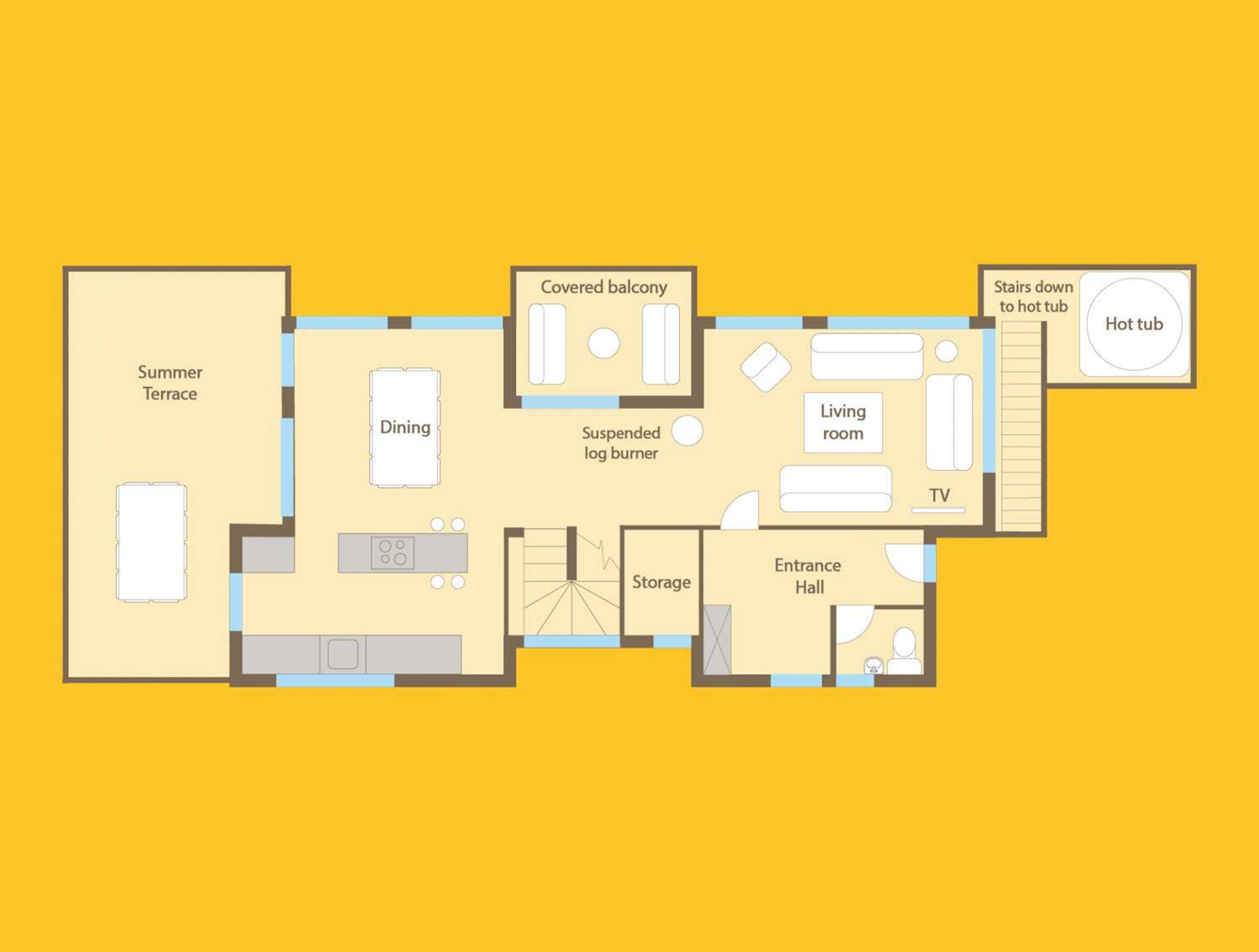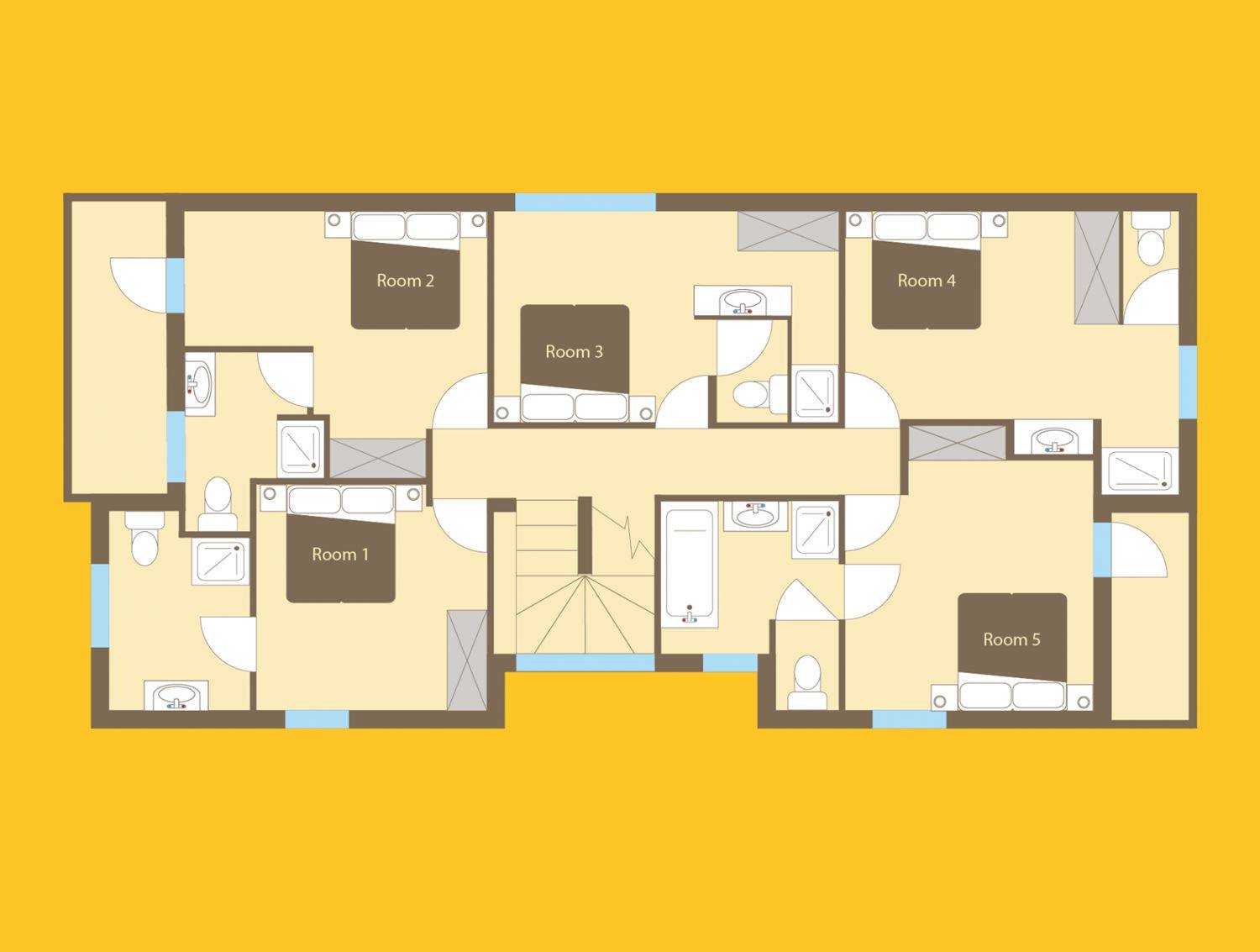 Ogni camera è splendidamente decorata e i letti possono essere trasformati in matrimoniali super king o doppie con letti singoli. Le camere 2 e 5 dispongono di balconi da cui si può ammirare la vista serale con un bicchiere di vino. Una delle aree preferite dello chalet è il balcone chill out coperto a cui si accede dal salone. Con vista sulla foresta, quest'area esterna offre uno spazio aggiuntivo da godere con comodi posti a sedere e lampade riscaldanti per tenerti al caldo nelle serate innevate sotto le stelle.