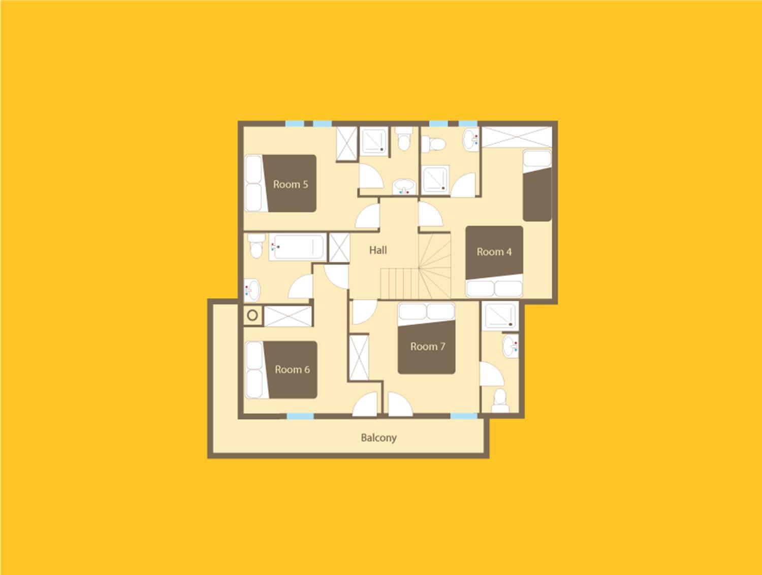 Himalaya Lodge offre una sala da pranzo privata separata dove puoi gustare cibo delizioso e vario dai padroni di casa di Jack & Jill mentre parli dell'avventura della tua giornata. Anche al primo piano c'è un piccolo accogliente con comodi posti a sedere e una TV; un'ottima seconda area giochi per i bambini o forse un rifugio in cui gli adulti possono fuggire, per guardare una grande partita! Le 4 camere finali si trovano all'ultimo piano, tutte spaziose, arredate con gusto e con bagno privato. L'importantissima vasca idromassaggio si trova all'esterno al piano terra, l'ultimo relax dopo lo sci, è un posto fantastico per un drink di fine giornata sotto le stelle.