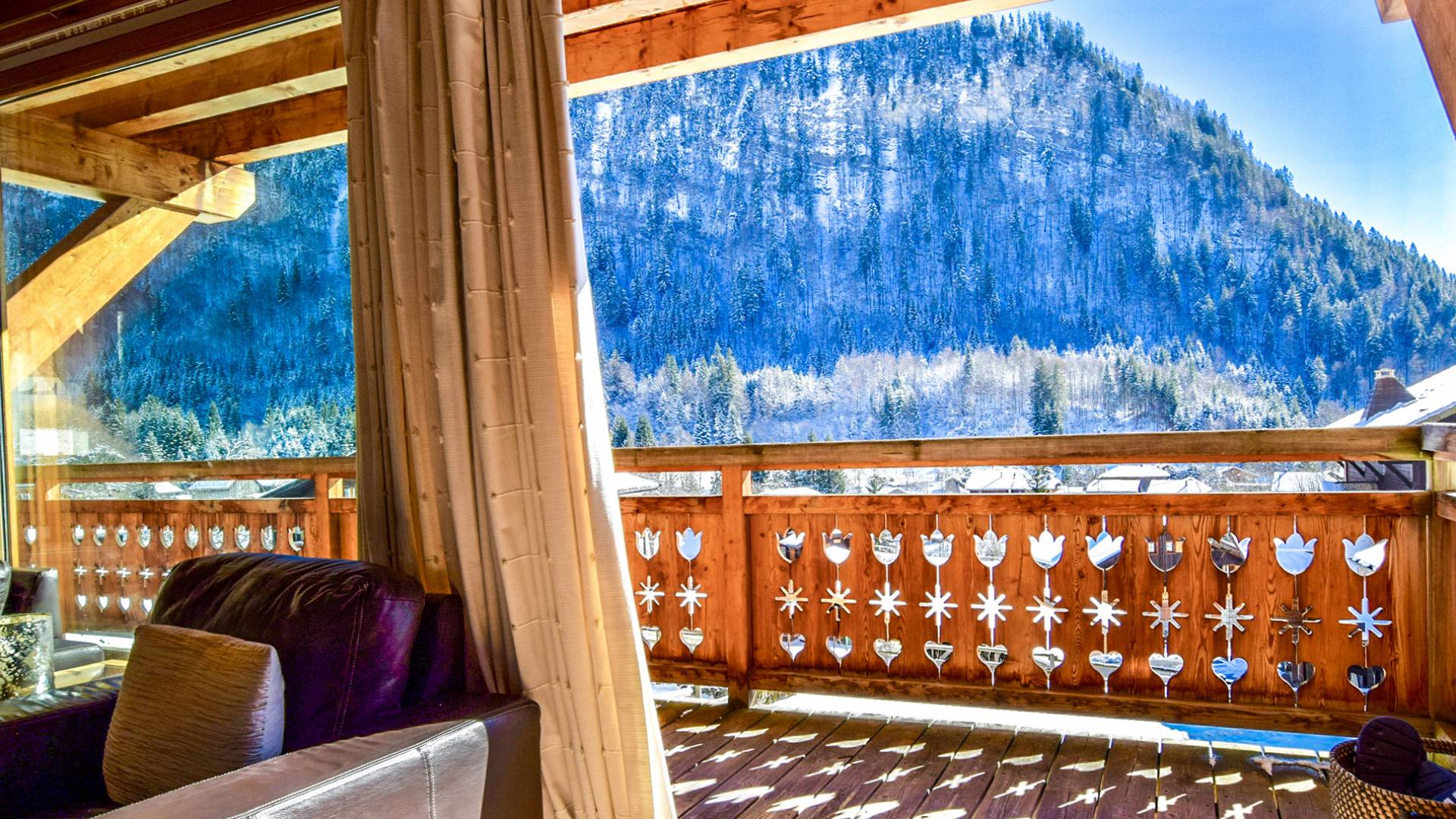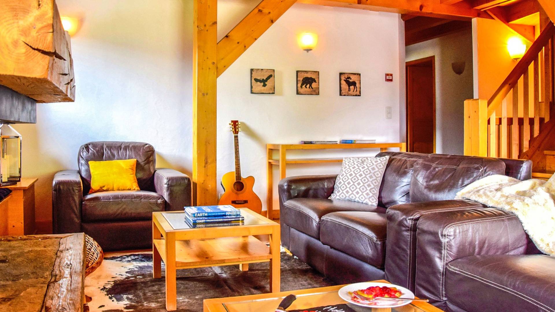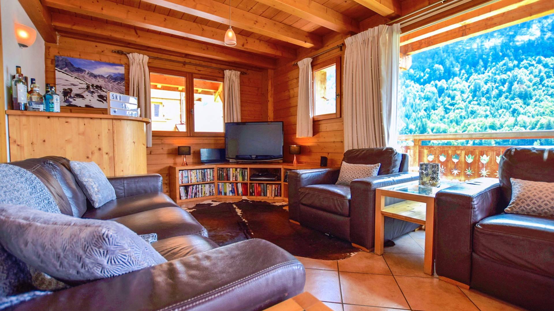 L'ampio salone si trova al primo piano con grandi e comodi divani che circondano un caminetto scoppiettante. All'altra estremità del salone c'è il bar e la TV a grande schermo, dove puoi rannicchiarti e goderti un DVD la sera. Le finestre dal pavimento al soffitto rendono lo spazio davvero luminoso e arioso e offrono viste fantastiche su Morzine. L'ampio balcone è accessibile dal soggiorno e poiché è esposto a sud, offre la perfetta trappola per il sole durante le soleggiate giornate invernali.