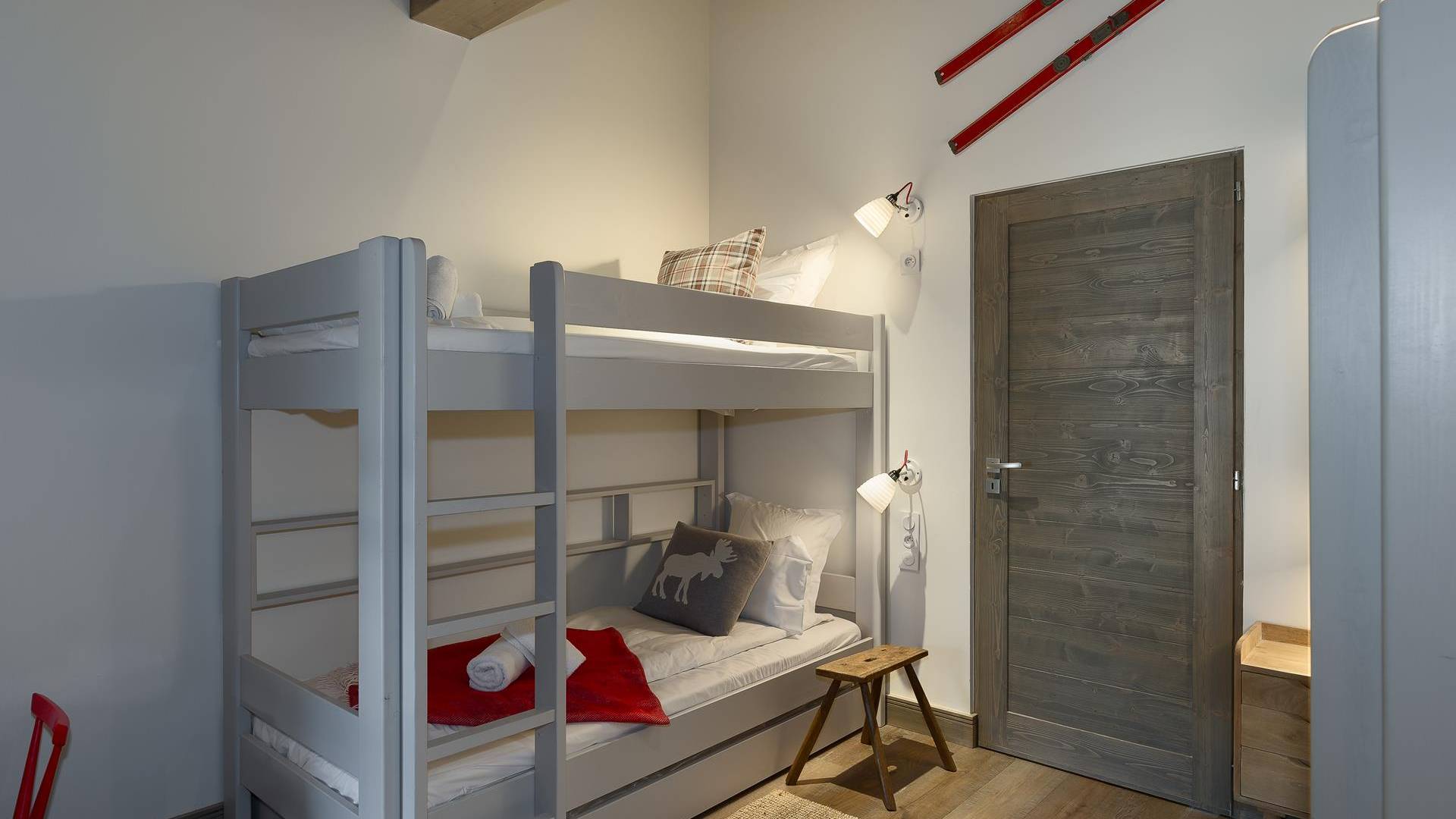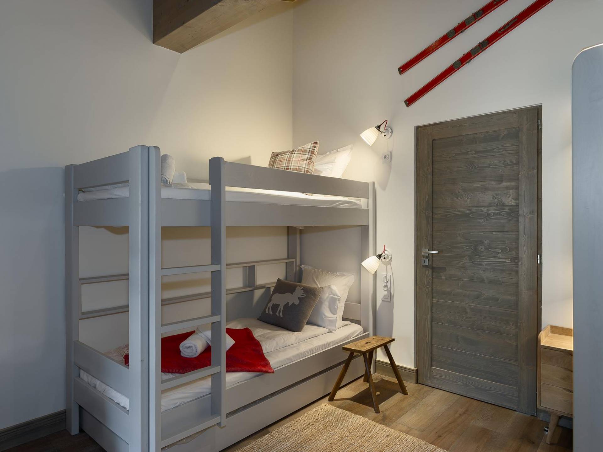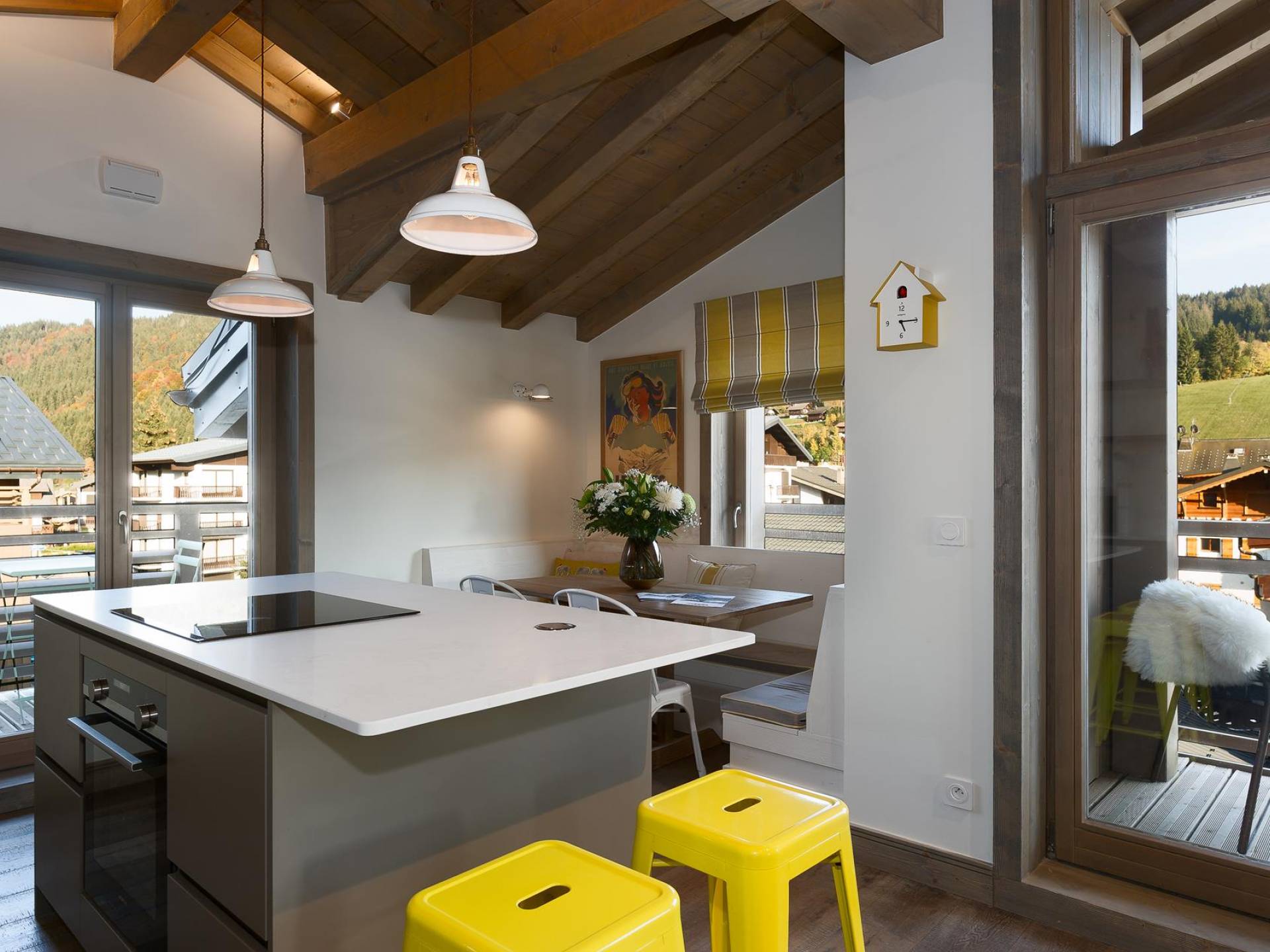 L'Attico A301, situato al 3° piano del Residence Annapurna Les Gets, con una superficie di 147 mq, è perfetto per accogliere 10 persone. Questo appartamento dispone di due camere da letto con letto matrimoniale, una camera con due letti singoli (possibilità letto matrimoniale su richiesta), una camera da letto cabinata tipo dormitorio con due letti a castello e quattro bagni. Il luminoso soggiorno con TV e stufa a legna ha anche una zona pranzo con ampie finestre per godersi il panorama, una cucina completamente attrezzata e un balcone. Durante le tue vacanze potrai usufruire di un posto auto nel parcheggio privato, di un deposito sci e della connessione Wi-Fi.