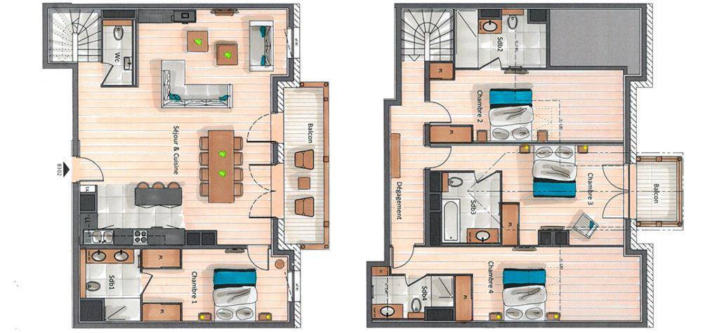 L'Attico B302, situato al 3° piano del Residence Annapurna Les Gets, con una superficie di 158 mq, è perfetto per accogliere 8 persone. Questo appartamento dispone di quattro camere da letto con letto matrimoniale e quattro bagni privati. Il confortevole soggiorno con TV e caminetto ha anche una zona pranzo, una cucina a isola completamente attrezzata e un balcone. Durante le tue vacanze potrai usufruire di un posto auto nel parcheggio privato, di un deposito sci e della connessione Wi-Fi.