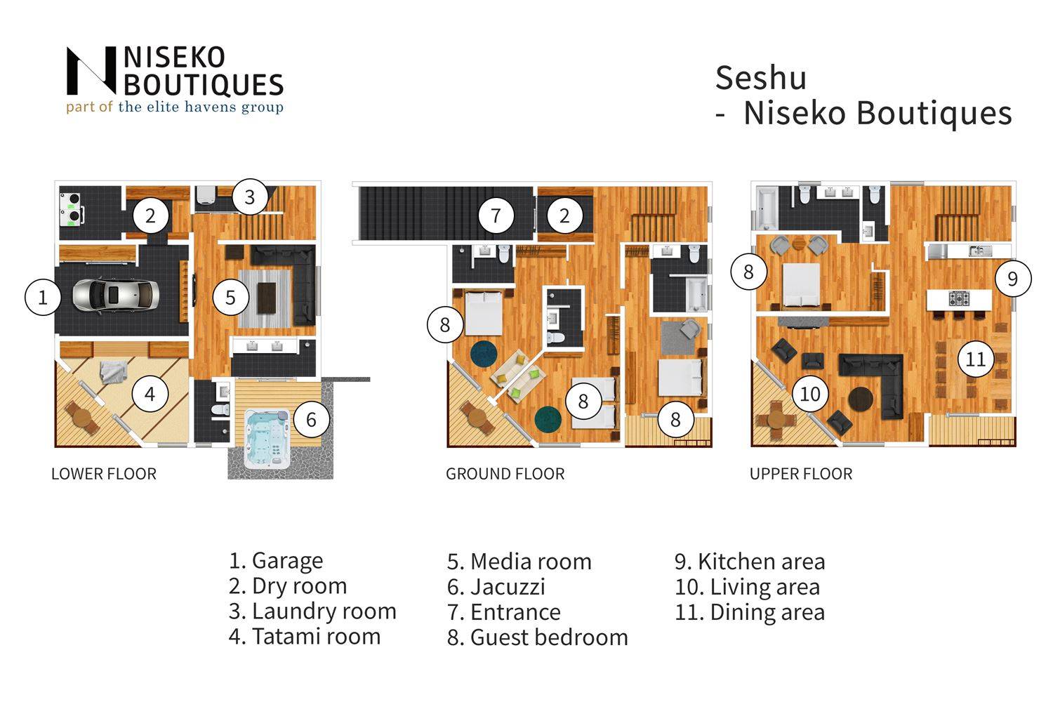 Il lussuoso Chalet Seshu Niseko è realizzato principalmente in legno e materiali naturali. Il design degli interni è semplice ed elegante con alcune notevoli opere d'arte alle pareti. Il soggiorno è ampio e confortevole con spazi relax per tutti mentre ha anche un caminetto per i momenti caldi con i propri cari. La moderna cucina completamente attrezzata è perfetta per cucinare e il tavolo da pranzo è ottimo per le riunioni di gruppo.