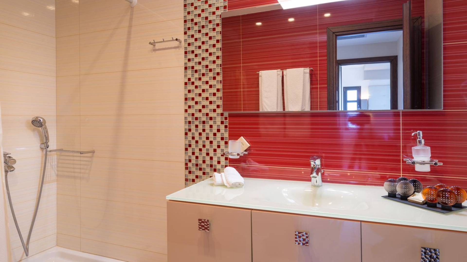 Le piscine esterne alberate, due per adulti e una per bambini, si trovano su diversi livelli proprio di fronte all'edificio principale. Nuota nelle loro acque limpide e prendi il sole sotto il sole greco. Goditi una varietà di succhi, rinfreschi e cocktail dallo Snack Bar della piscina e dimentica il tempo. Tutti gli spazi intorno alle piscine possono essere utilizzati per feste, sfilate di moda, eventi e ricevimenti nuziali. Pensa a un buon motivo per festeggiare e lascia tutto il resto a noi. Sarà una sorpresa unica! Una Suite, 55 mq, con vista sulle montagne, due camere da letto, 2 bagni, e ingresso comune con cucina specifica. Una suite con vista sulle montagne può ospitare fino a sei persone o due coppie.