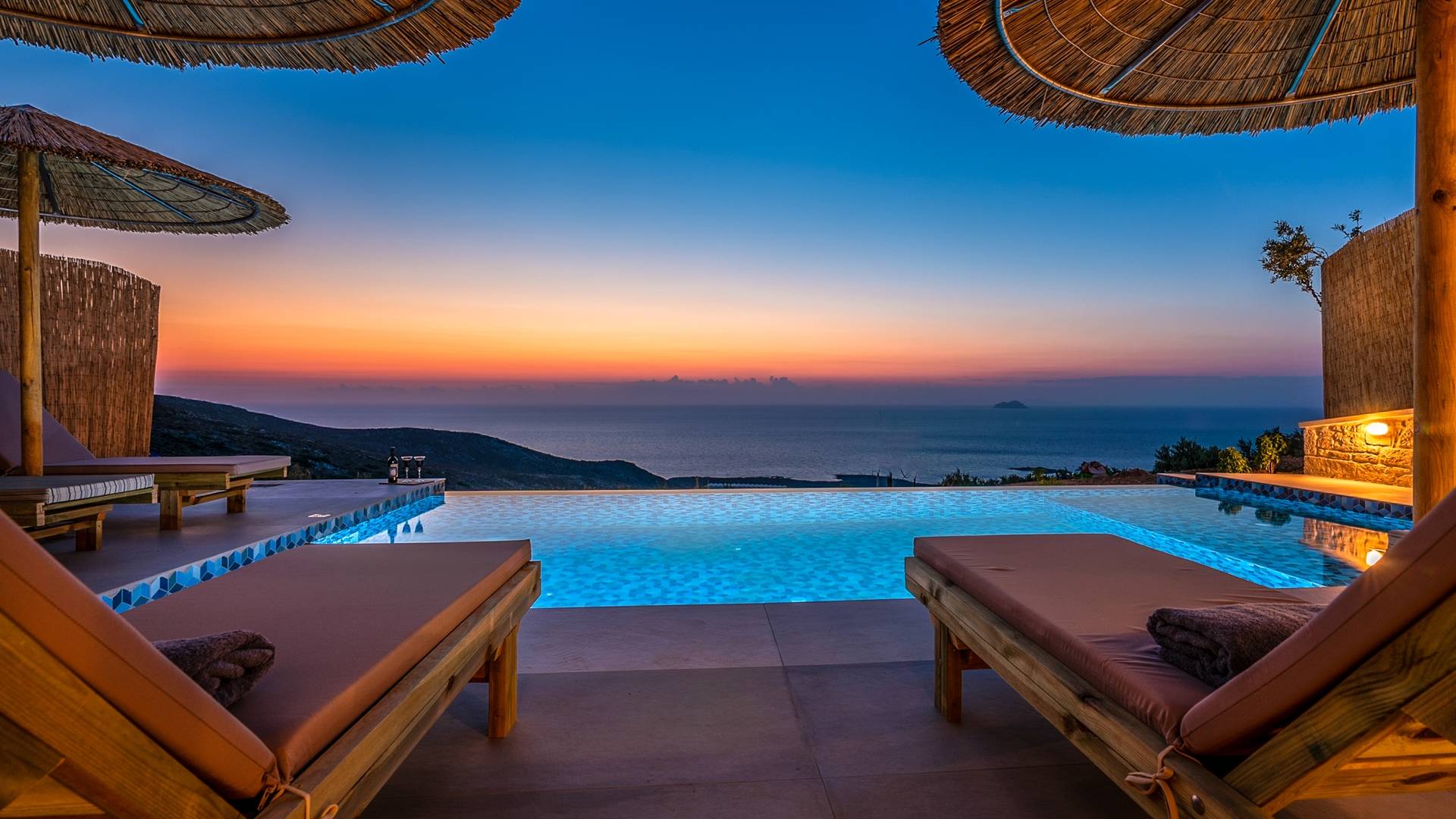 Colore blu, sole e lusso, niente può battere questa combinazione. Cos'altro c'è da chiedere per le tue vacanze? Concediti una piscina privata riscaldata nell'intimità della tua villa, sia interna che esterna. L'acqua è curativa e terapeutica e laverà…