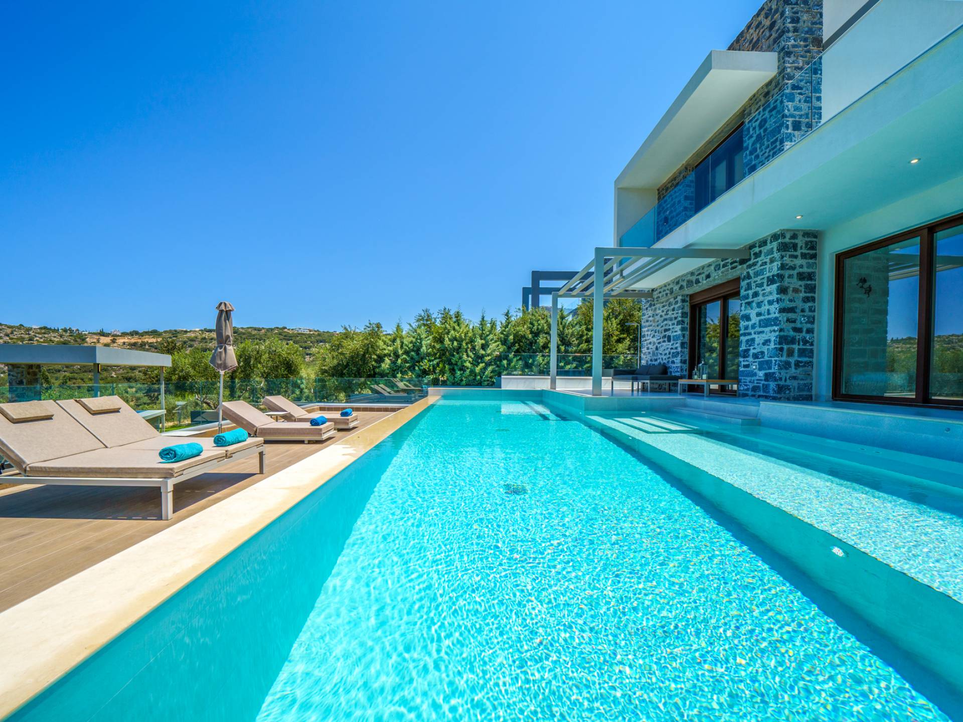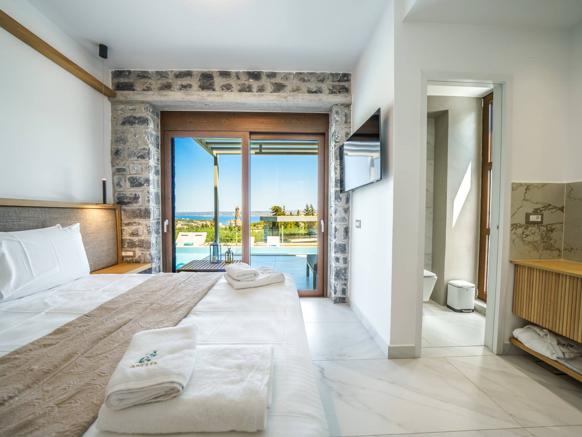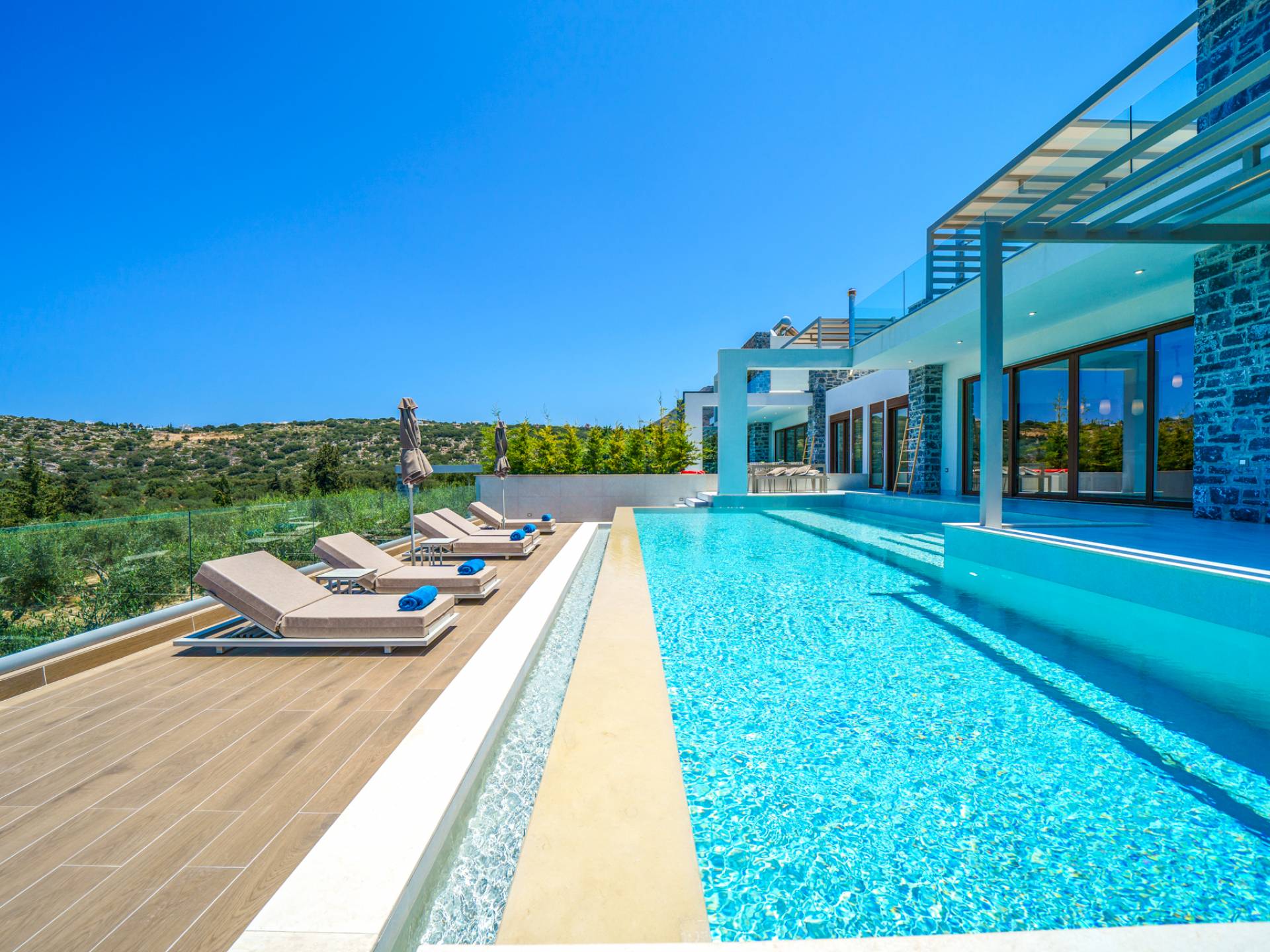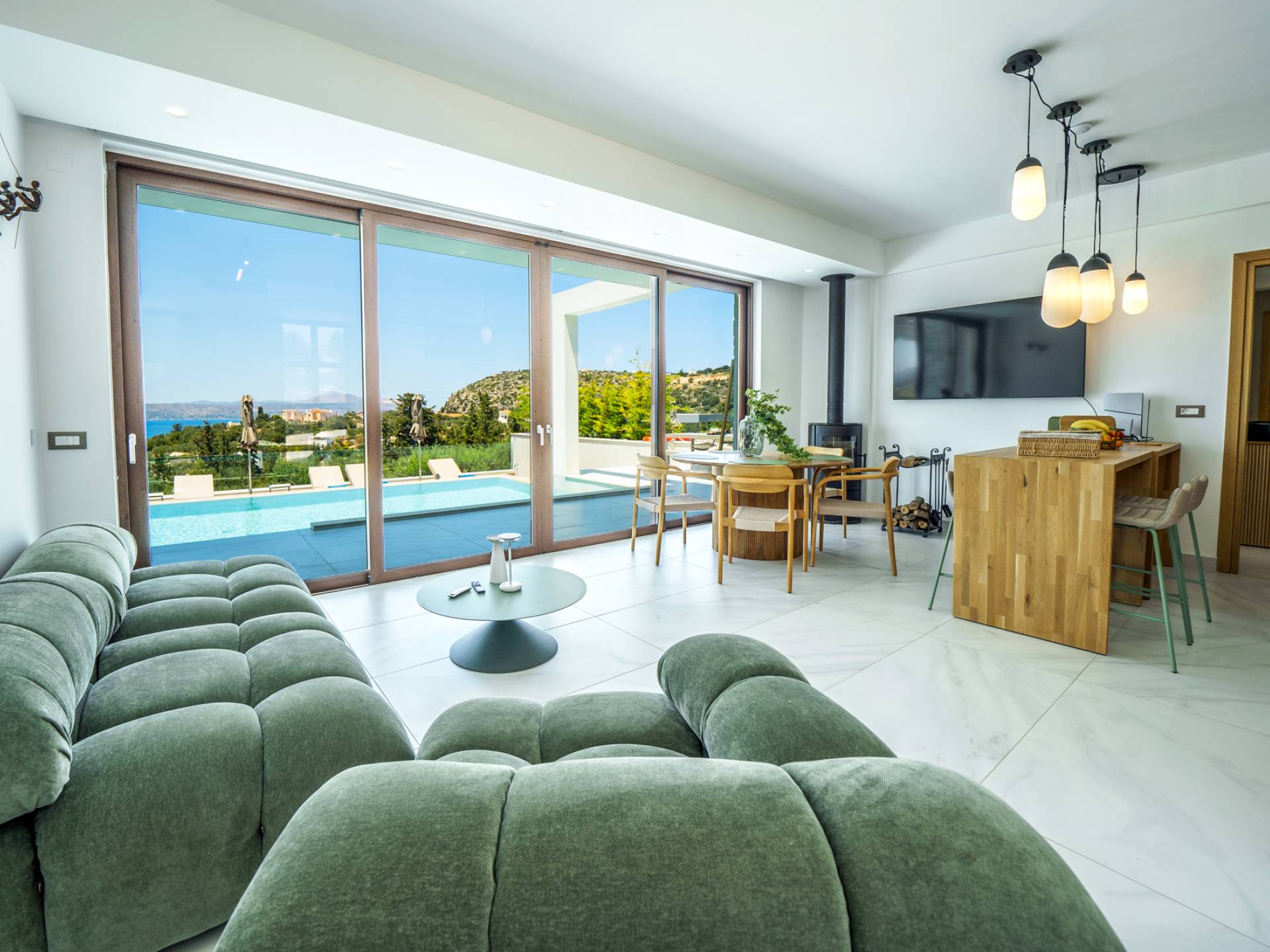 All'interno, Anelia Villa offre due cucine completamente attrezzate e due ampie zone soggiorno, che si collegano perfettamente agli spazi esterni, offrendo l'ambiente perfetto per il relax e l'intrattenimento.